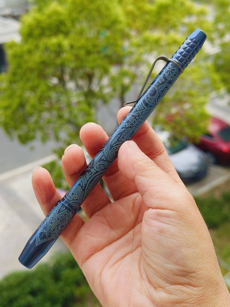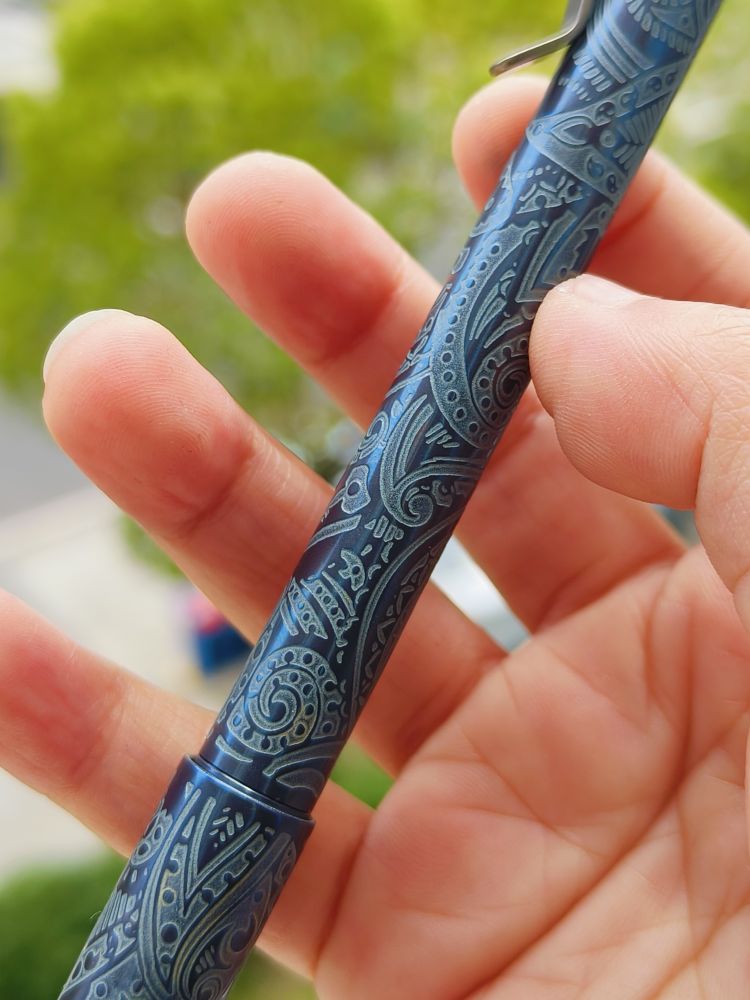 【售完】Ti2 Design 钛合金磁蚀刻阳极氧化蓝色 磁吸式 圆珠笔 原价1580 清仓价1100