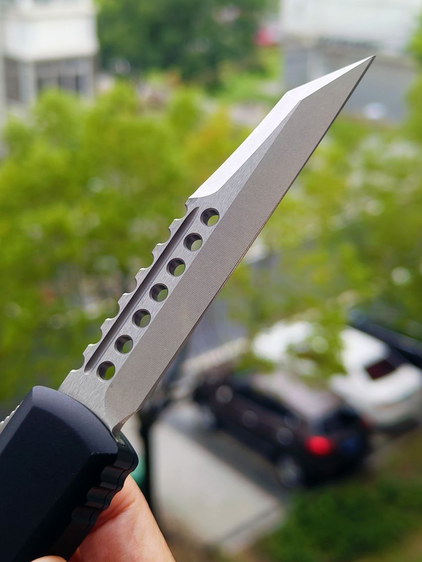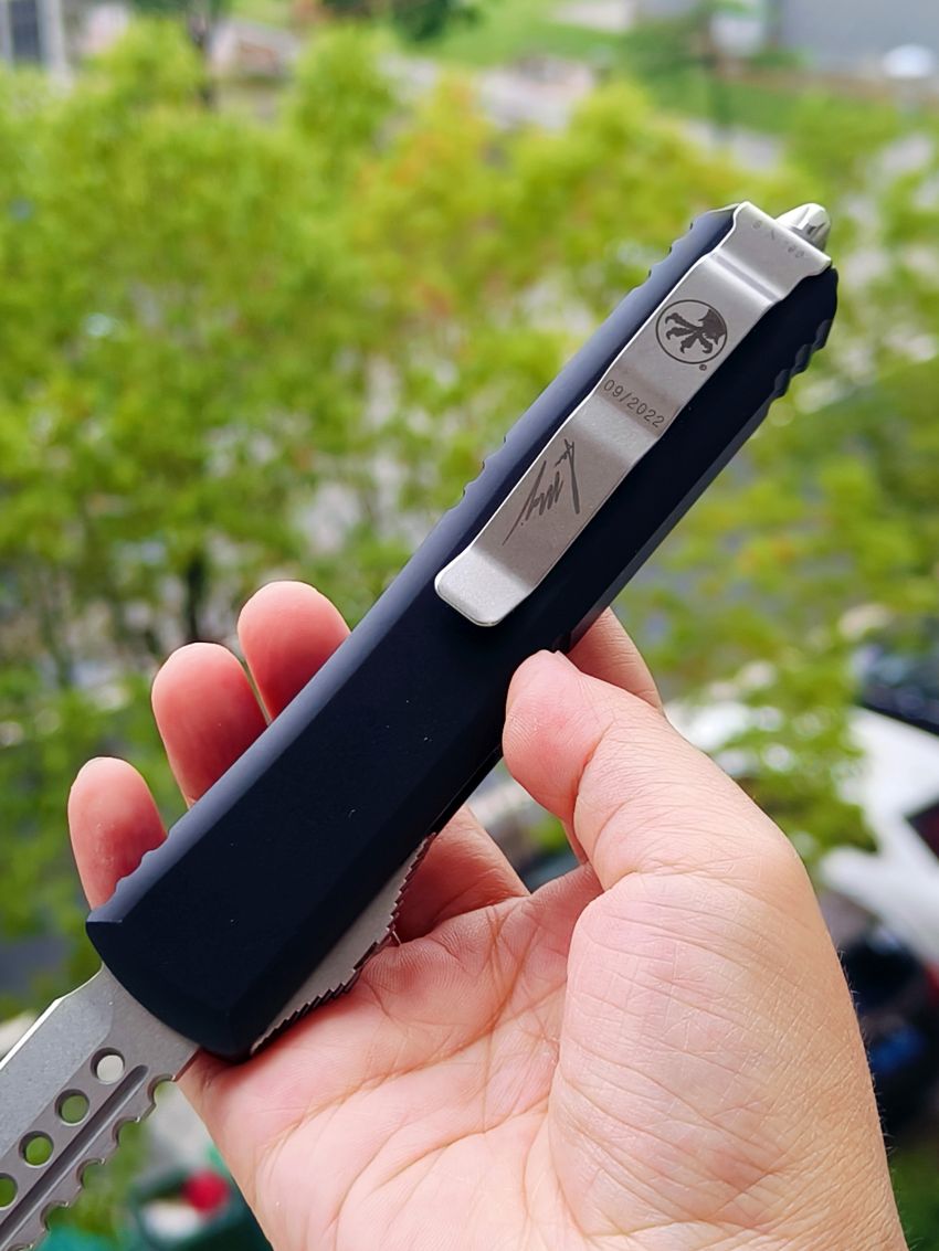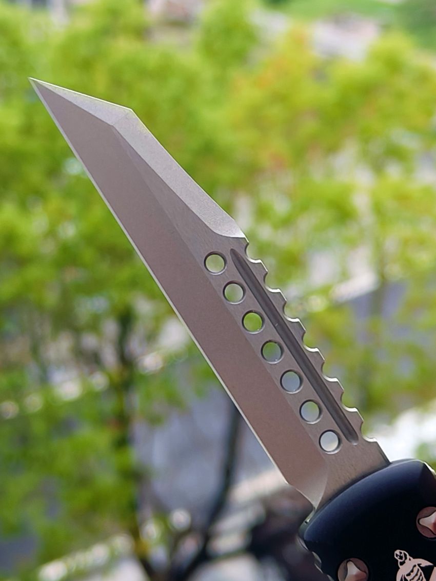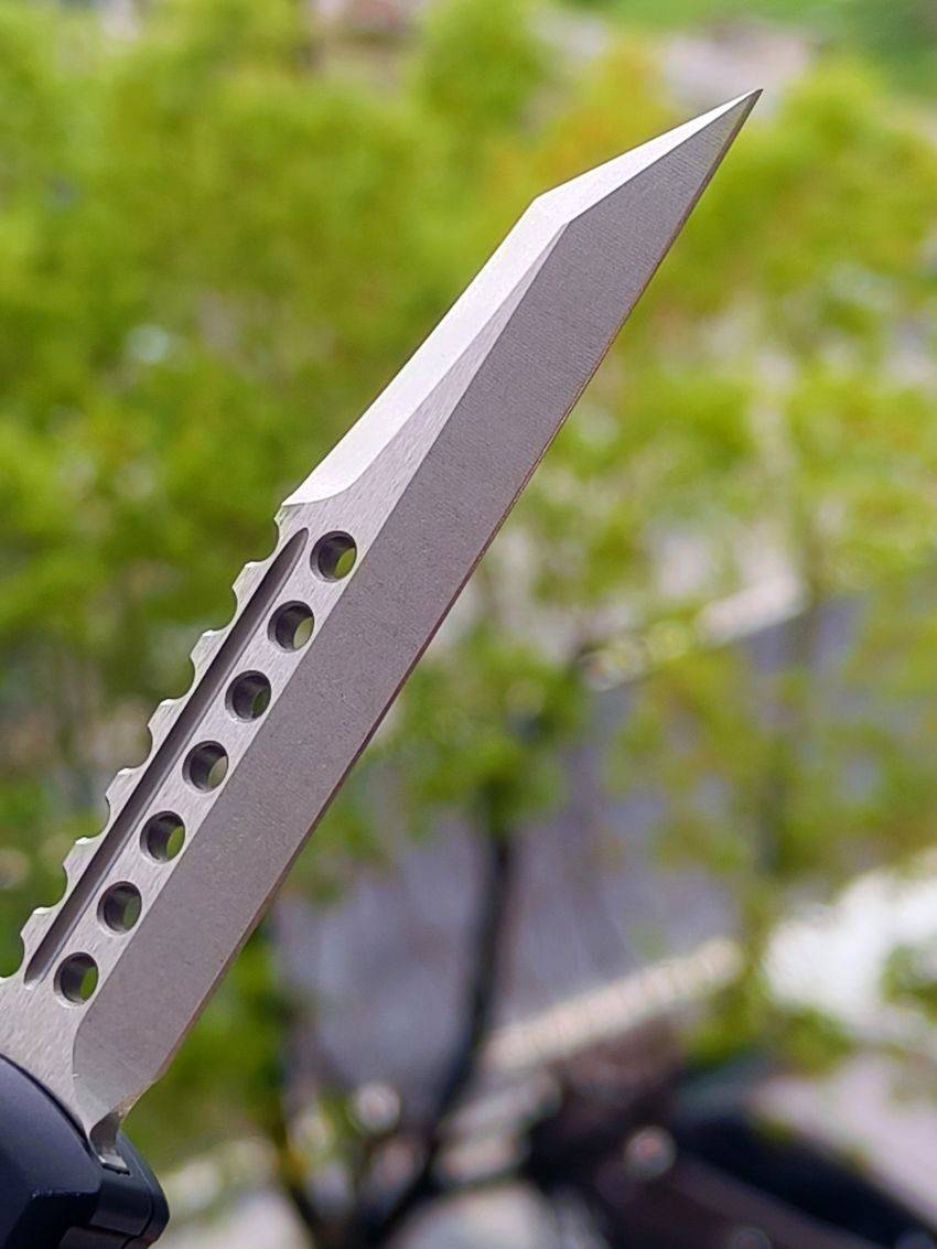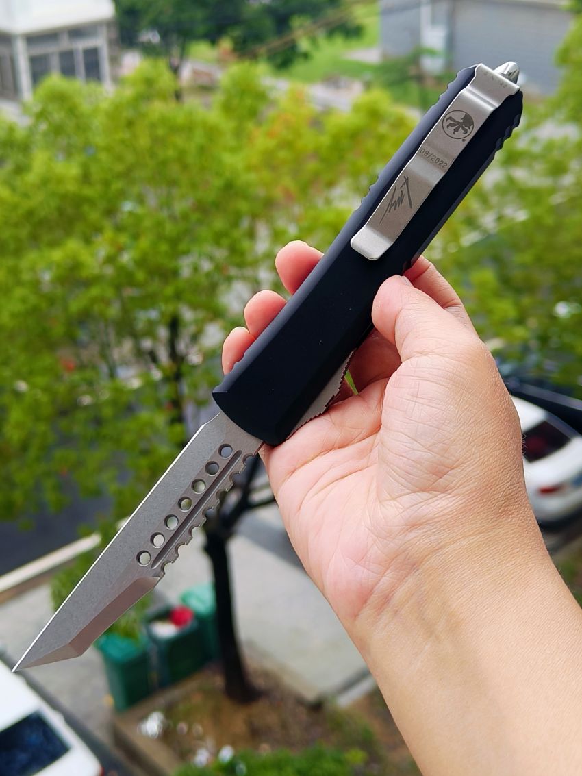 此款Microtech Ultratech Warhound战犬新款采用黑色铝柄,采用简洁有力的手推式设计,只需一个动作即可完成开刀或收刀的动作,弹力超强新款采用DLC黑铝握把与DLC组件,特别的石洗背齿平刃,精密的结构设计,无论在工艺与设计或是实用与美感都相当具有收藏价值。