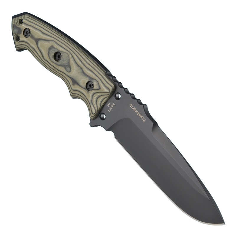 规格 • 刃长:5.5 英寸 • 总长:10.5 英寸 • 重量:10.4 盎司 刀片 • 样式:水滴形 • 厚度:0.235 英寸 • 材质:A2 工具钢 • 硬度:57-59 HRC • 处理:低温热处理 • 表面处理:黑色 Cerakote ® • 平...