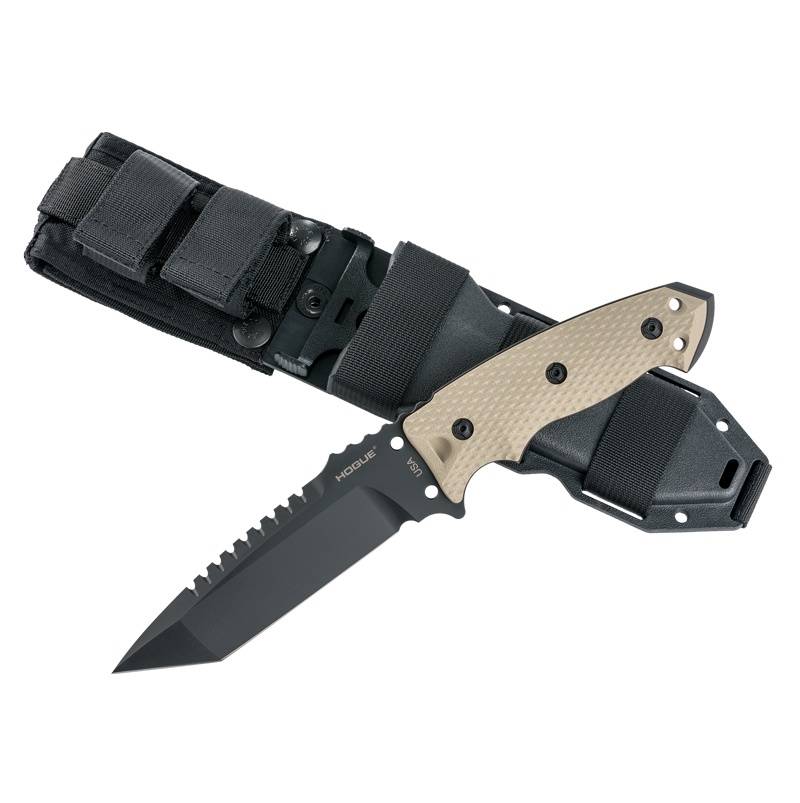 +刀片长度:5.5 英寸 +总长度:10.5 英寸 +重量:10.4 盎司 刀片 +轮廓:Tanto 带宽后锯齿 +厚度:0.235 英寸 +材质:A2 工具钢 +硬度:57-59 HRC +处理:低温热处理 +表面处理:黑色 Cerakote ® +平...