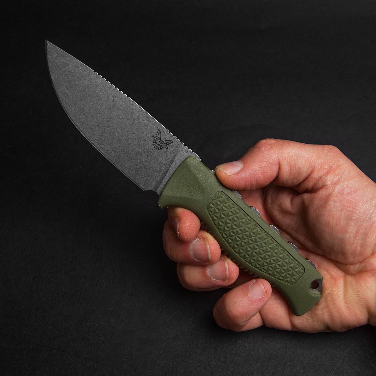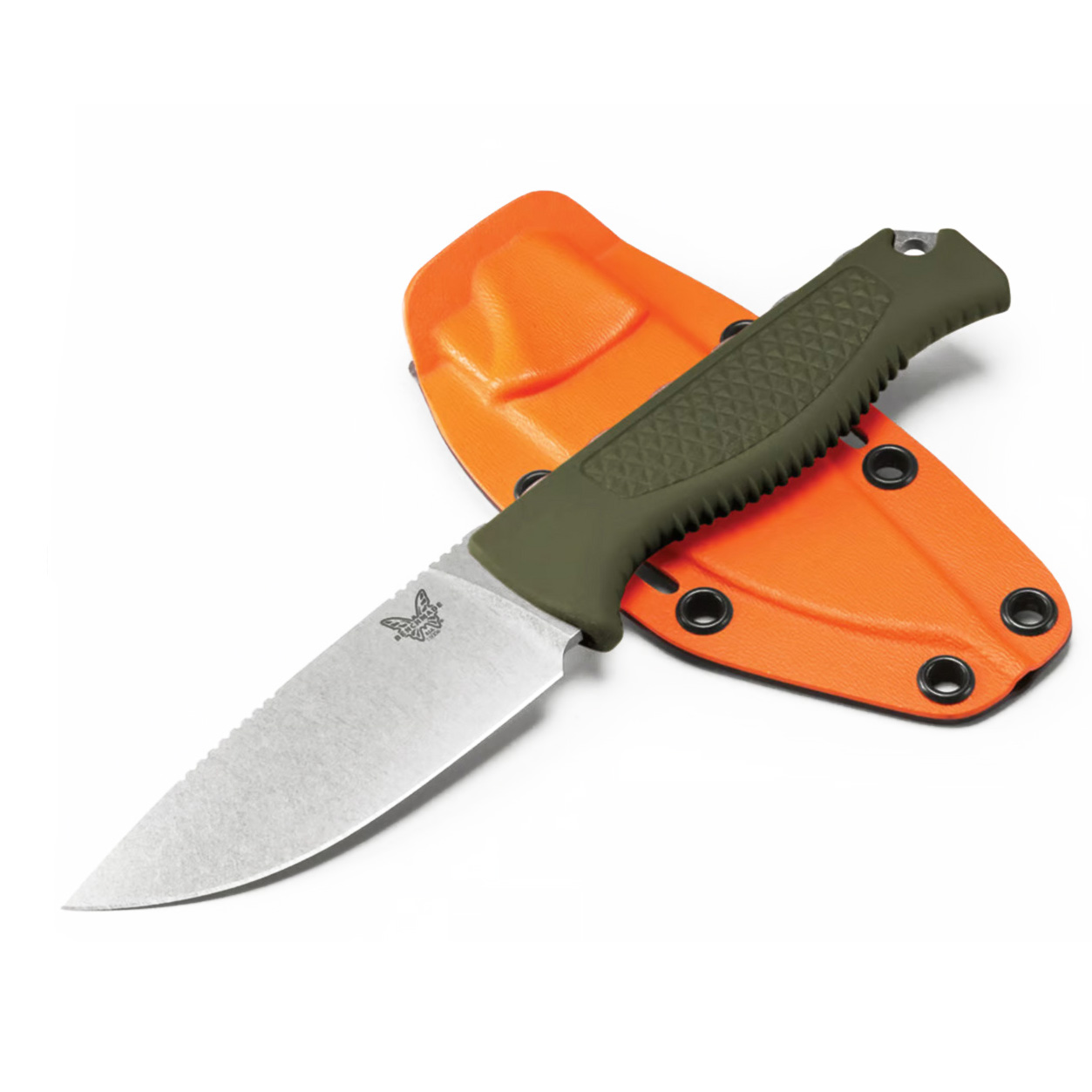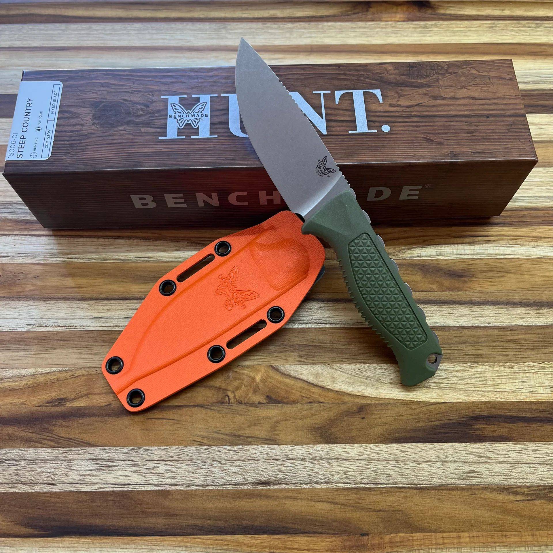 Steep Country 的迭代经过重新设计,以满足猎人的需求,他们需要一款轻巧、高性能的切割工具,可以在任何环境中使用。高滴尖刀片由 CPM-S30V 制成,在耐腐蚀性和刀刃性能之间实现了完美平衡,其大切割腹部可在处理猎物或处理任何切片任务时最大限度地提高效率。深橄榄色 Santoprene 手柄和刀片锯齿部分提供充足的抓握力和精确的刀片控制。这把刀包括一个模制的黑色和橙色 Boltaron 刀鞘。