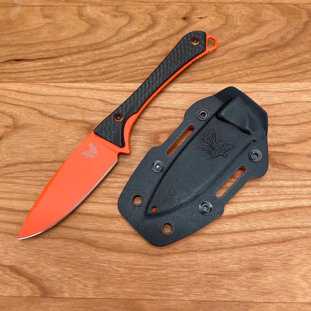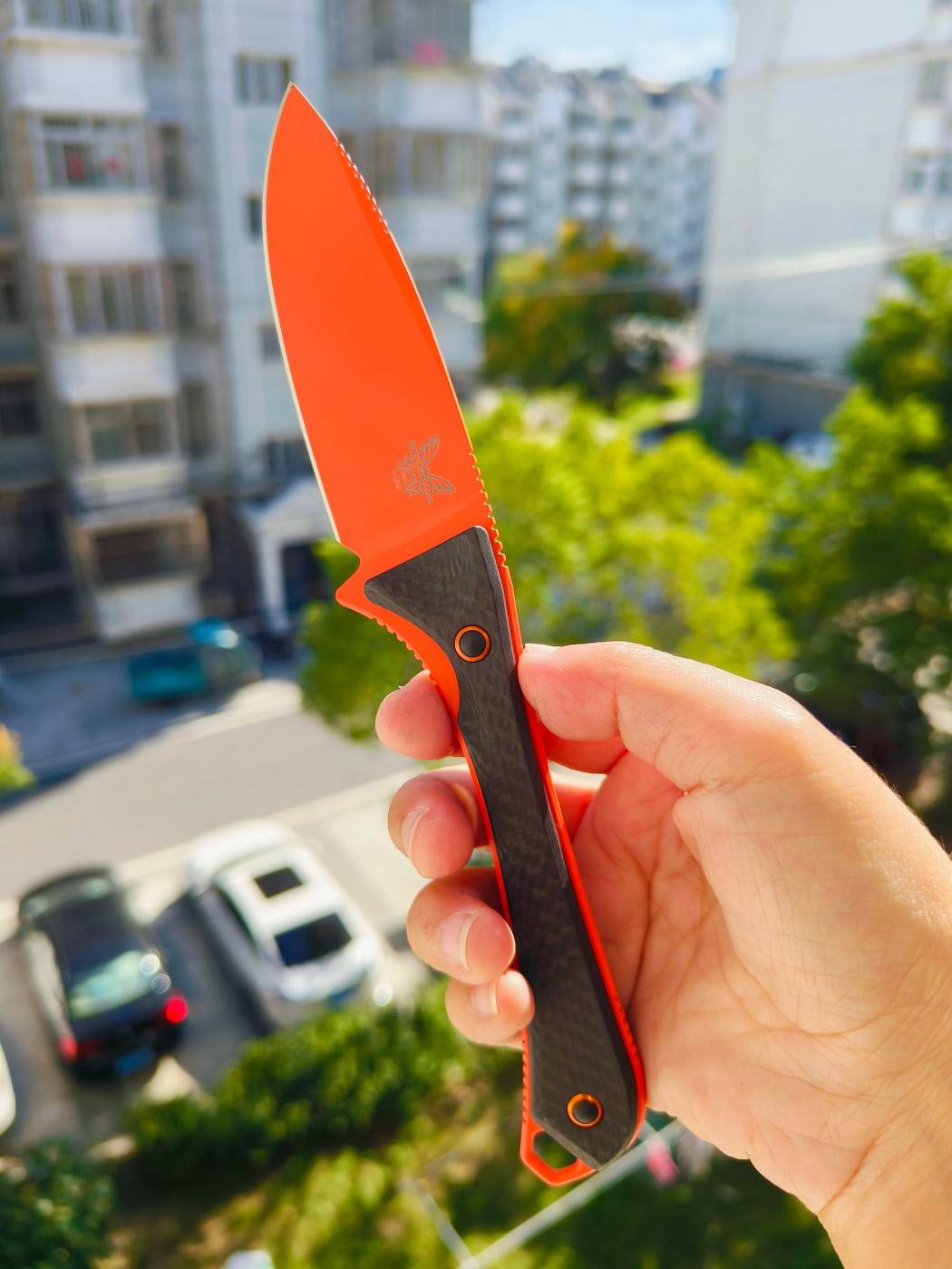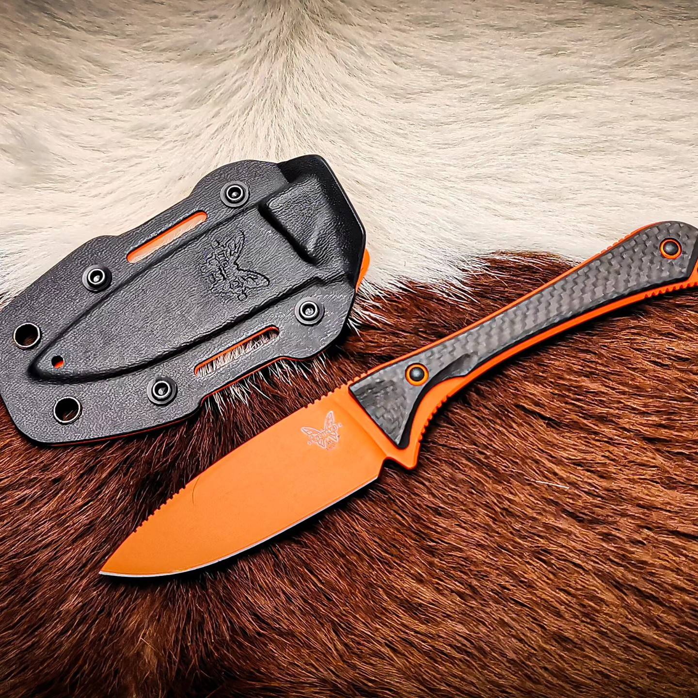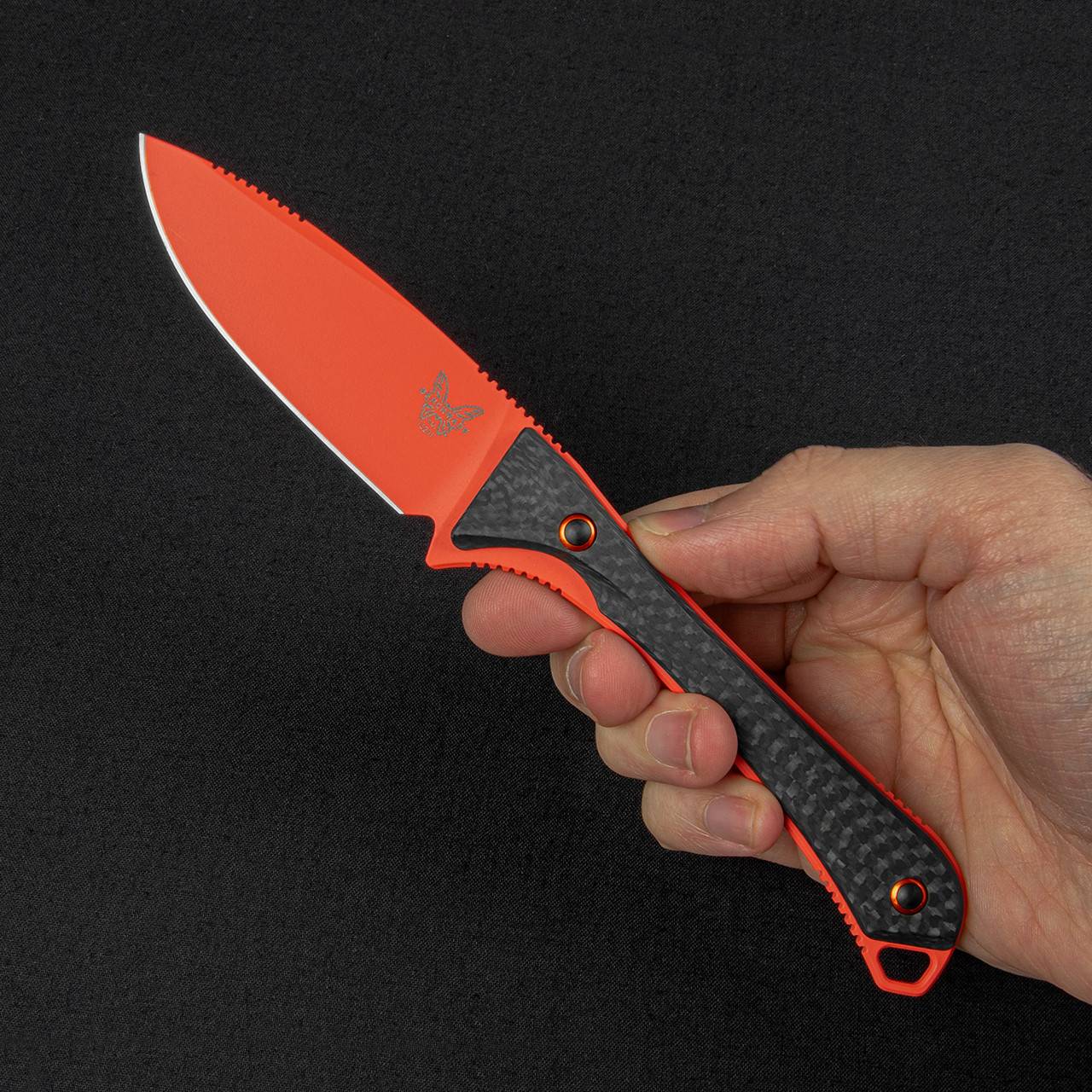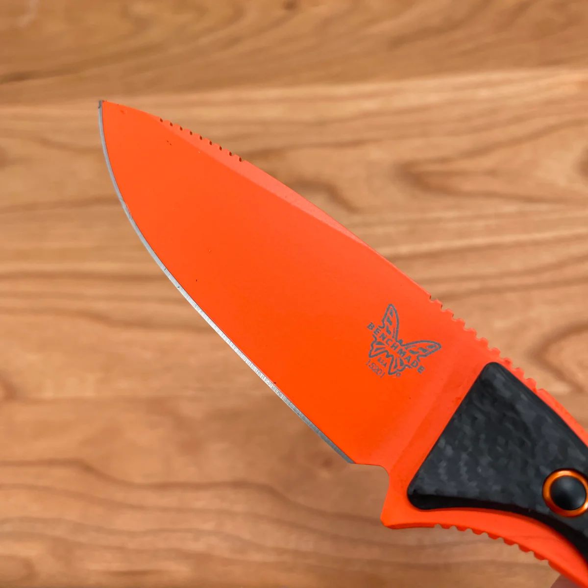 Benchmade Altitude 固定刀片刀 (15201OR) - CPM-S90V 橙色 Cerakote 滴尖平刃,黑色碳纤维手柄