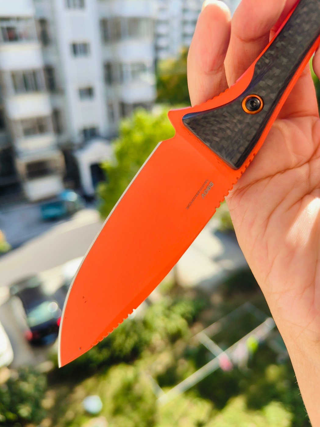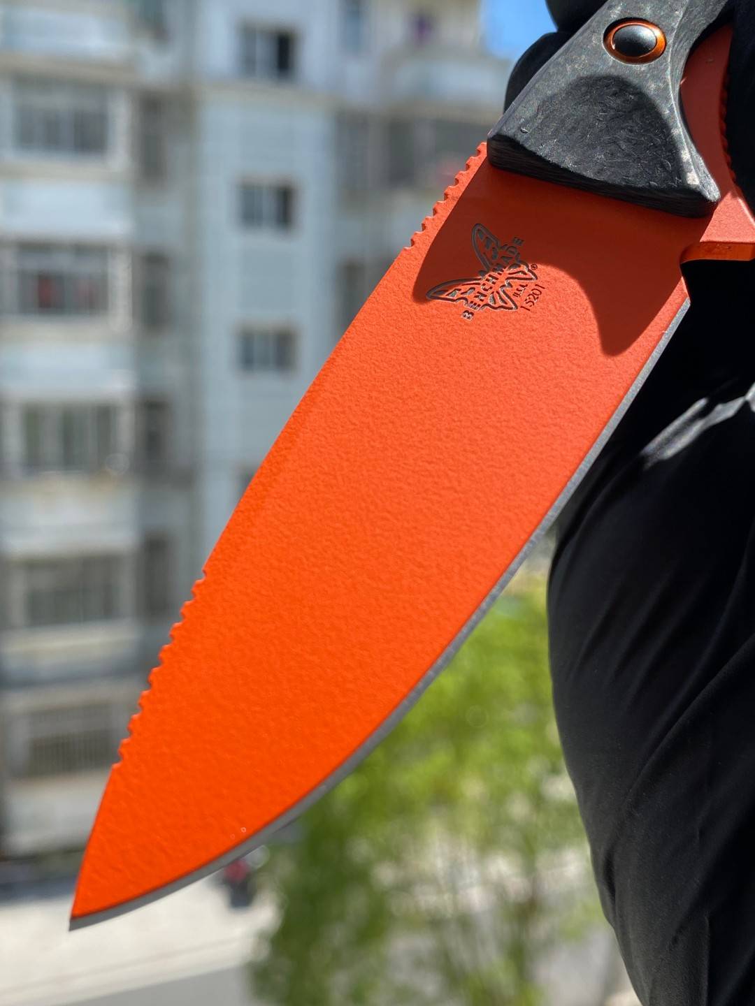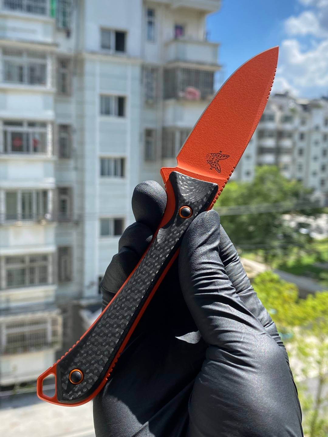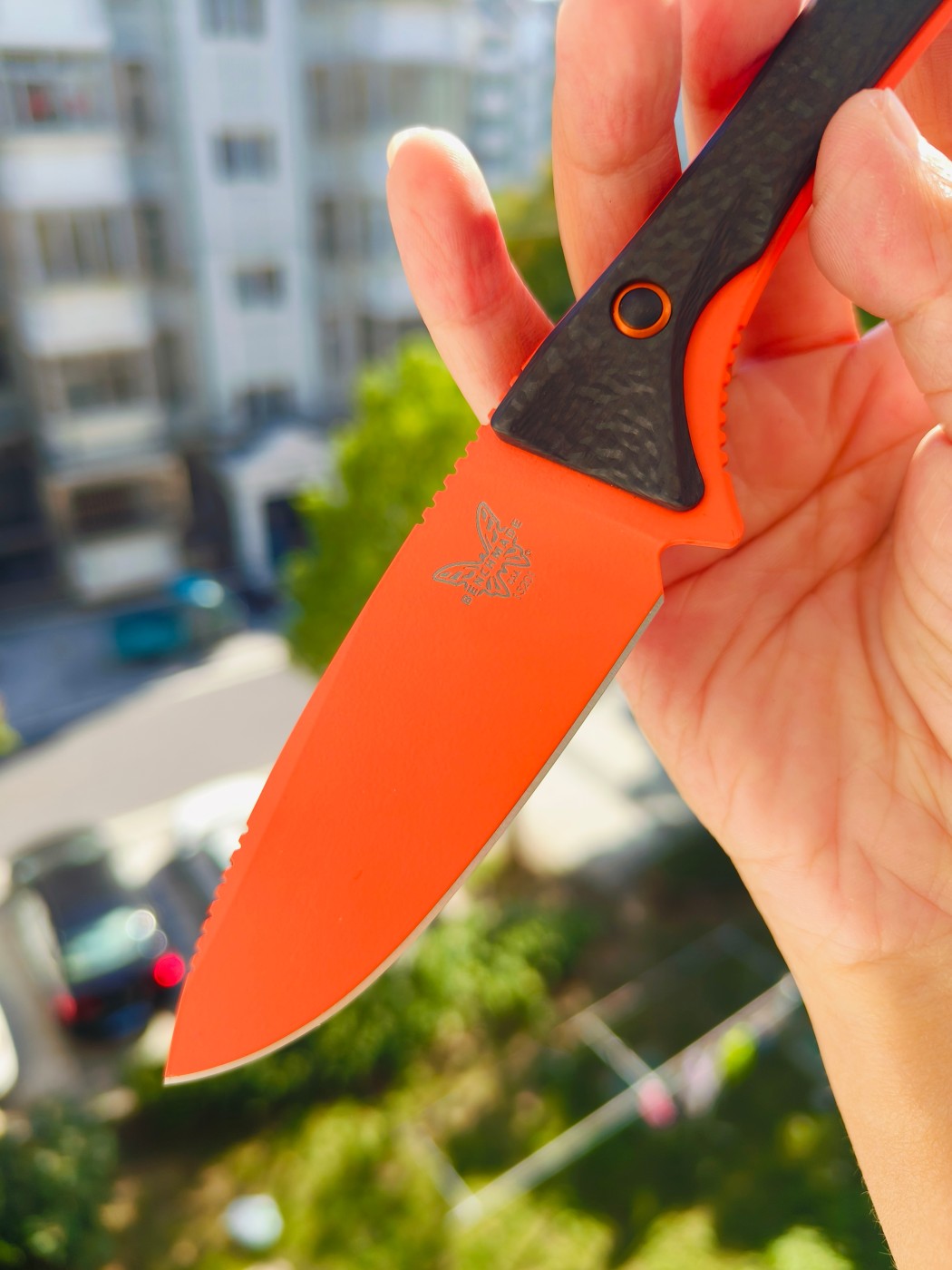 Benchmade Altitude 固定刀片刀 (15201OR) - CPM-S90V 橙色 Cerakote 滴尖平刃,黑色碳纤维手柄