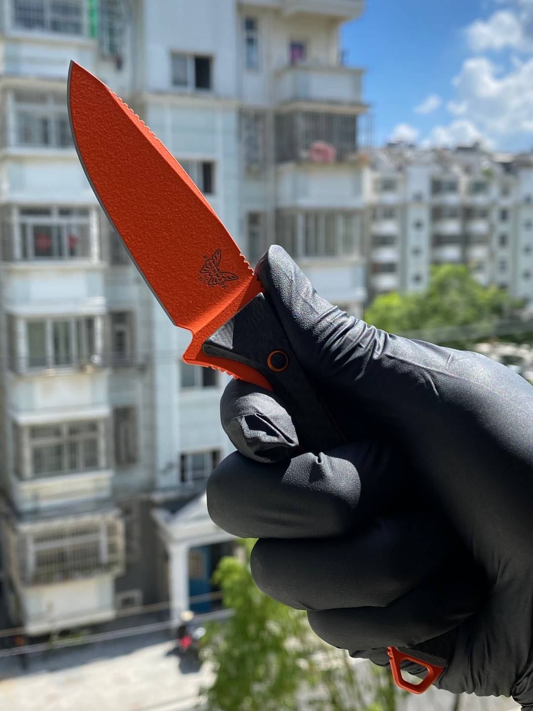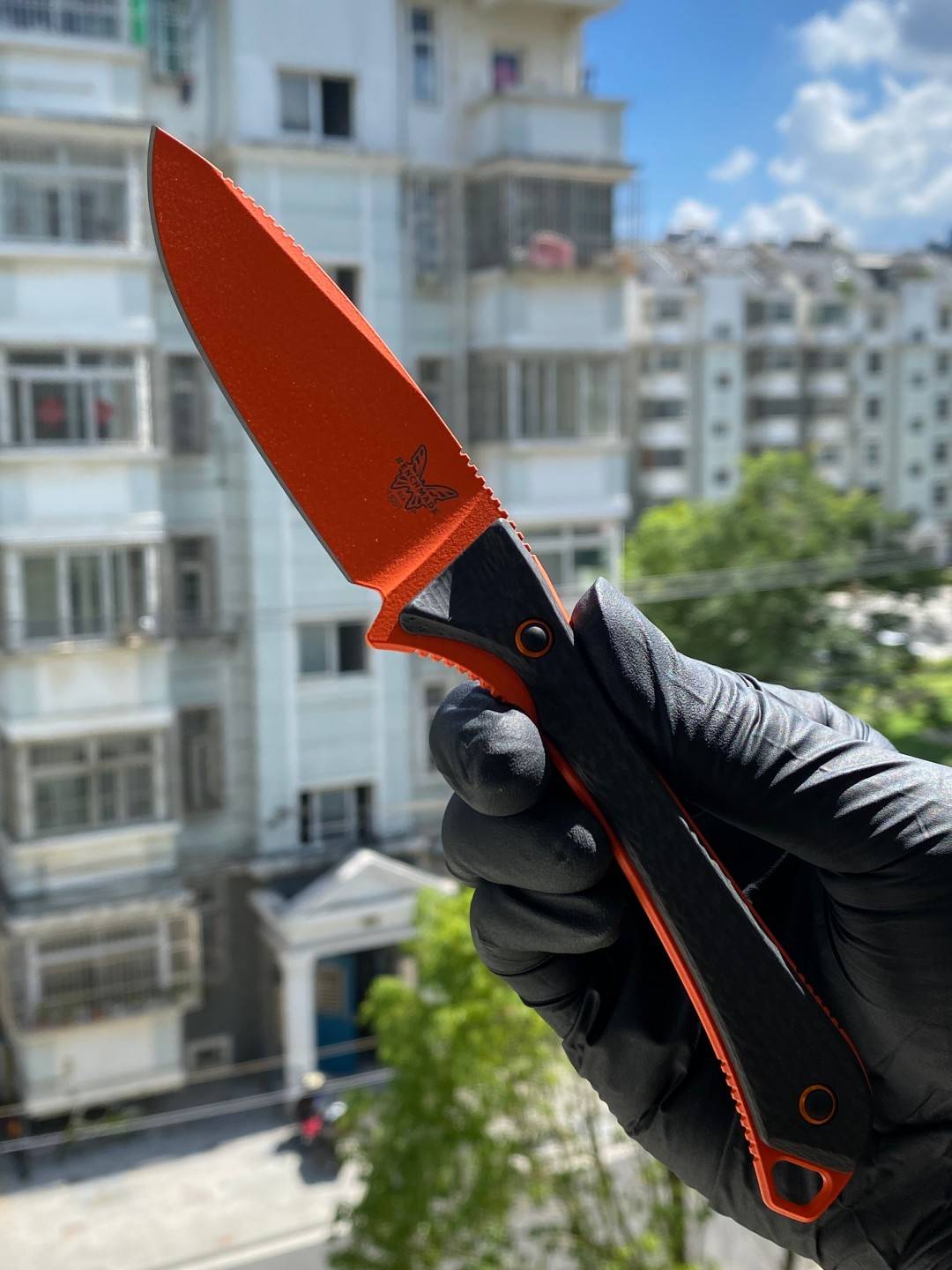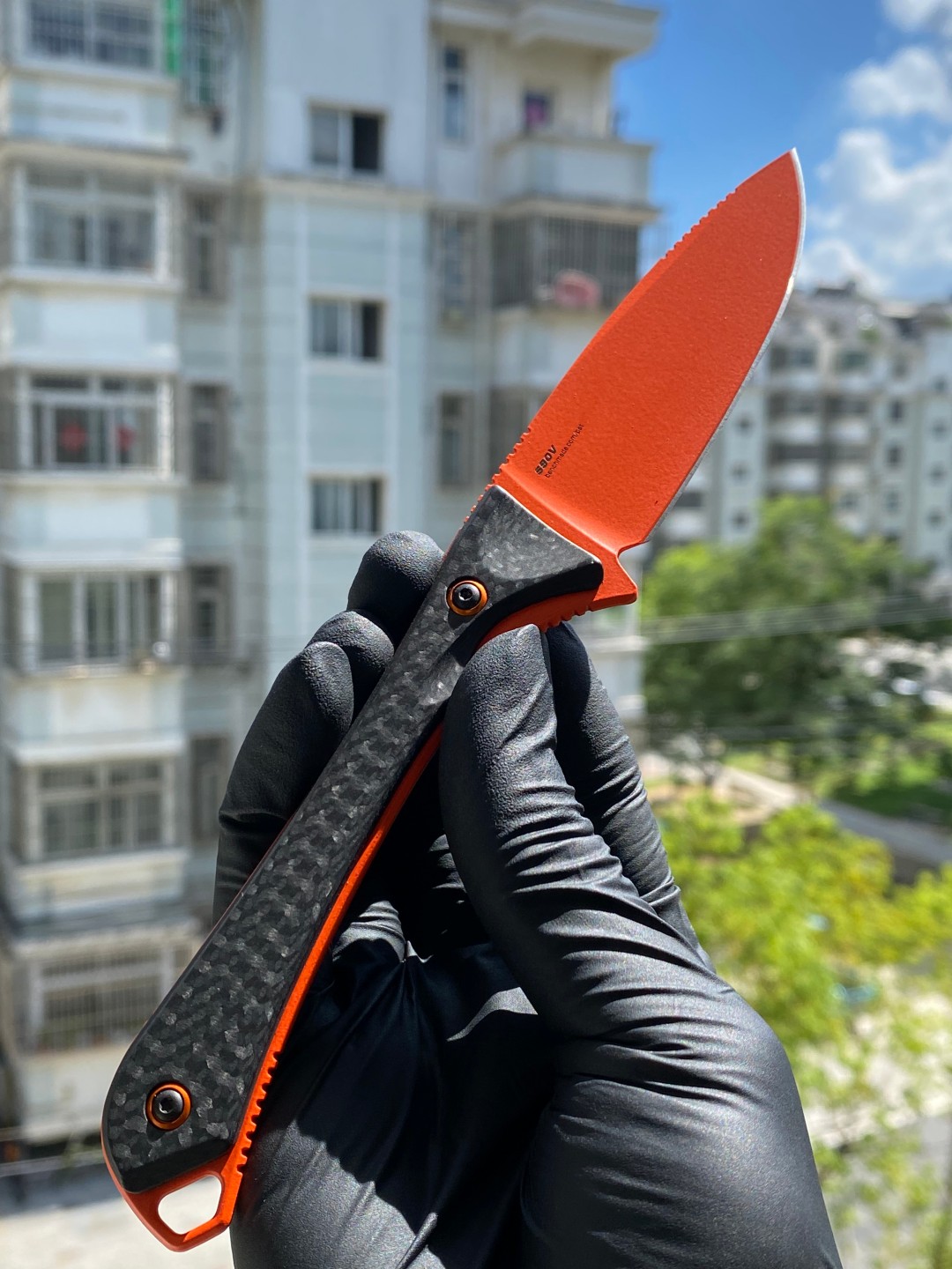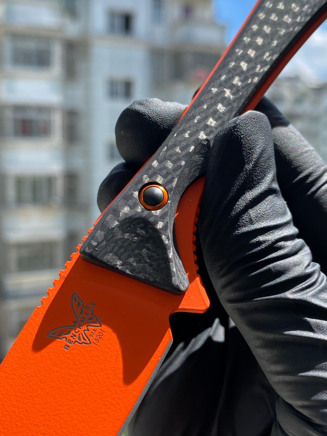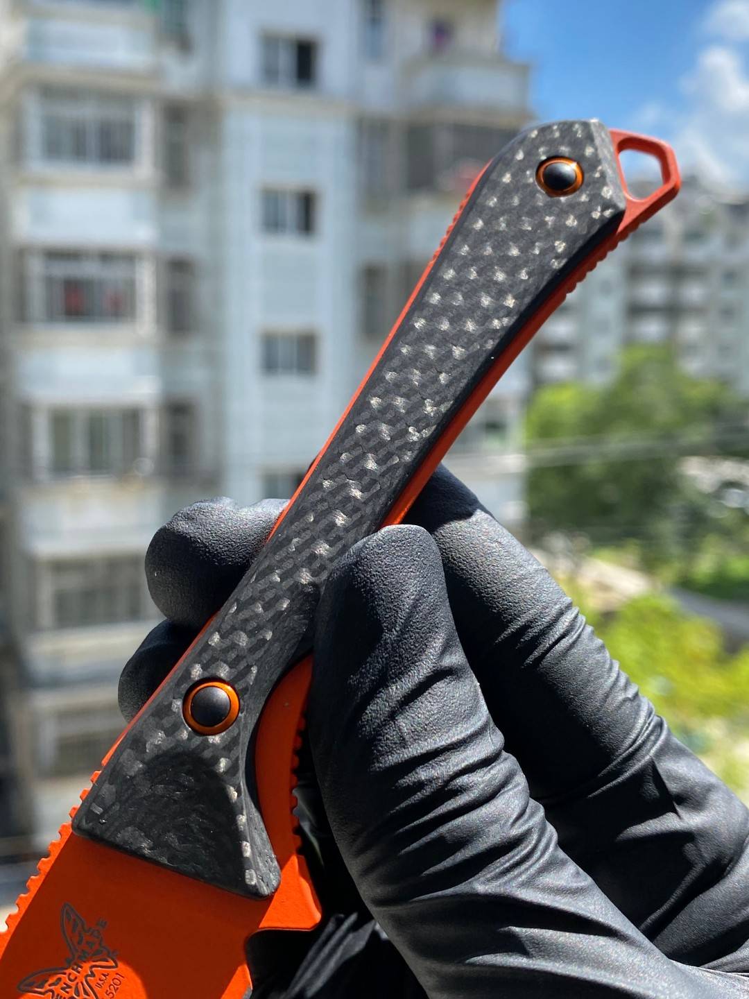 Benchmade Altitude 固定刀片刀 (15201OR) - CPM-S90V 橙色 Cerakote 滴尖平刃,黑色碳纤维手柄