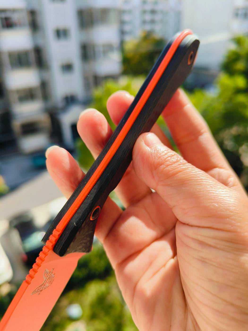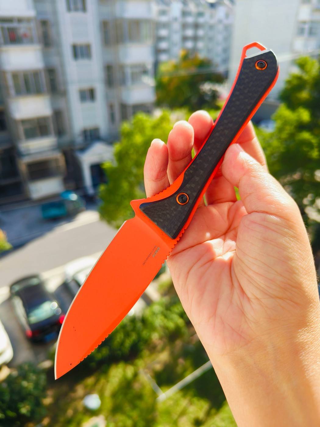 Altitude 是 Benchmade 的一款极简主义猎刀,它优点多多,缺点却很少。这些优点包括:它由 CPM S90V 不锈钢制成,锋利度极佳,这是其他钢材所不具备的;它的颜色为橙色,如果在野外掉落很容易找到;它有微型碳纤维鳞片,增加了极简主义设计中通常没有的额外机动性和舒适性;它配有刀鞘,可安全存放和携带;它有一个用于系挂绳的孔。Benchmade 固定刀片刀本身的优点是在美国制造,而且质量最高!无论您是露营、徒步旅行、打猎还是从事任何其他户外探险,Altitude 都是您随身携带的那种刀。