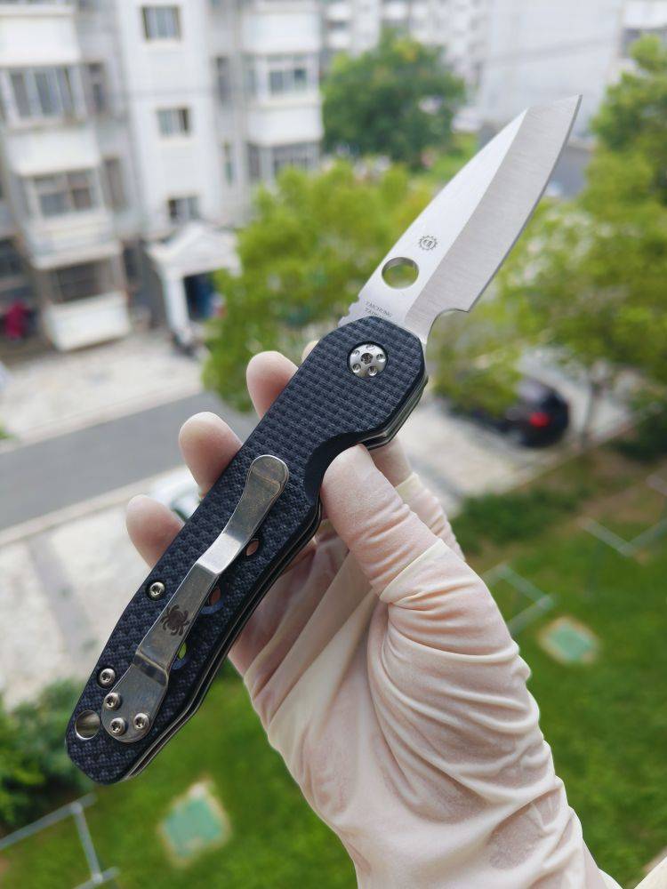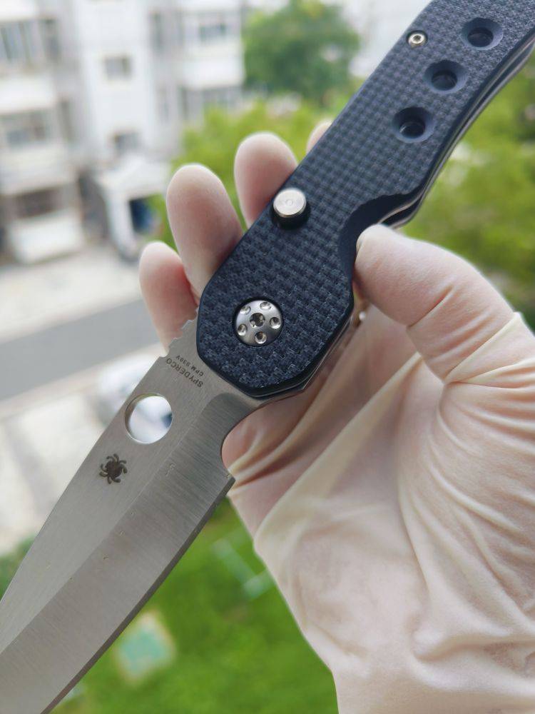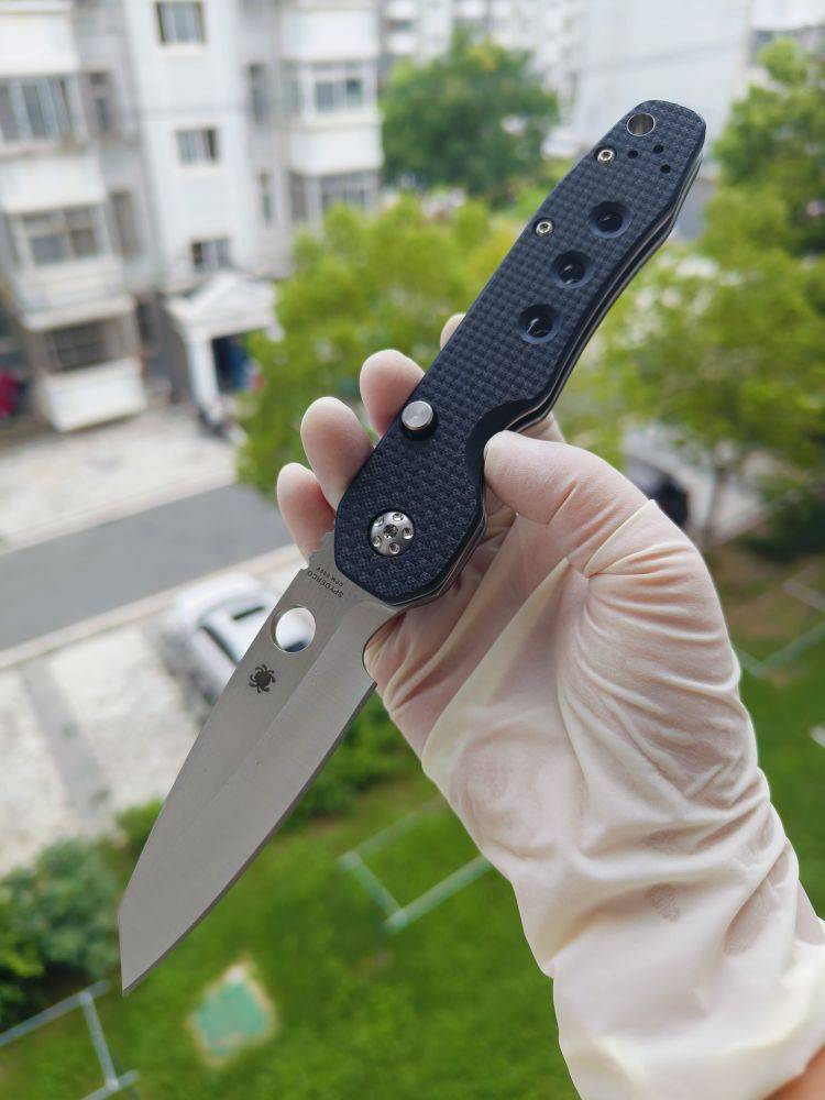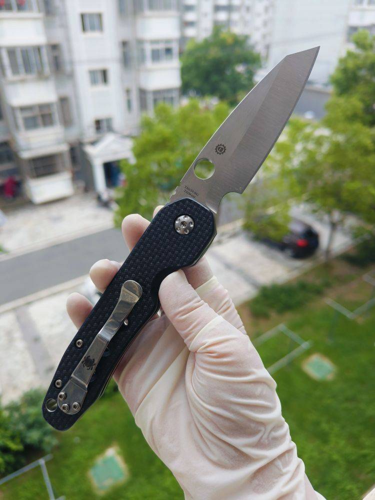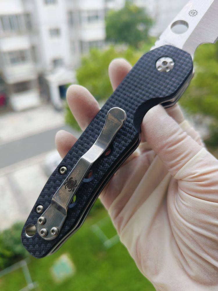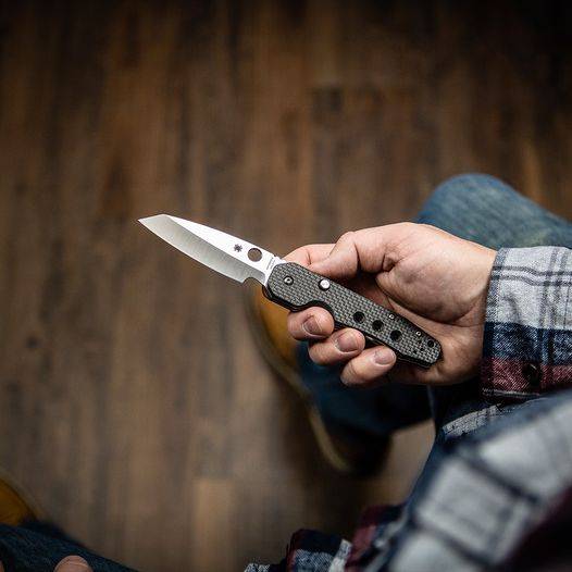 Kevin Smock 是一位屡获殊荣的工业设计师,他用富有远见的手工定制刀具吸引了众多目光。Spyderco Smock 以他的 SK23 定制折刀为基础,将他的创新风格转化为高品质的折刀。这把刀的凹磨刀片由 CPM S30V 不锈钢加工而成,包括商标圆孔和优雅低调的翻盖开刀器。它与镂空手柄搭配使用,手柄采用全不锈钢衬里、纹理碳纤维/G-10 层压鳞片、轻质、开放式结构和右侧向上的口袋夹。然而,Smock 最独特的功能是其高强度压缩锁定机制上的按钮释放装置,它允许安全轻松地关闭刀具,而无需将手指放在刀片边缘附近。