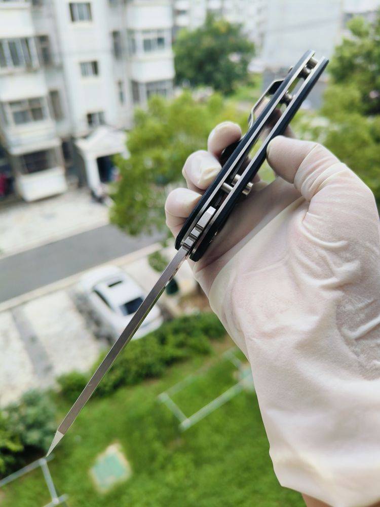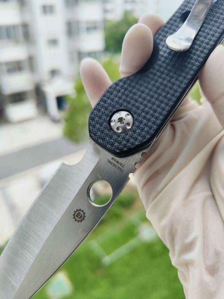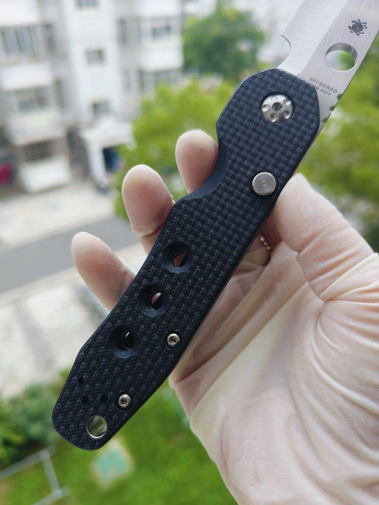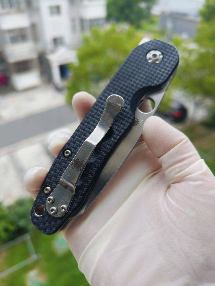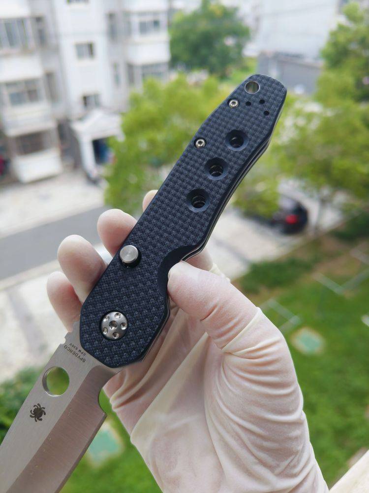 Kevin Smock 是一位屡获殊荣的工业设计师,他用富有远见的手工定制刀具吸引了众多目光。Spyderco Smock 以他的 SK23 定制折刀为基础,将他的创新风格转化为高品质的折刀。这把刀的凹磨刀片由 CPM S30V 不锈钢加工而成,包括商标圆孔和优雅低调的翻盖开刀器。它与镂空手柄搭配使用,手柄采用全不锈钢衬里、纹理碳纤维/G-10 层压鳞片、轻质、开放式结构和右侧向上的口袋夹。然而,Smock 最独特的功能是其高强度压缩锁定机制上的按钮释放装置,它允许安全轻松地关闭刀具,而无需将手指放在刀片边缘附近。