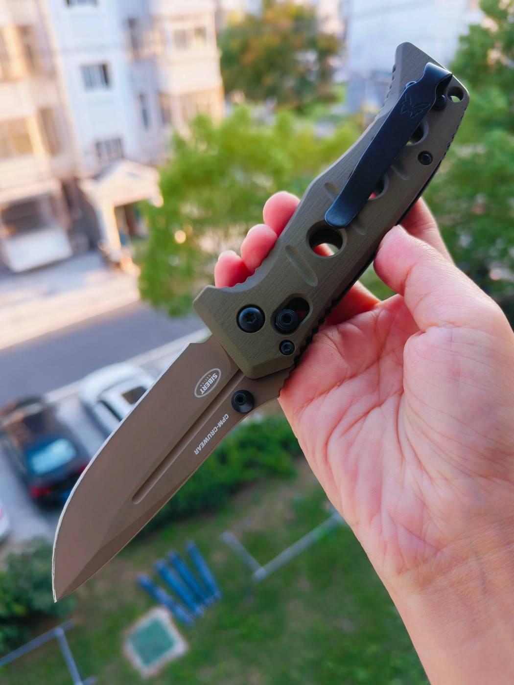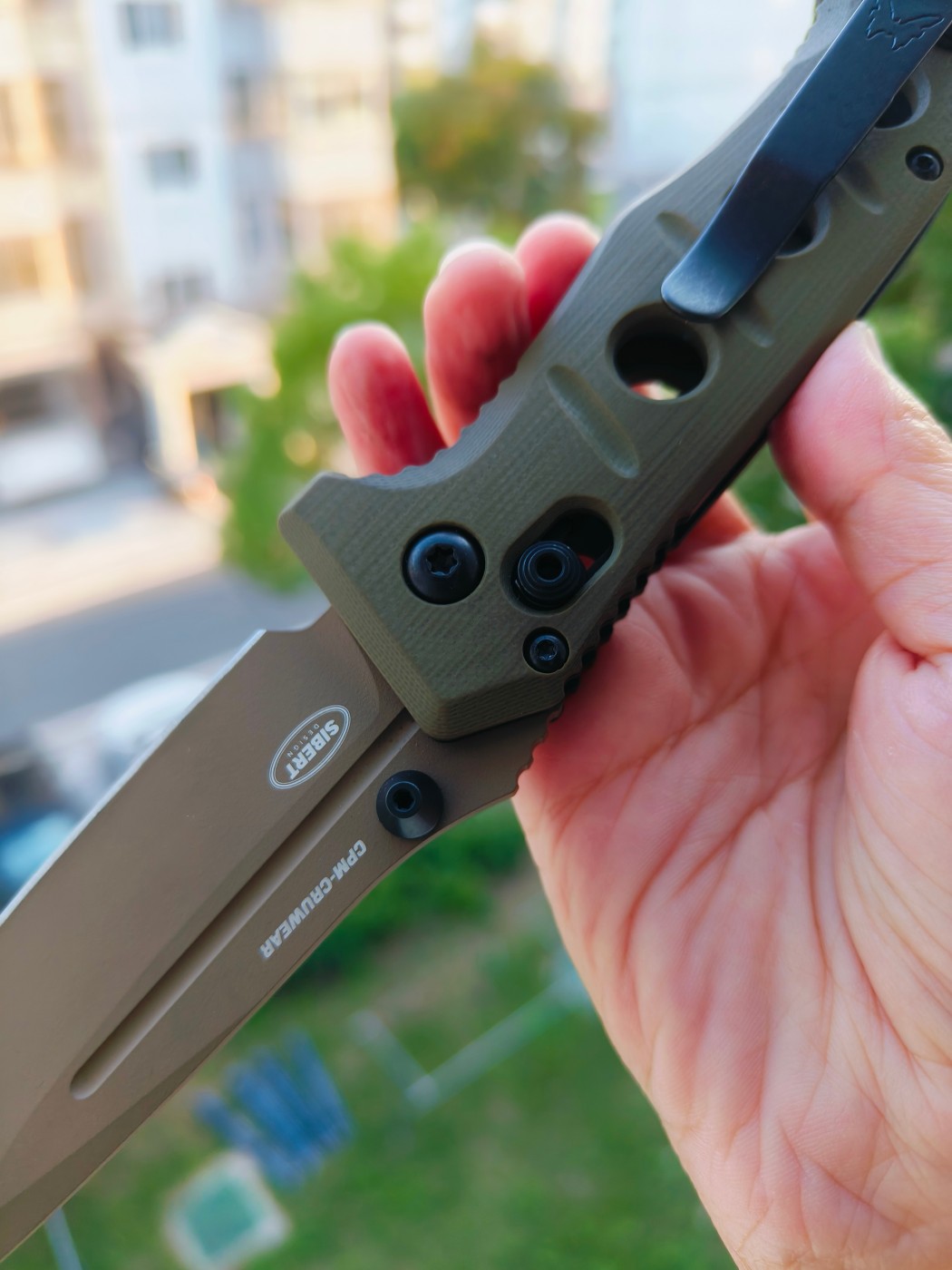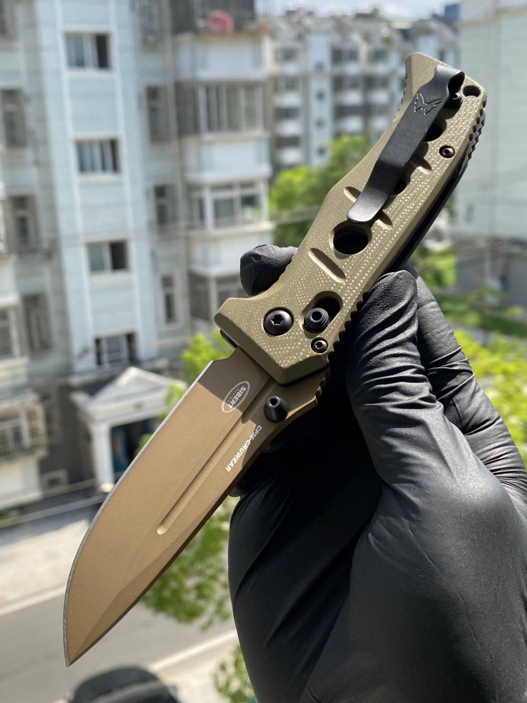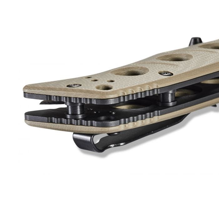 水滴形刀片 CPM-CruWear 优质工具钢刀片 (63-65HRC) 沙色饰面 Deep-Carry 可逆式 Tip-Up 口袋夹 沙色G10手柄 规格 刀片长度:3.25 英寸(8.26 厘米) 刀片厚度:0.140 英寸(3....