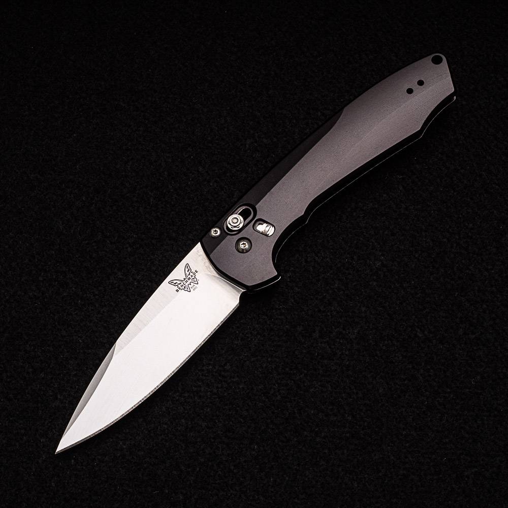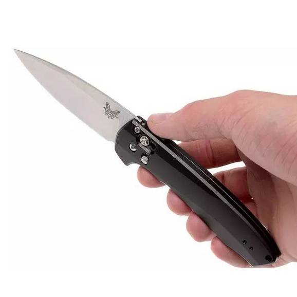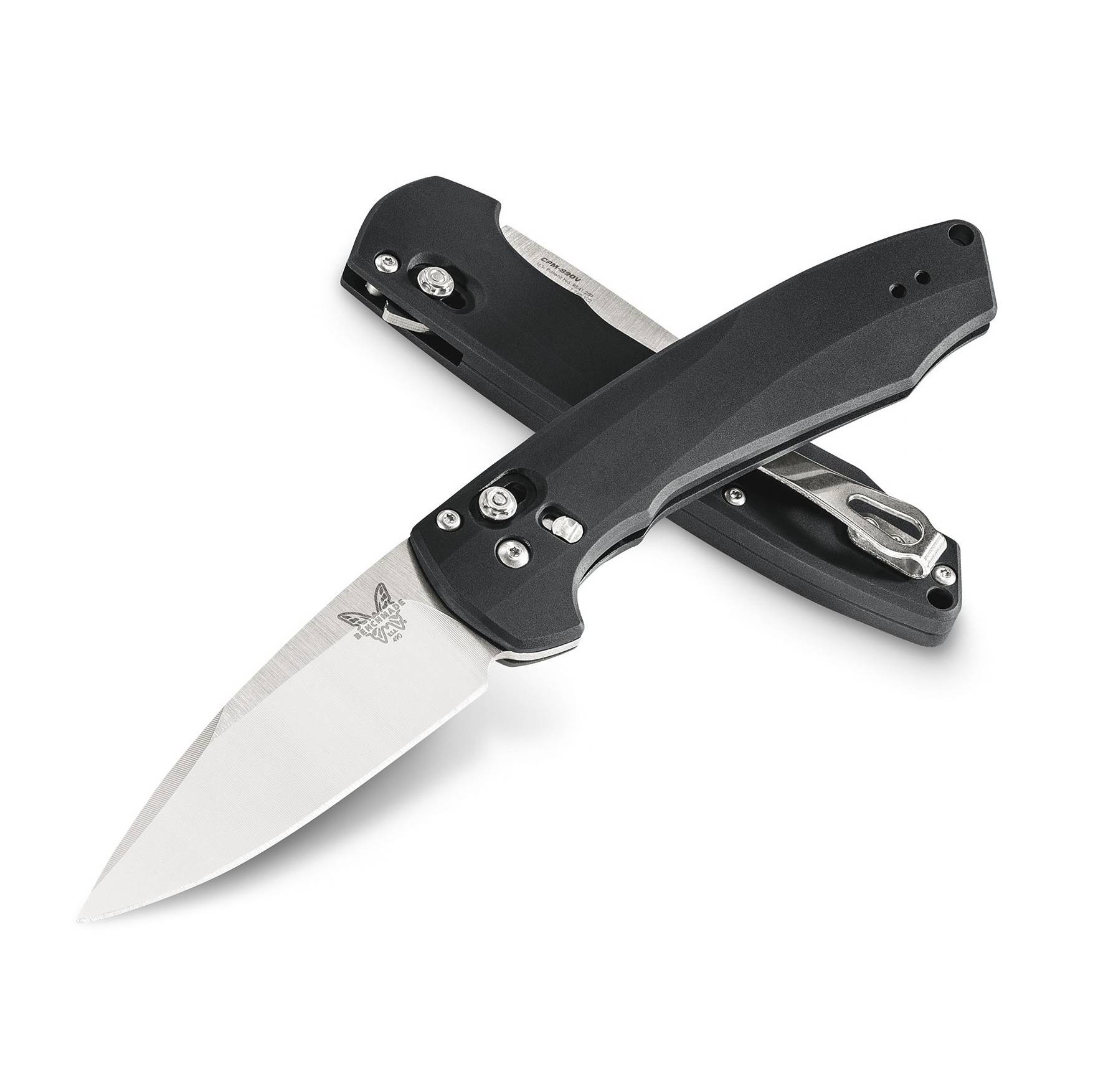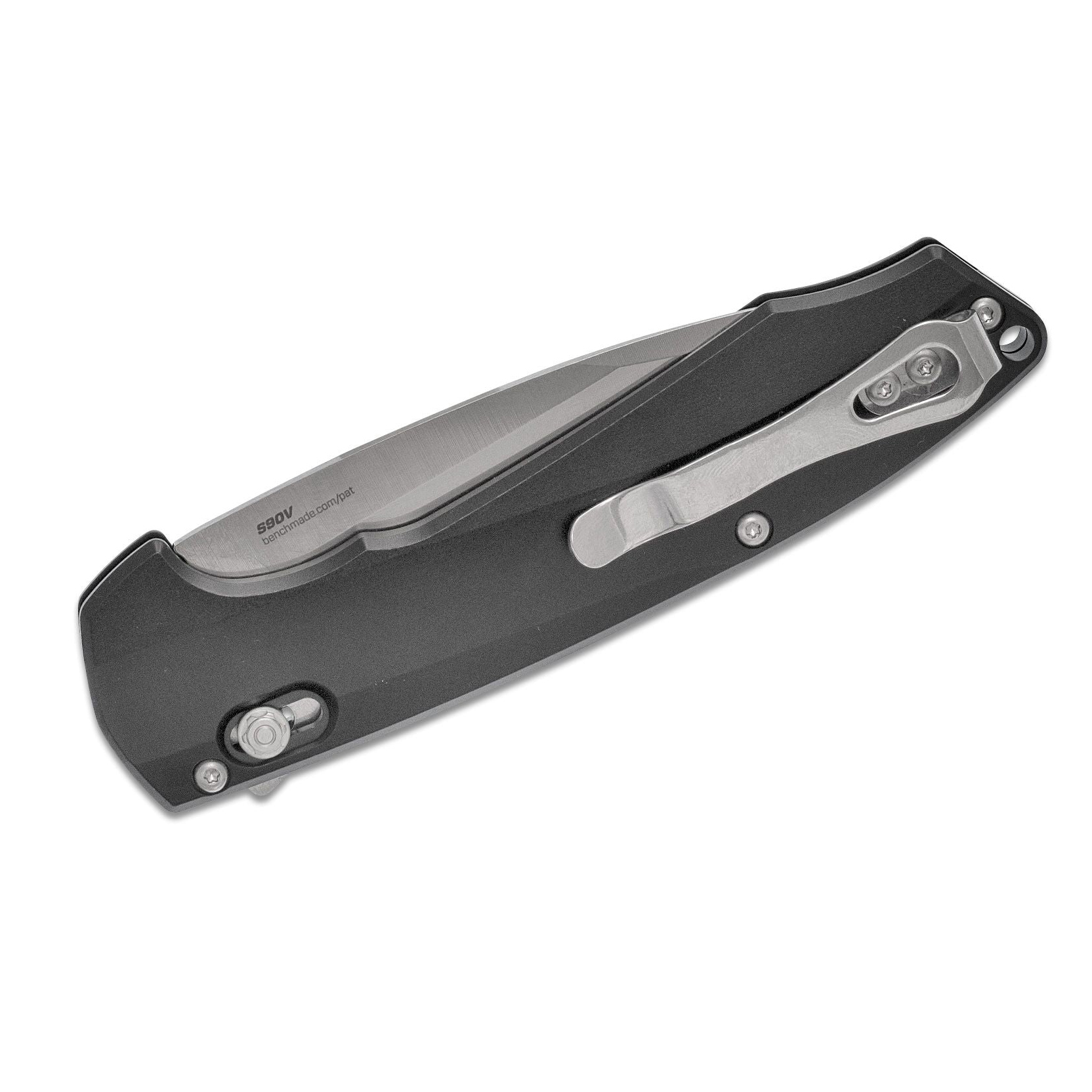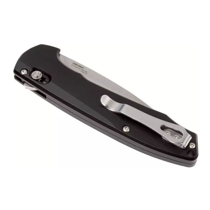 采用 CPM S90V 制成的缎面滴尖刀片。 翻盖开启器。 黑色铝制手柄,方便抓握。 Var 锁可安全锁定。 可翻转、向上倾斜的口袋夹。 轴辅助打开
