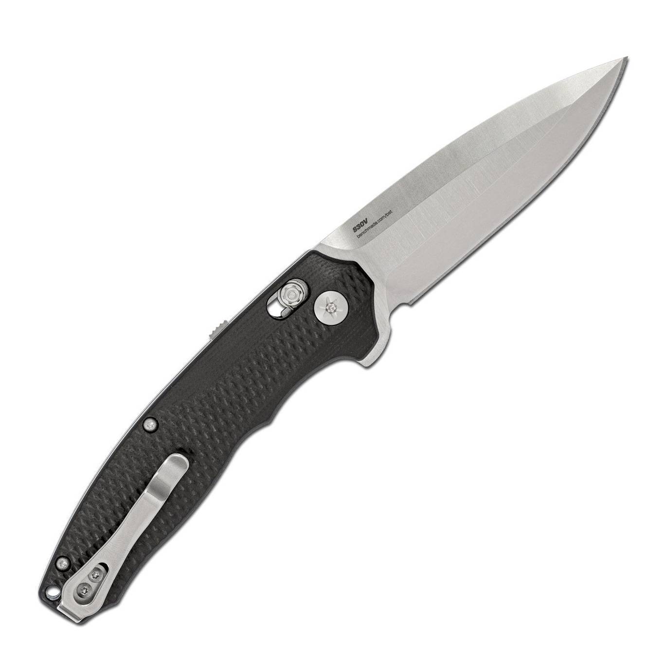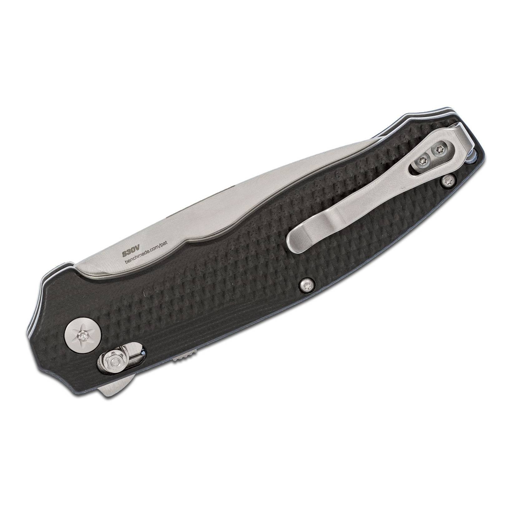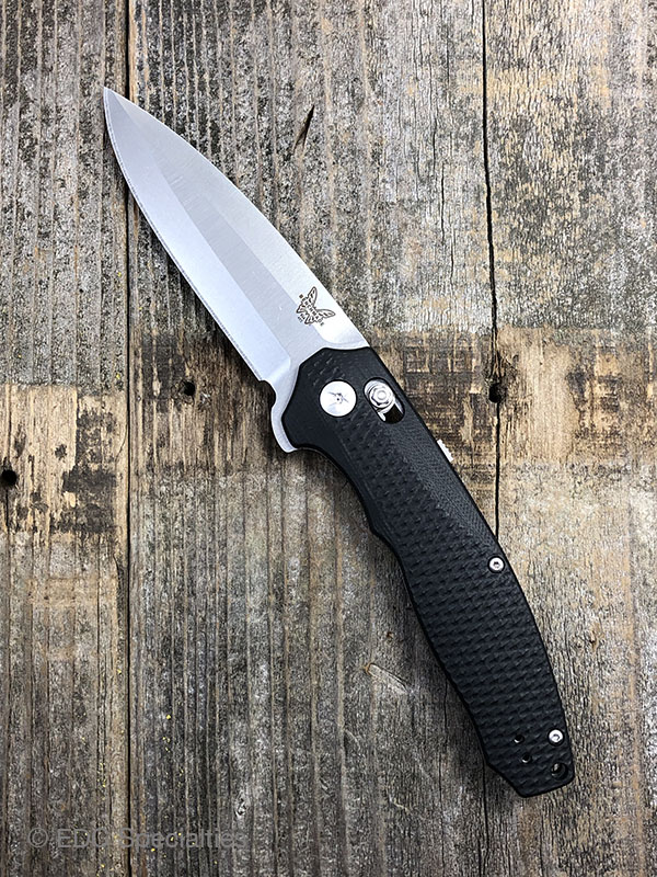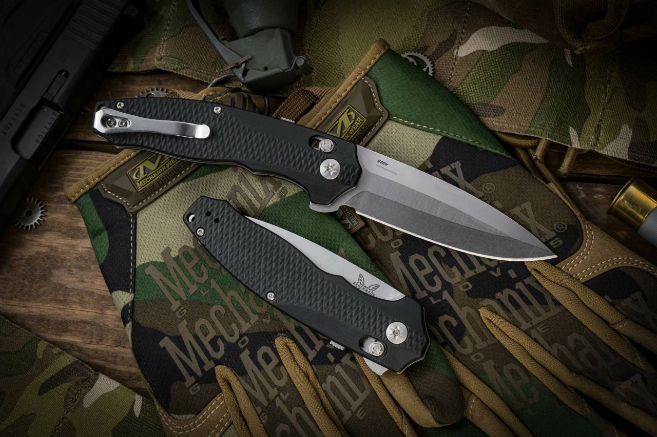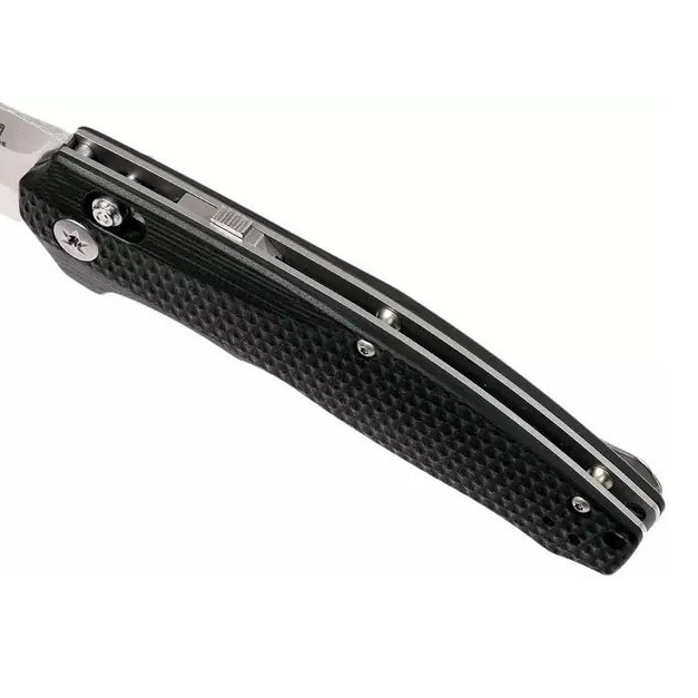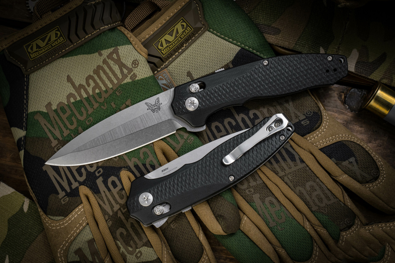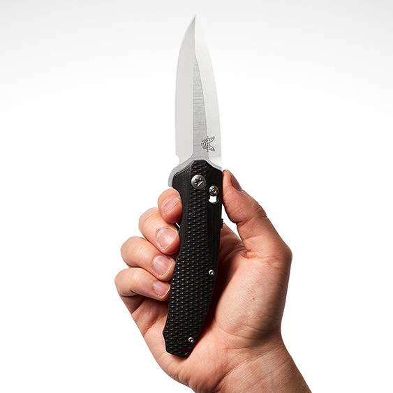 AXIS 是Benchmade 的专利产品,自推出以来就备受瞩目,并赢得了众多粉丝的青睐。AXIS 的设计 100% 左右手通用,其功能来自一根小型硬化钢条,该钢条在两个钢衬里上加工的槽中前后移动。该钢条延伸到刀的两侧,横跨衬里,位于刀片后部。打开刀片时,它会与刀片的倾斜柄部接合。两个欧米茄式弹簧(每个衬里上一个)使锁定杆具有与刀柄接合的惯性。因此,柄部牢固地楔入一个相当大的止动销和 AXIS 钢条本身之间。