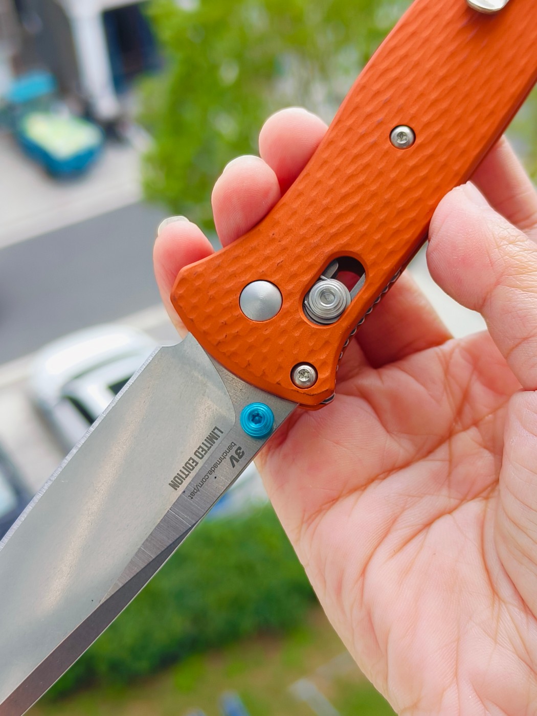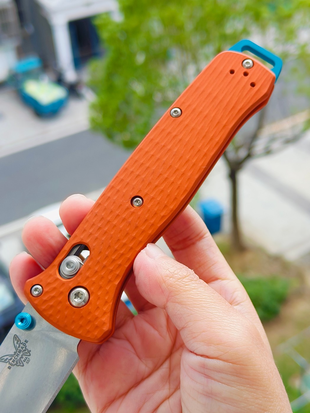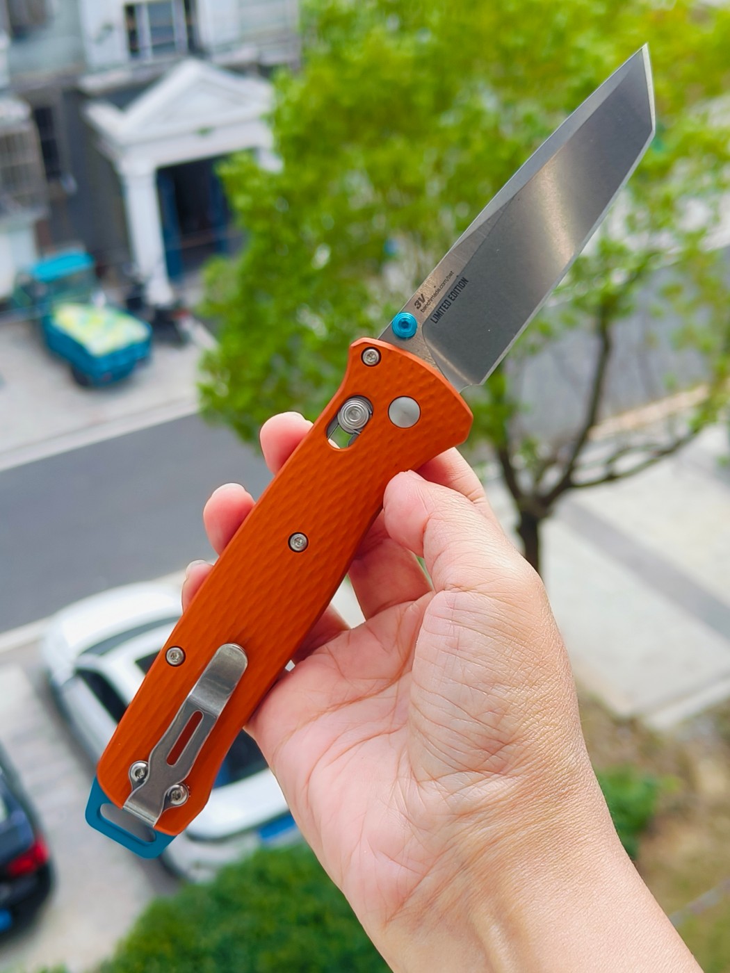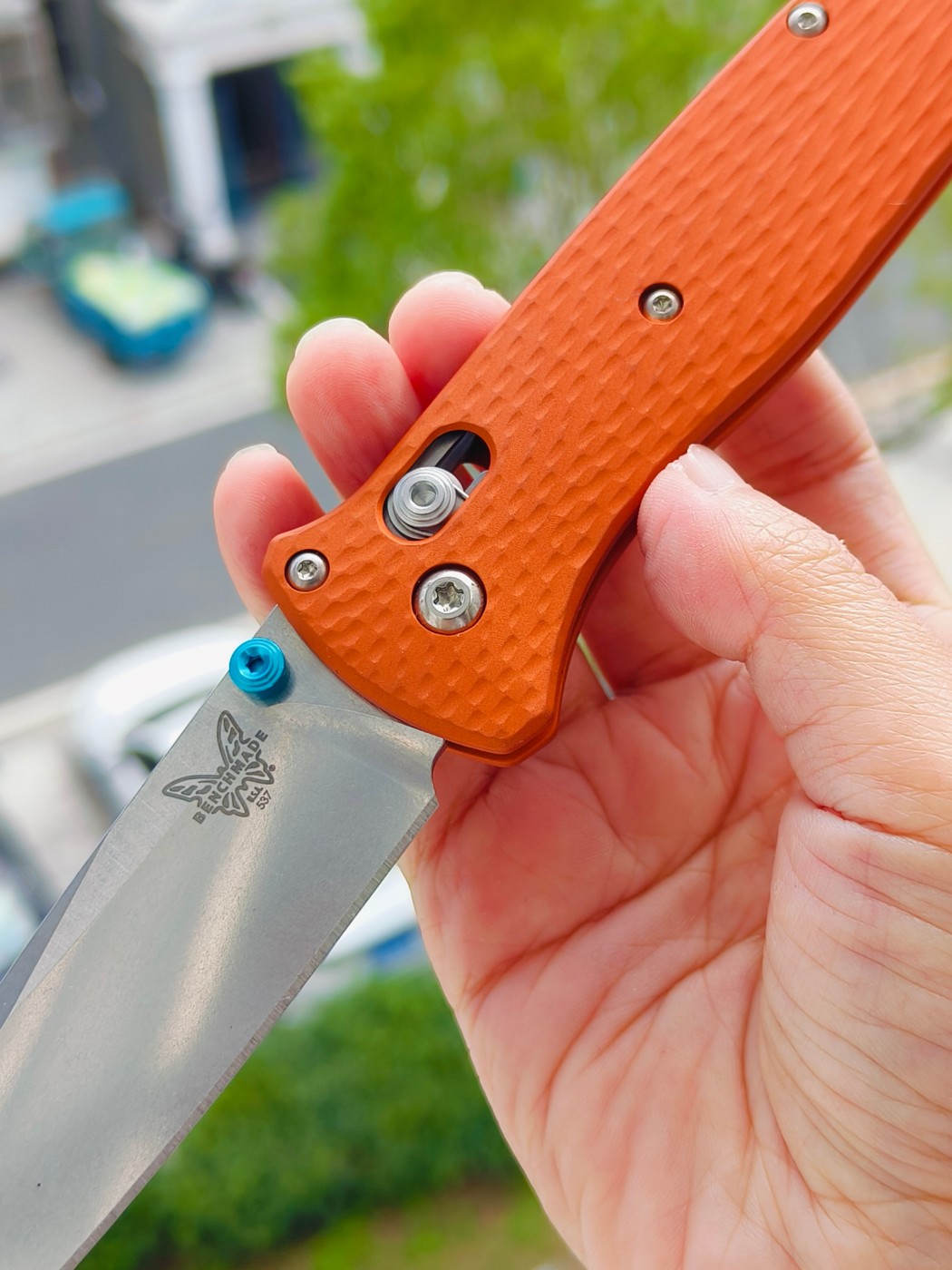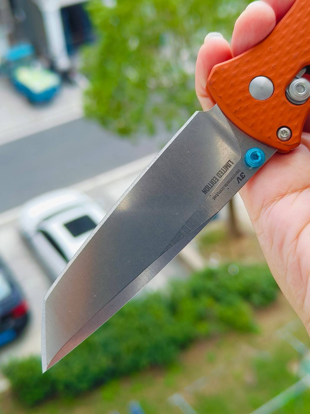 与传统Bugout型号的滴尖刀片不同,537 的刀片模仿了日本轮廓的 tanto,而不是Benchmade在 Griptillian、AFO II 和 Barrage 等型号上使用的 tanto,这些型号具有直腹和清晰的主斜面。这种设计受到希望增强刀片尖端强度同时保持卓越切片性能的影响。