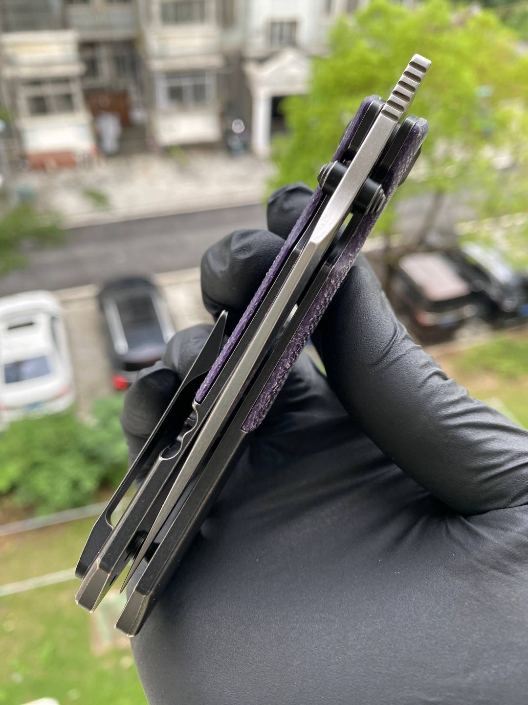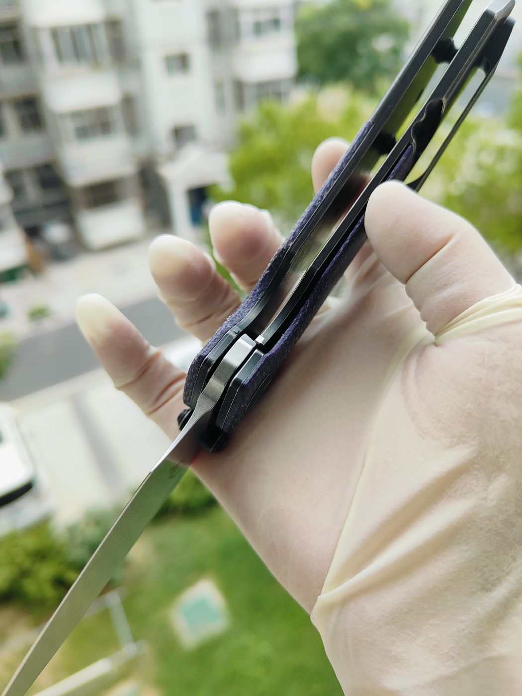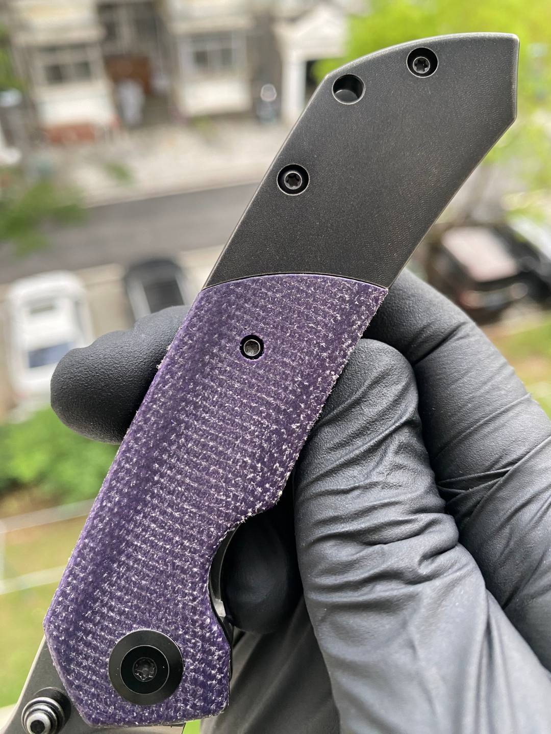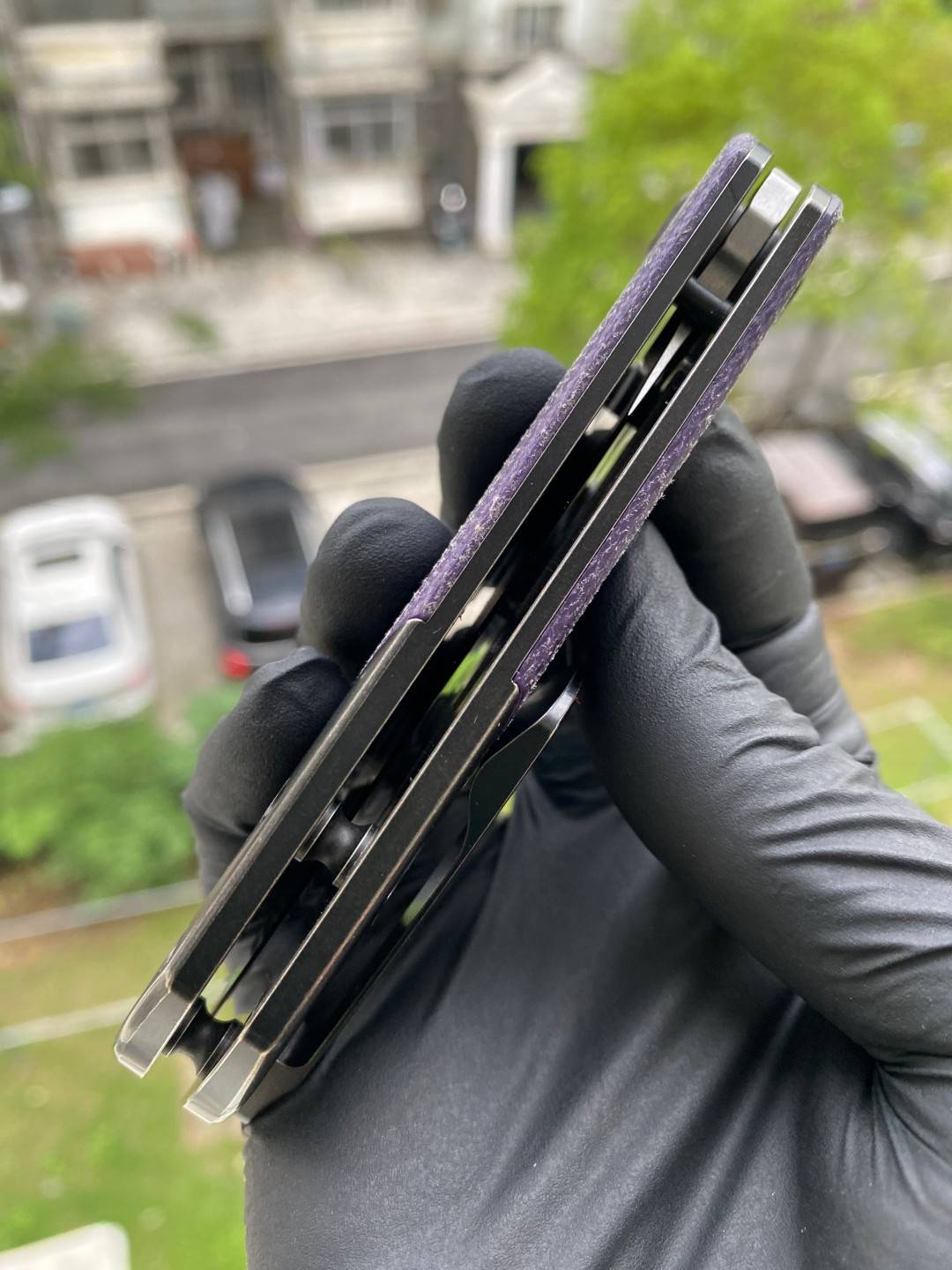 ✔ 黑色钛金 + 紫色米卡塔手柄,抓握表面光滑,放在口袋或手中都很舒适。