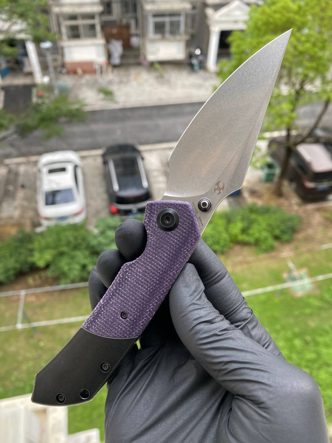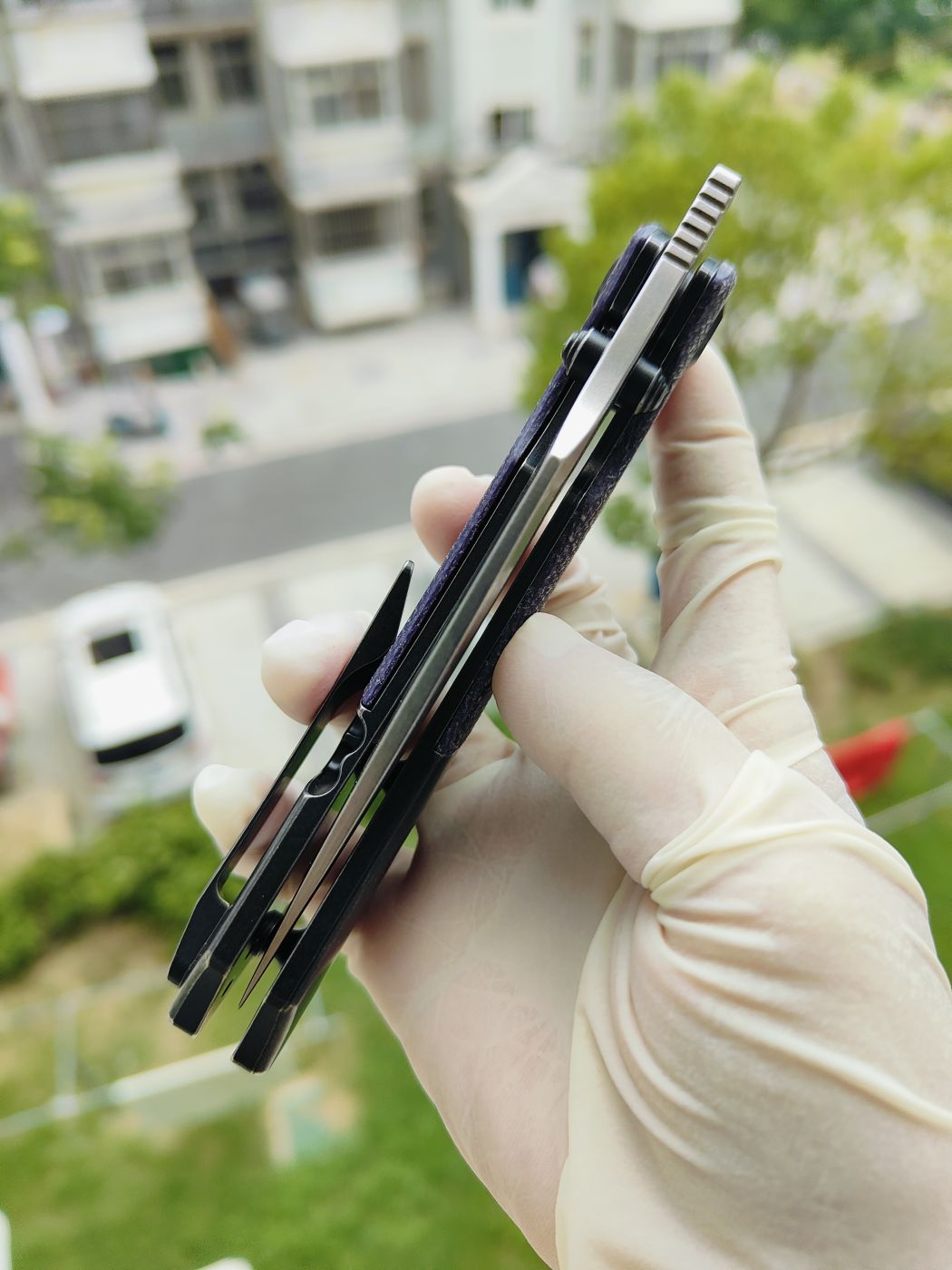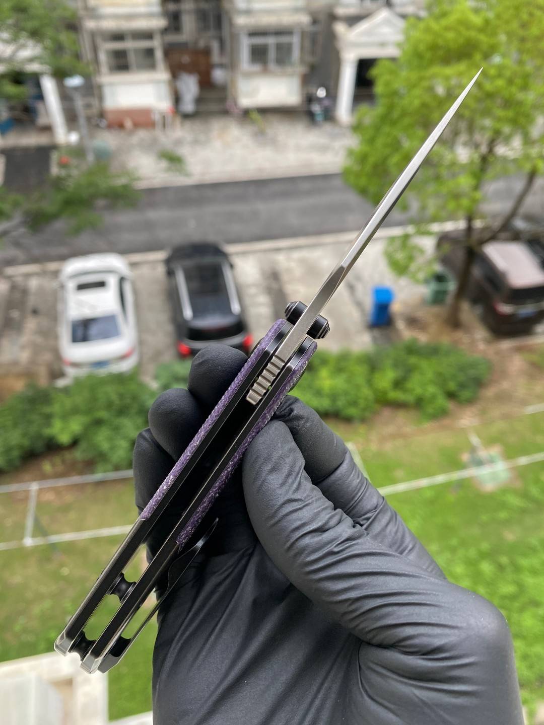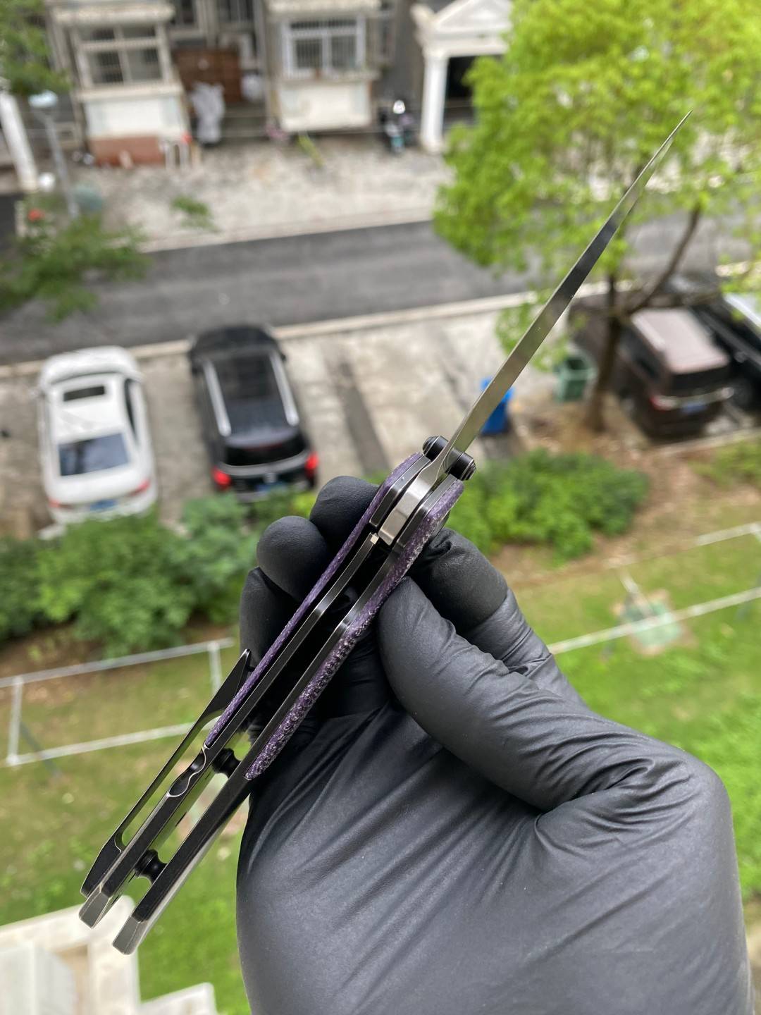 ✔ 黑色钛金 + 紫色米卡塔手柄,抓握表面光滑,放在口袋或手中都很舒适。