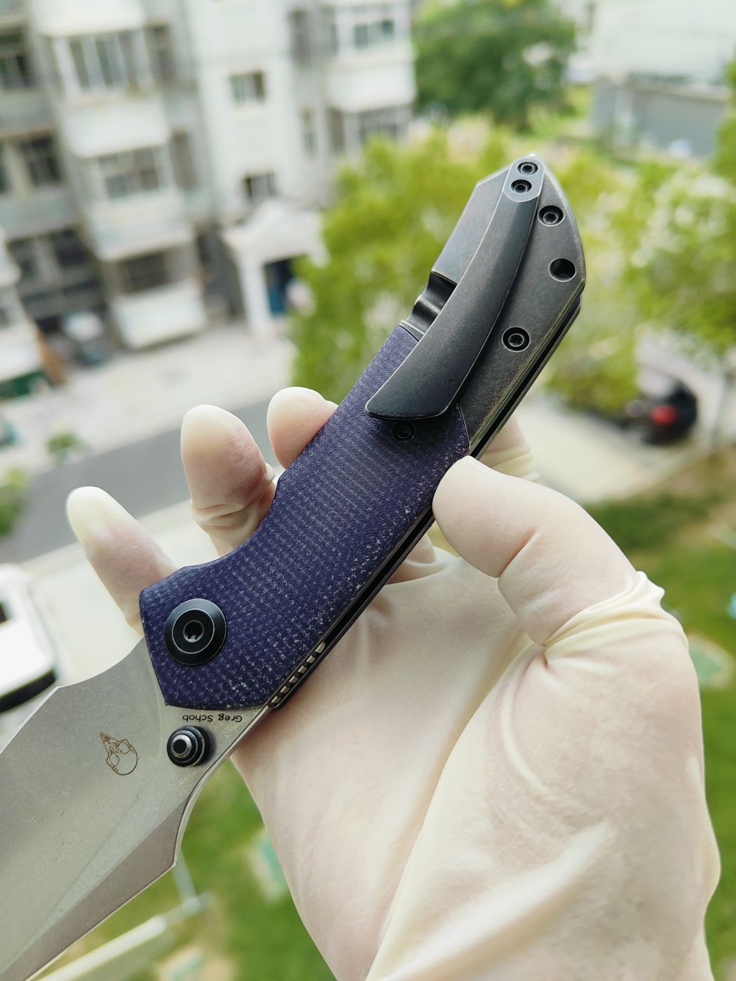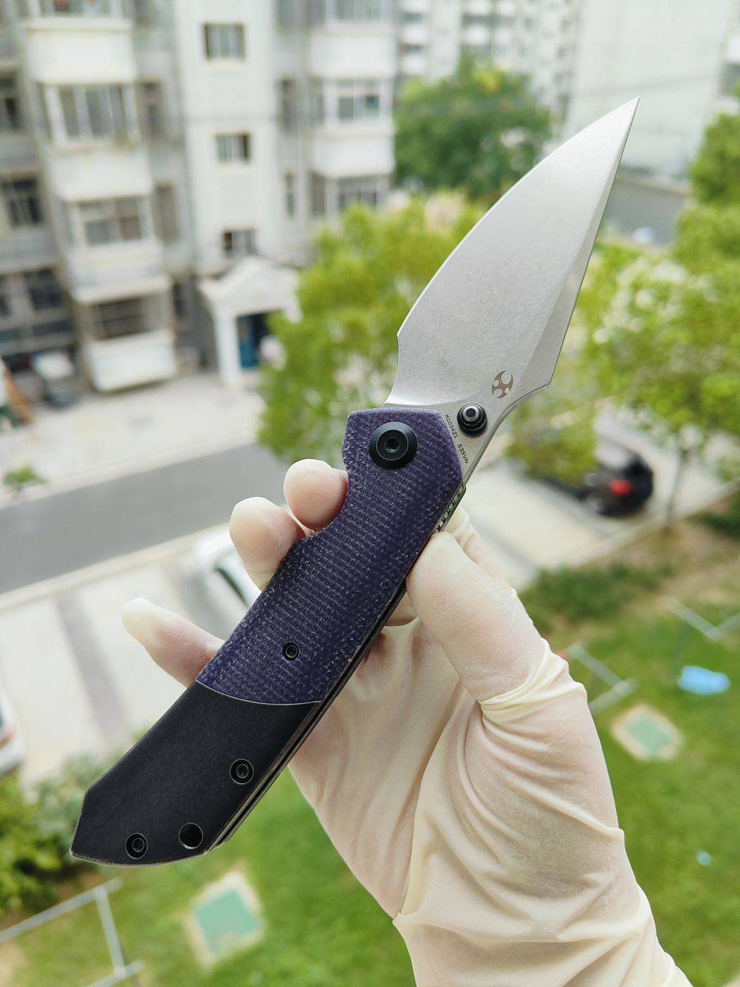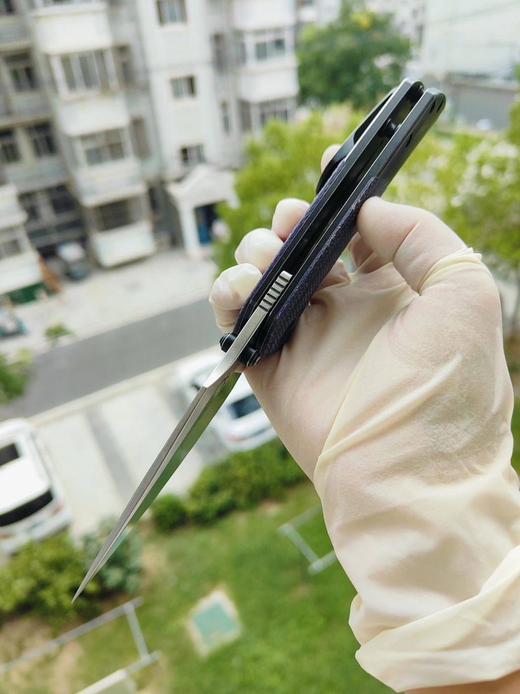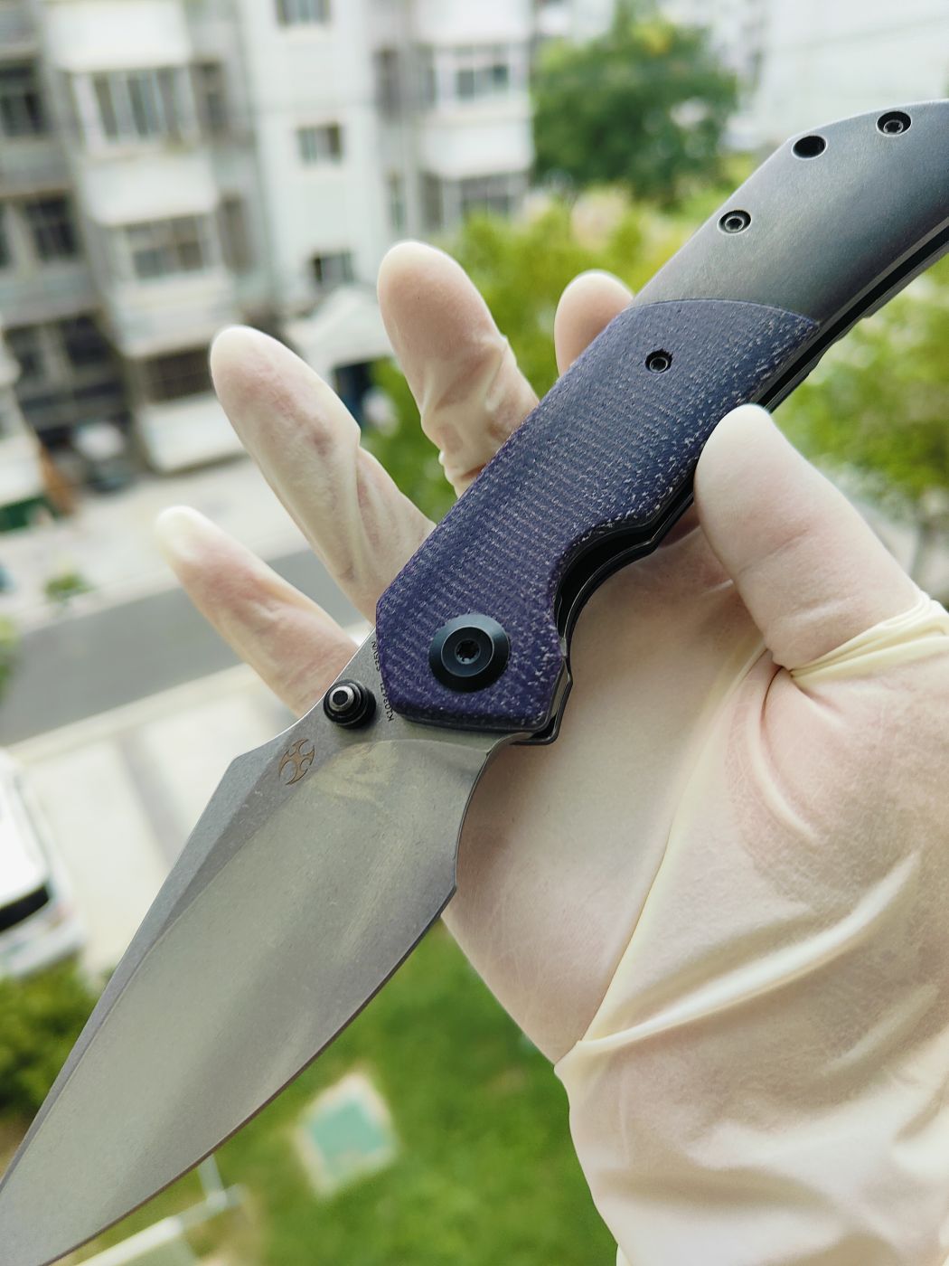 ✔ 黑色钛金 + 紫色米卡塔手柄,抓握表面光滑,放在口袋或手中都很舒适。