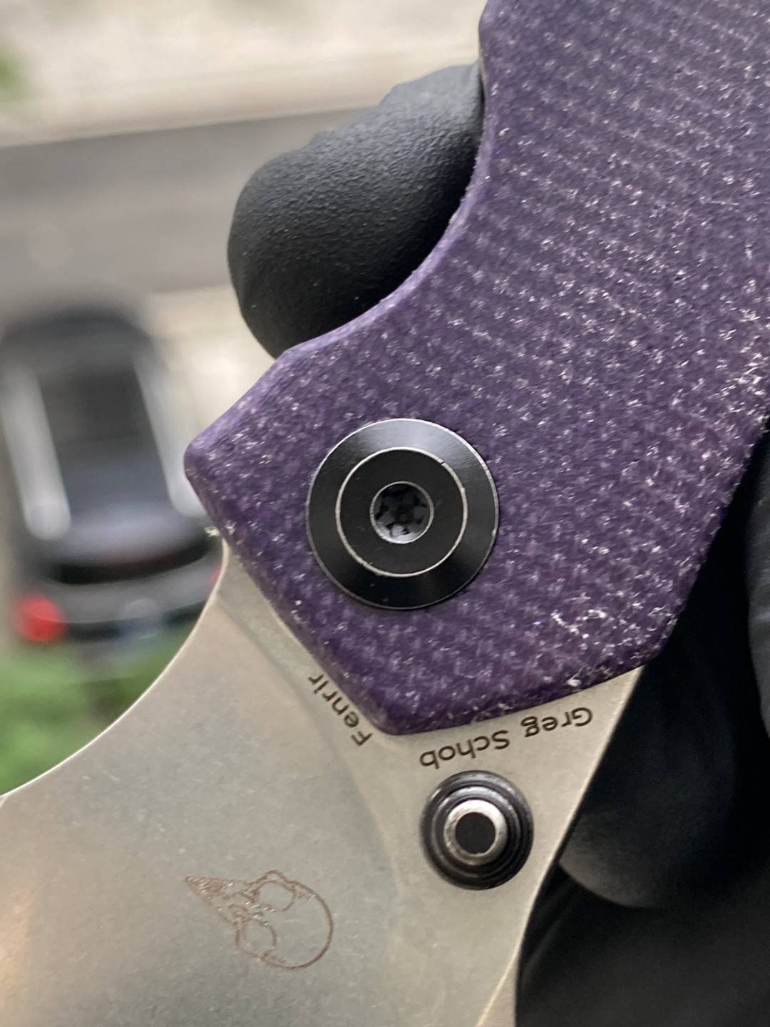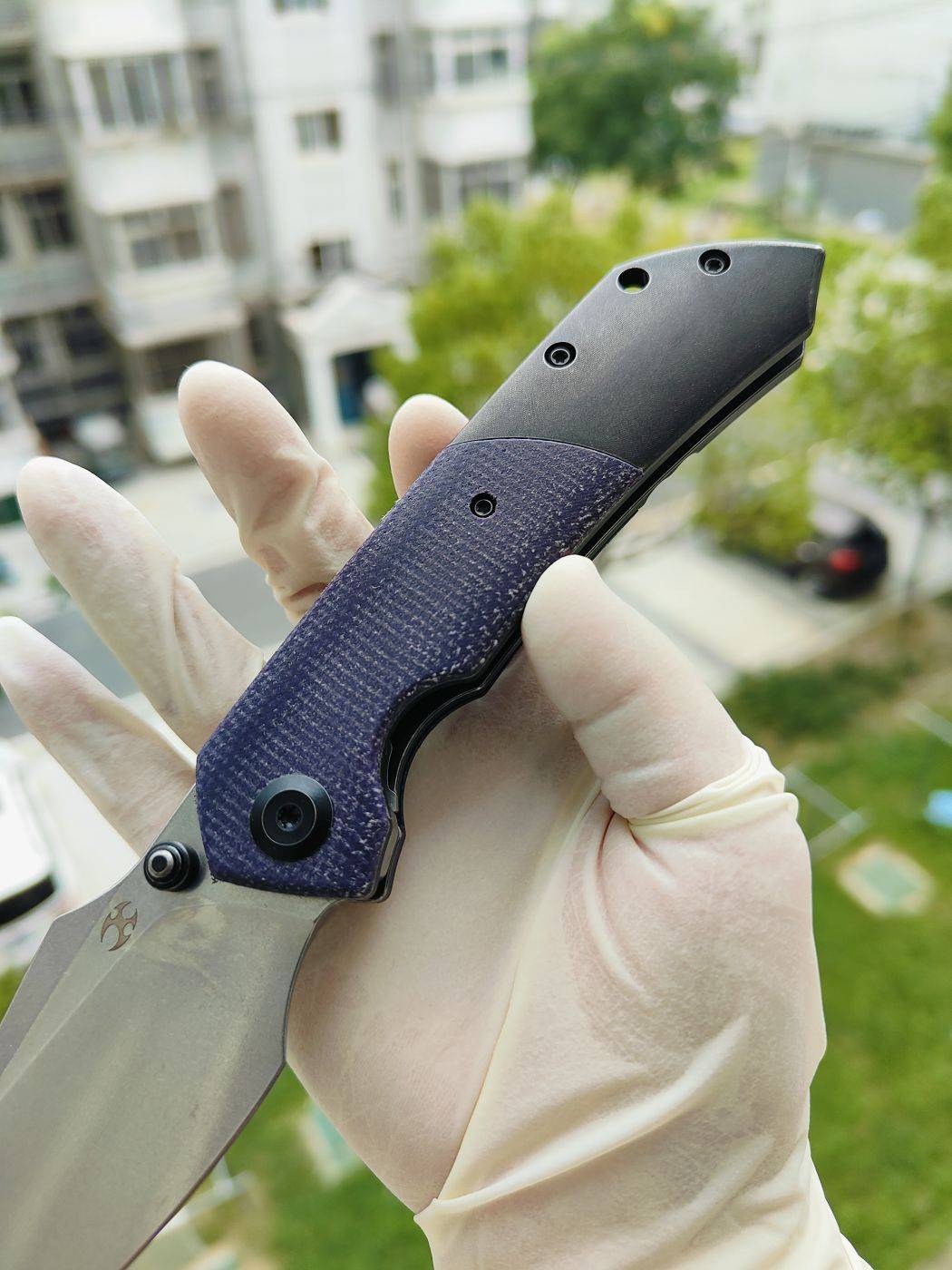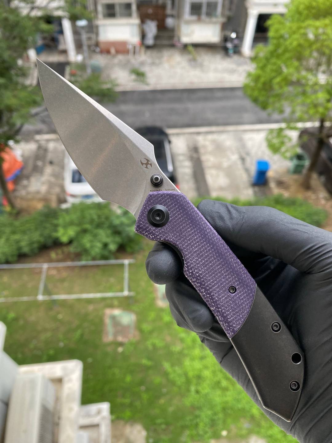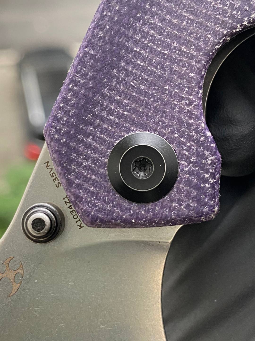 ✔ 黑色钛金 + 紫色米卡塔手柄,抓握表面光滑,放在口袋或手中都很舒适。