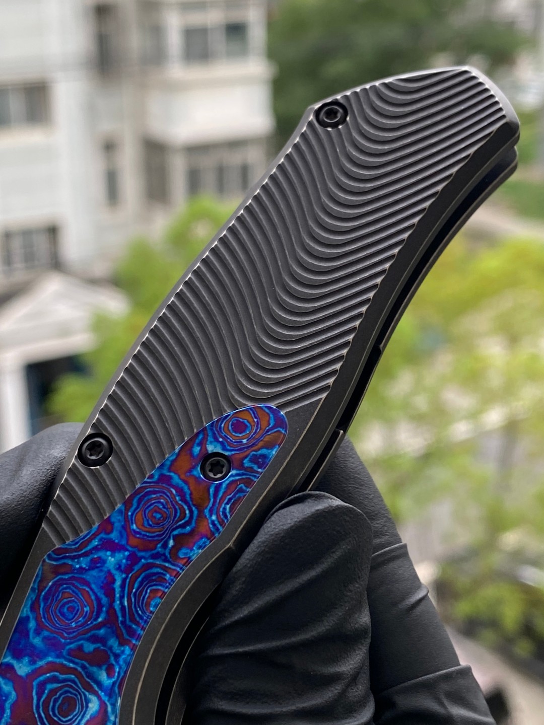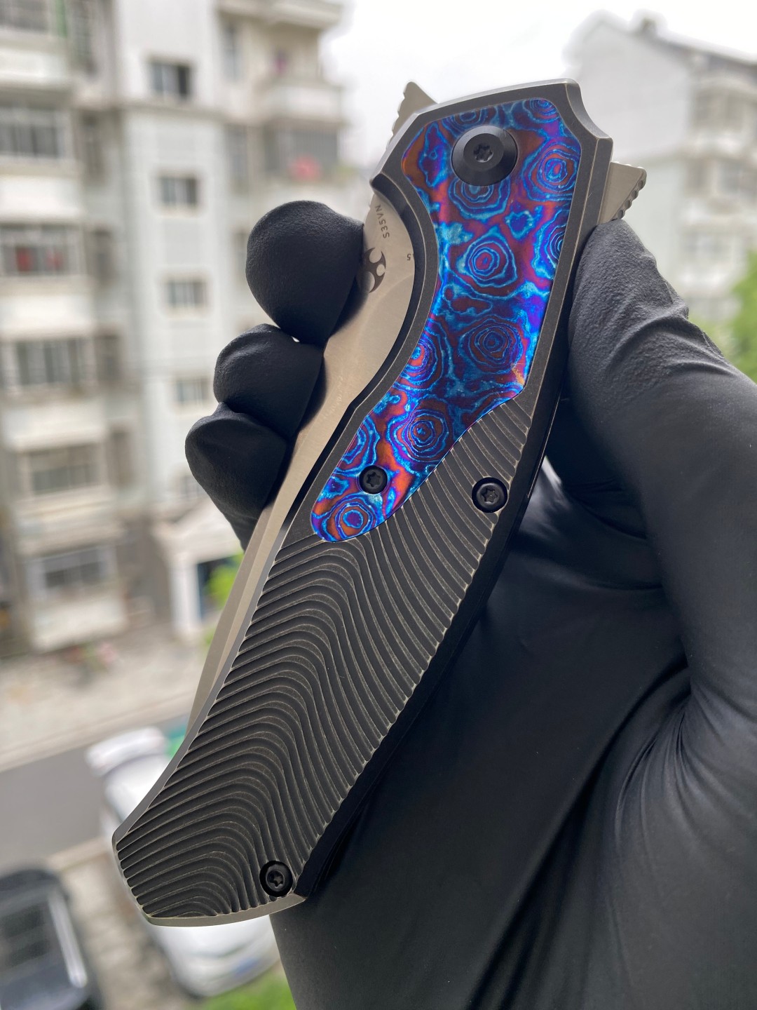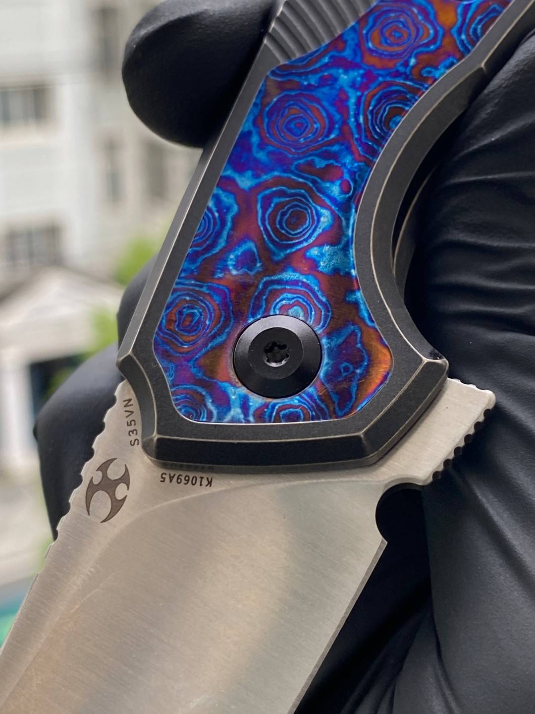 Kansept CPM-S35VN钢 钛柄镶嵌钛马 K1069A5 黑色 2100