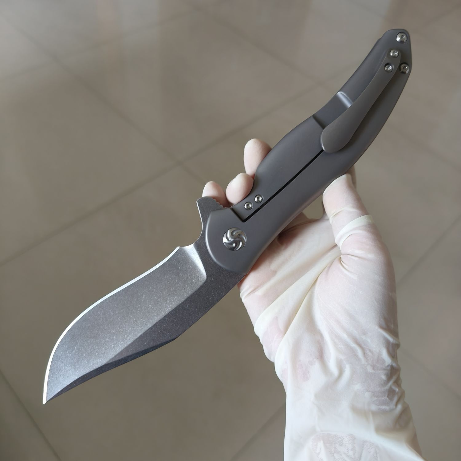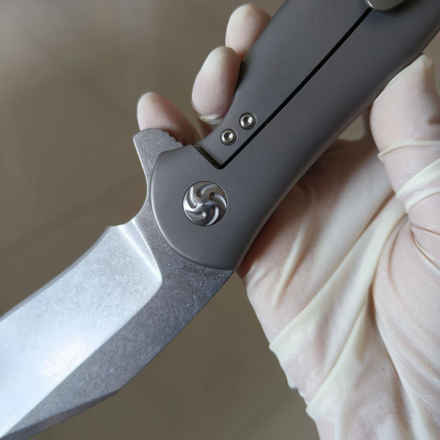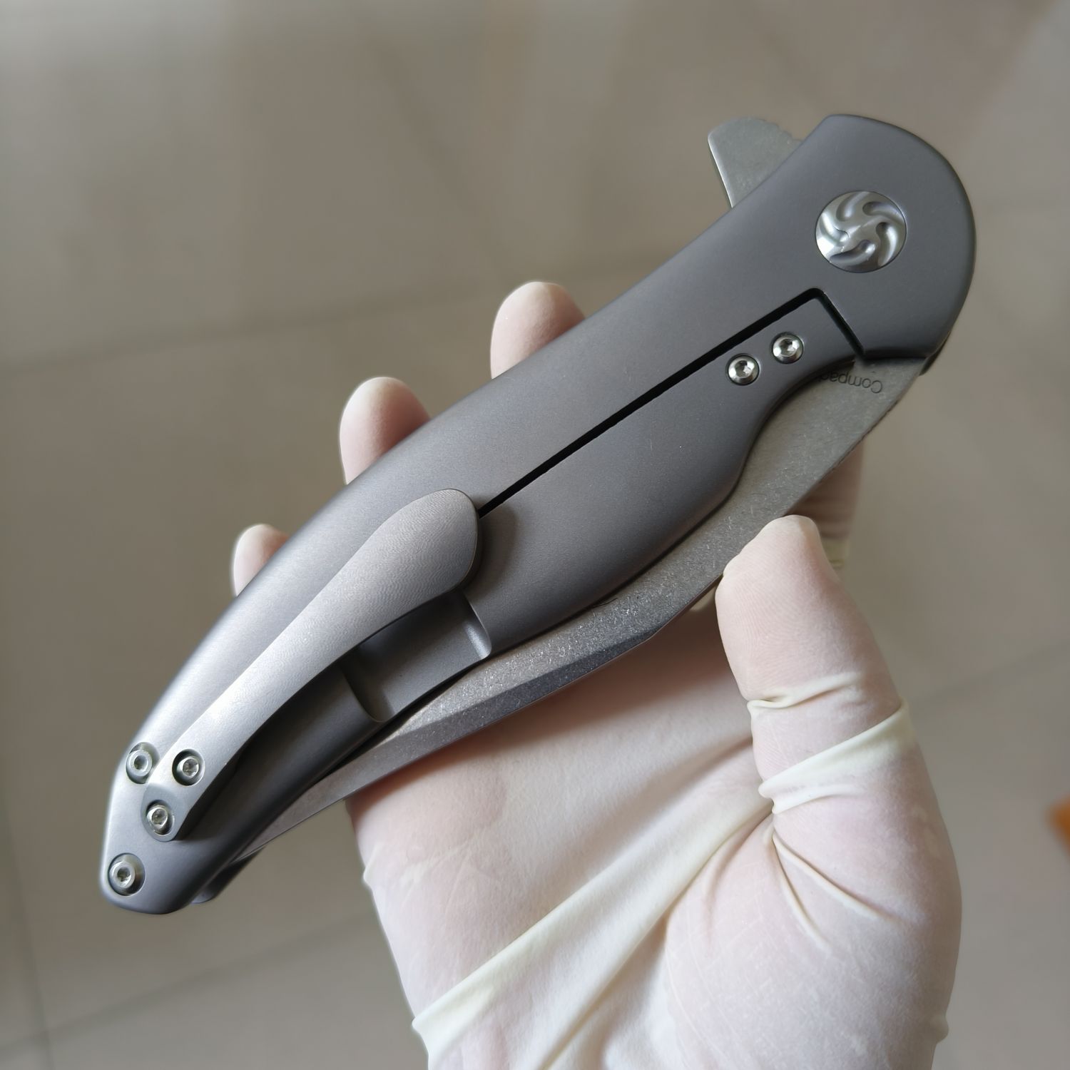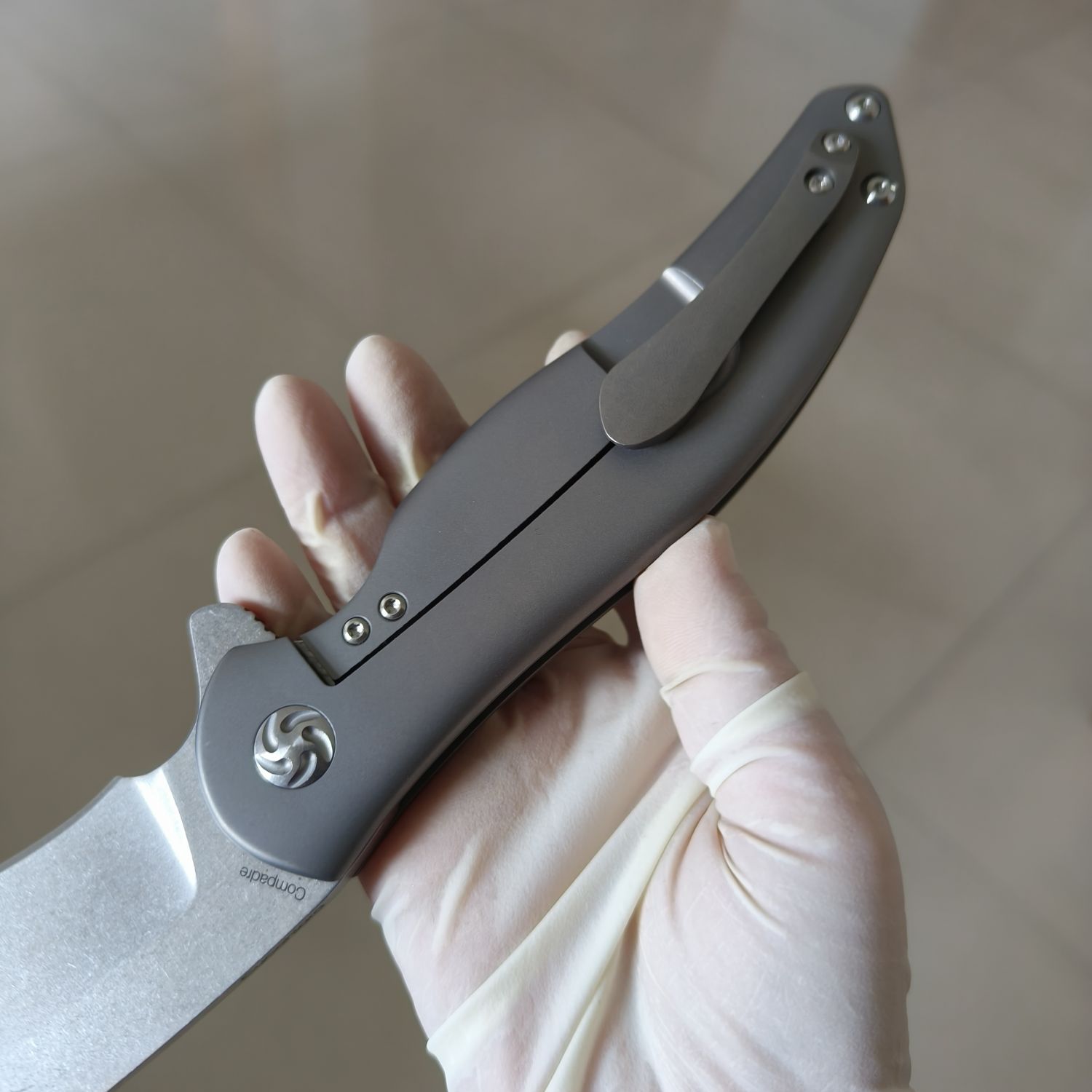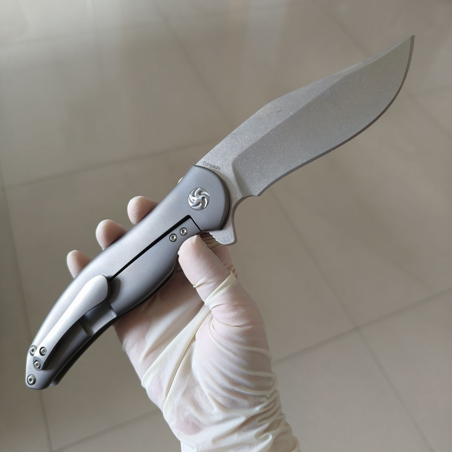 Kizer Cutlery的 Ki5465A1 Compadre 翻转刀是Kizer和 Cucchiara Custom Knives 的定制刀具制造商 Matt Cucchiara 的合作项目。Compadre 是您身边的忠实朋友,随时准备帮助您度过所有烦恼,尽情享受美好时光!尽管尺寸很大,但 Compadre 始终轻巧舒适。它采用 4 英寸石洗 CPM-S35VN 刀片,具有自然的反曲形状和指槽。与所有Kizer刀具一样,轴承枢轴系统可实现平滑的刀片打开。哑光银色钛合金手柄是我们握过的最舒适的手柄之一。每个表面和每个边缘都经过精心设计,以提供舒适感,并赋予刀具非常高档的外观和感觉。它具有可更换的钢制锁杆插件,可兼作过行程防止器,并配有可向上携带的铣削钛合金口袋夹。