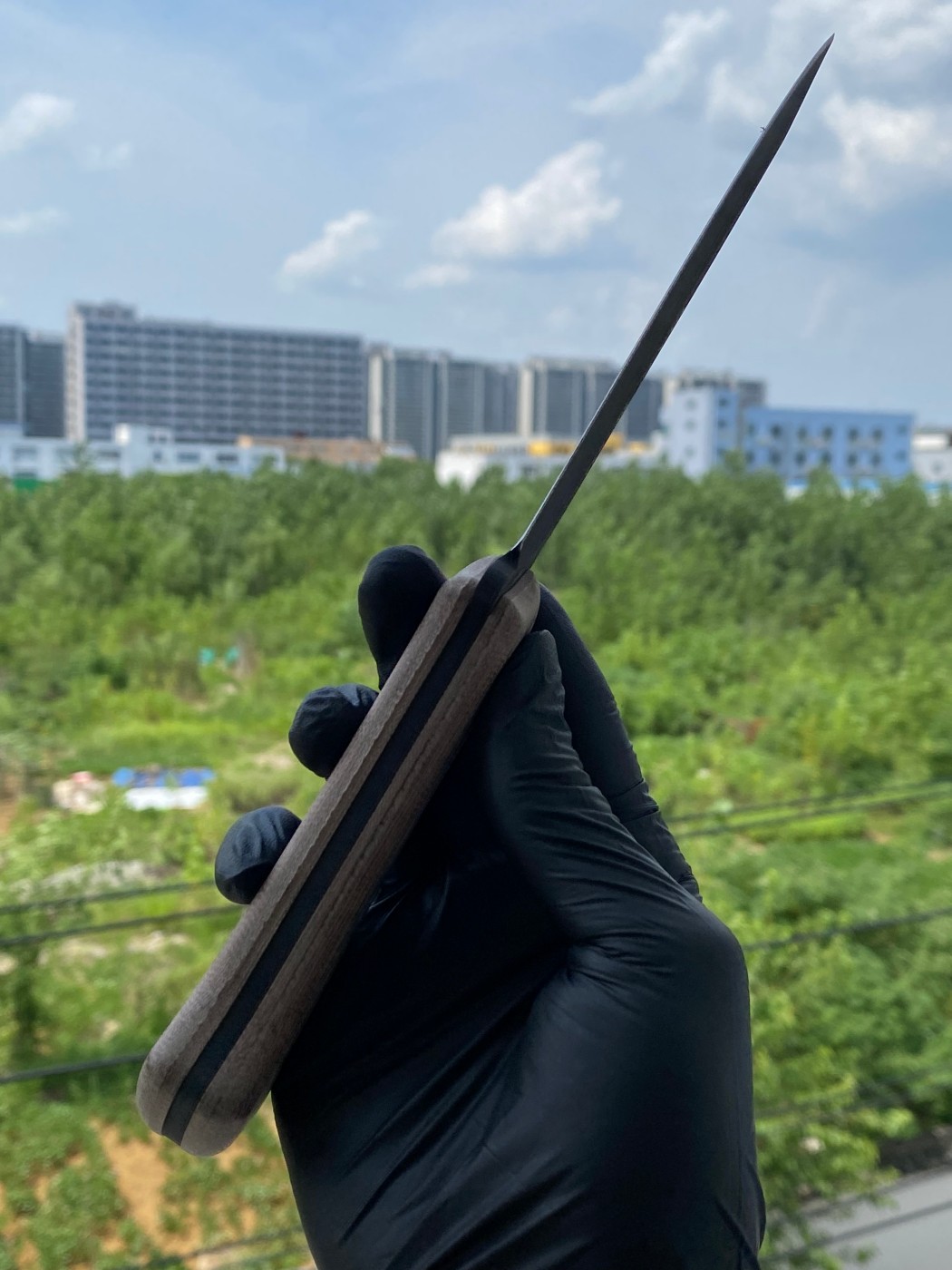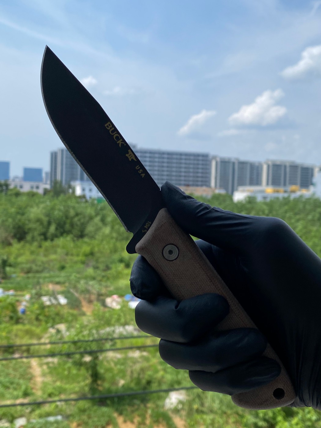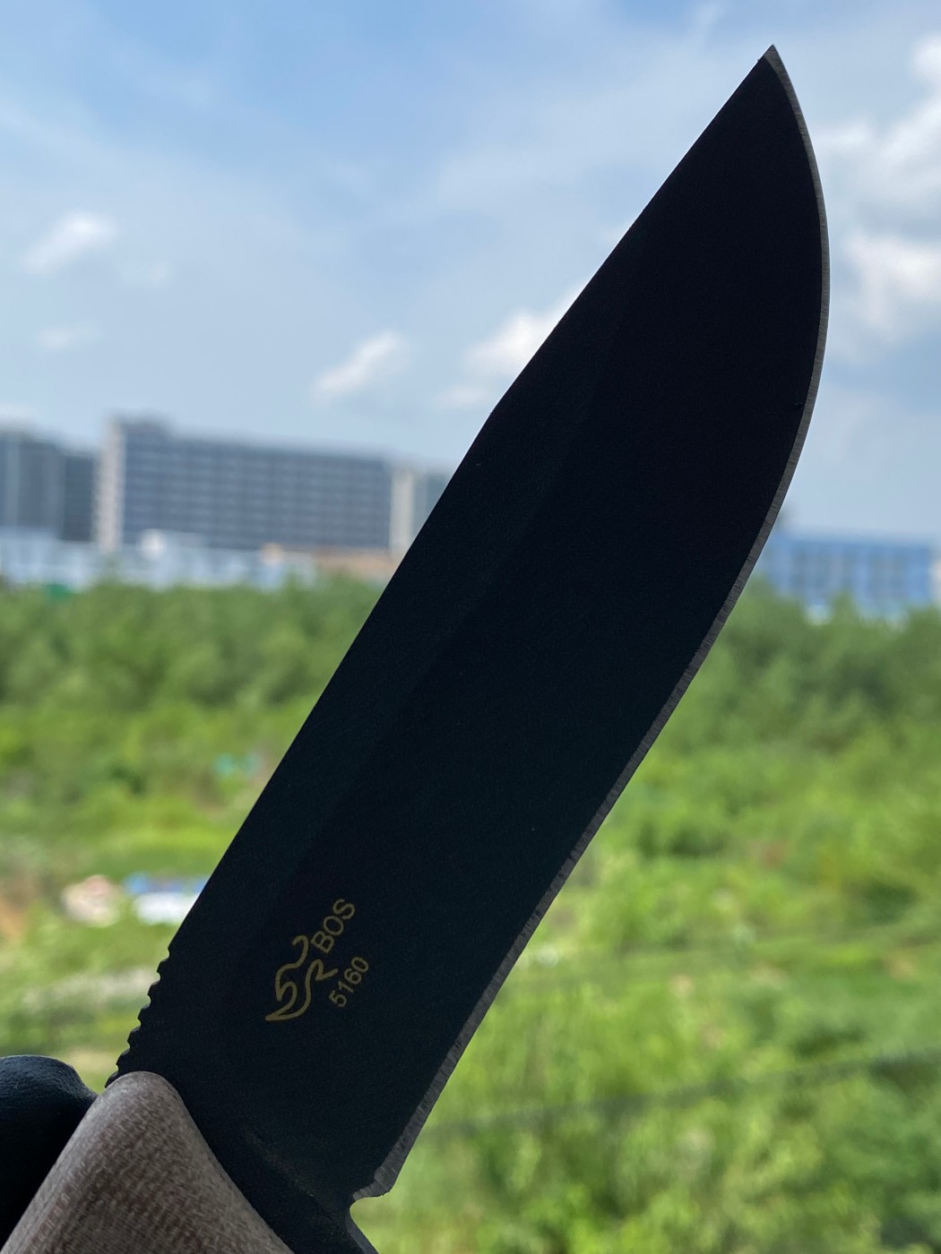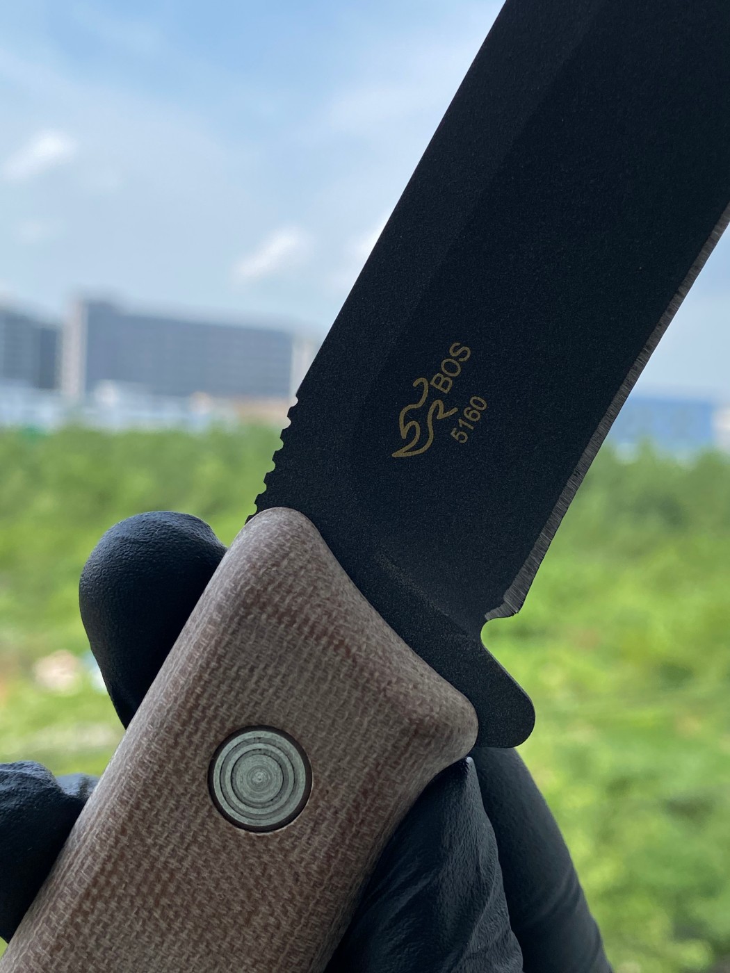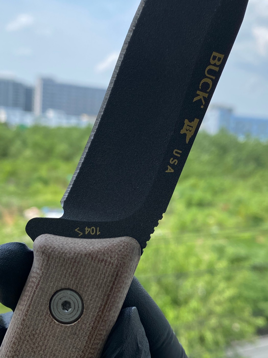 5160通常被称为弹簧钢,具有出色的抗冲击性能,使其不易碎裂,作为刀刃钢材极其耐用。巴克将5160淬火至洛氏硬度57-58,以最大化其性能。