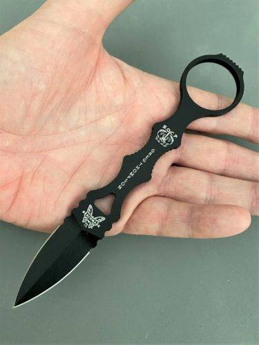 Benchmade借鉴了全尺寸 SOCP 的优点,再次与 Greg Thompson 联手,优化了 SOCP 平台最受欢迎的一些元素,推出了 173BK Mini SOCP,便于隐蔽携带。它是完美的自卫工具,用户无需放下刀,即可保持灵活性并操纵其他物体。专门的刀鞘设计还可以与装备和织带集成,同时保持低调。根据特种作战人员的反馈,他们更新了刀鞘的设计,增加了一些 J 形钩,以便更好地固定在 MOLLE 织带、口袋接缝和腰带上。它具有与全尺寸 SOCP 相同的手柄,但刀片较小。刀的总长度使其更容易隐藏,同时在自卫情况下保持其有效性。