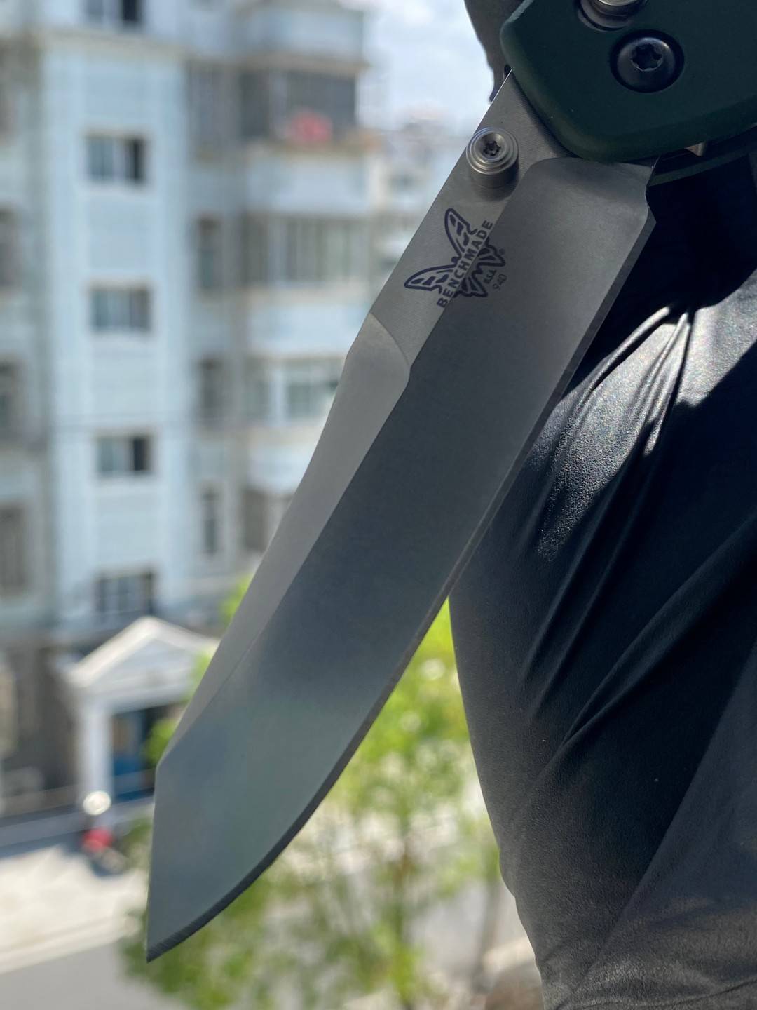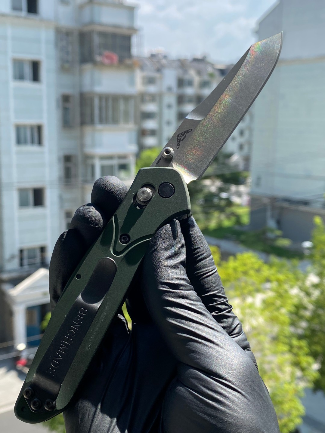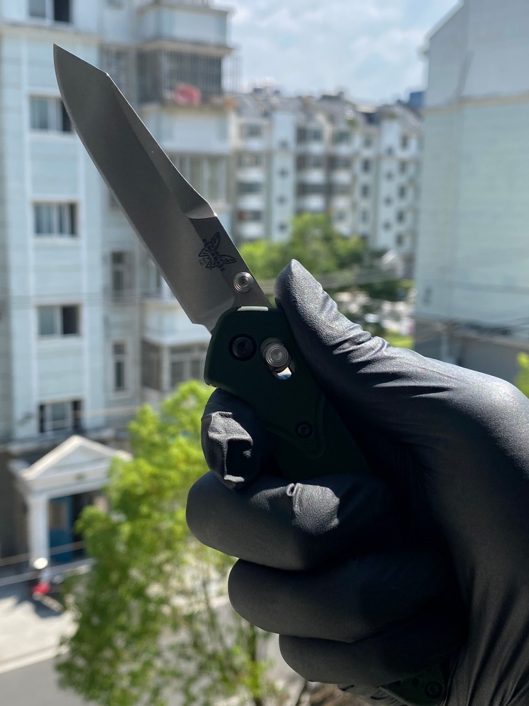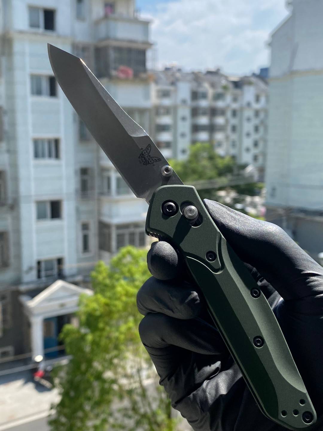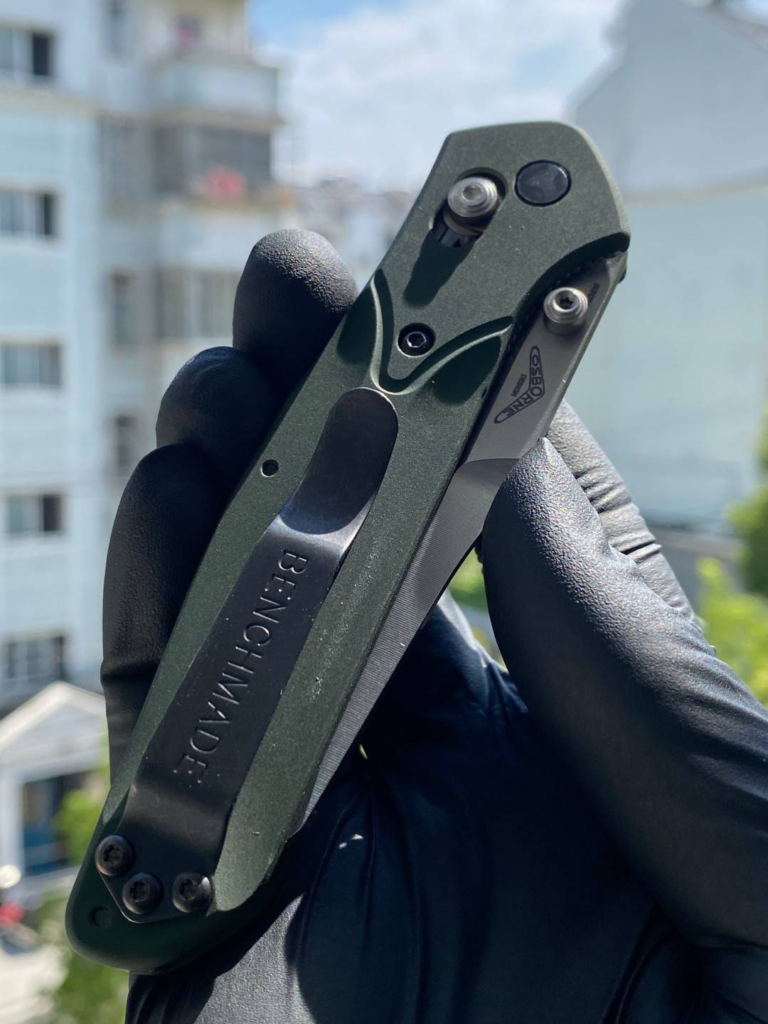 很酷。设计新颖,其外形体现了定制刀具制造商Warren Osborne认为功能和质量很重要的特质。940 型采用独特的 AXIS™ 锁定机制,功能流畅,与设计风格的纯粹性相得益彰。改良的反向 tanto 刀片形状由 S30V 不锈钢加工而成,具有双拇指螺柱开启器,可安全轻松地进行双手操作。手柄设计纤细,略有弯曲,并有凹陷轮廓,可确保握持稳定性。手柄鳞片由铝制成并经过深色阳极氧化处理,呈浓郁的绿色,由彩色阳极氧化钛背衬衬垫点缀。衬垫为 AXIS™ 锁提供可靠的功能,并具有微妙的手指踏板,可增加刀片控制。不锈钢携带夹可移动到手柄的任一侧,使 940 型成为 100% 完全双手通用的切割工具。现代设计、创新功能和更高标准的制造质量使新款 940 型具备卓越外形和功能所需的一切。