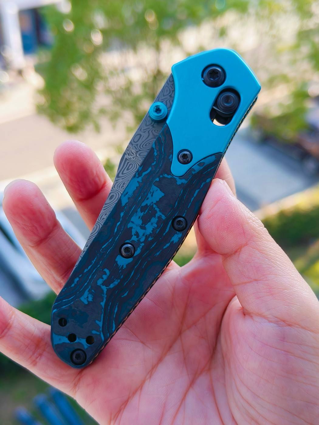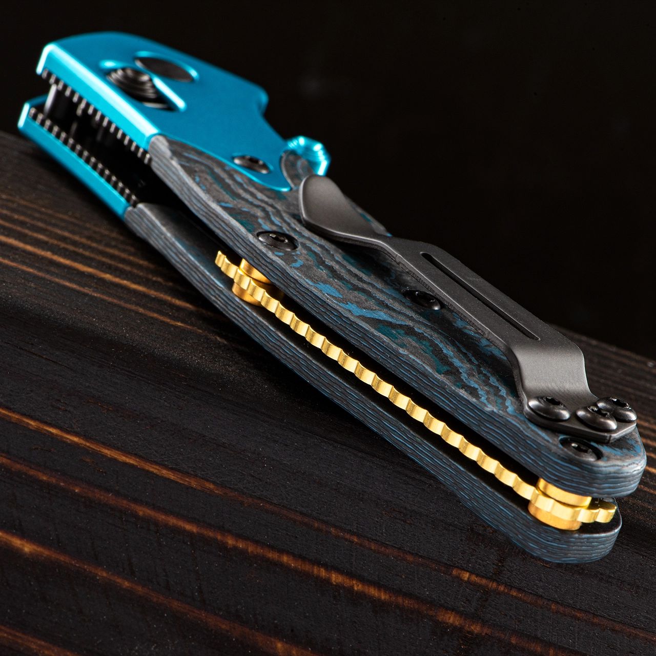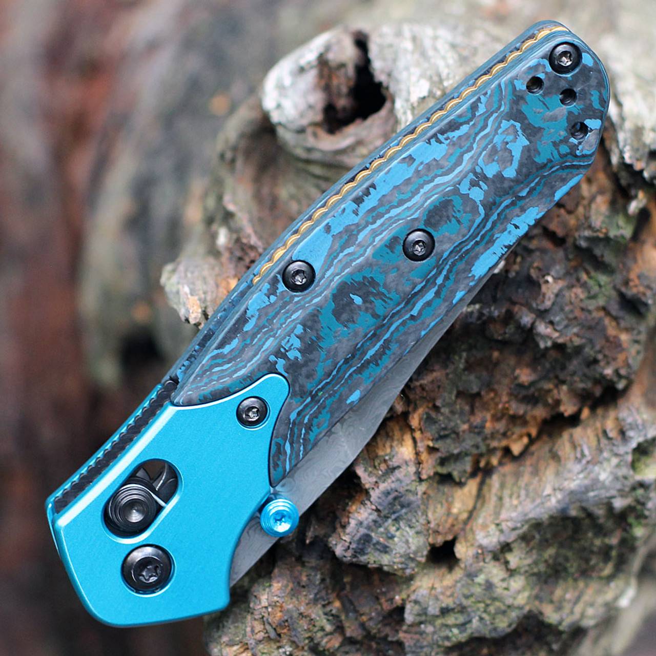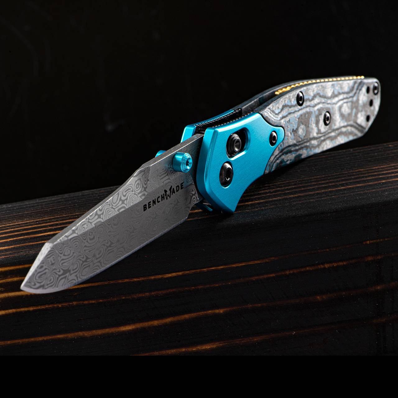 Osborne 系列是 Benchmade 最具代表性的设计之一,它的粉丝和收藏家会注意到经典的反向 tanto 刀刃形状,以及 Damasteel 刀刃上的全新图案。这种图案被称为 Aegir,灵感来自北欧神话,并从波罗的海中汲取设计灵感。新设计采用加厚碳纤维 Arctic Storm 手柄,带有流动的蓝色装饰和镀金浮动背衬,使这款限量版 Osborne 看起来冷酷无情,就像瑞典海岸的寒冷海水一样。