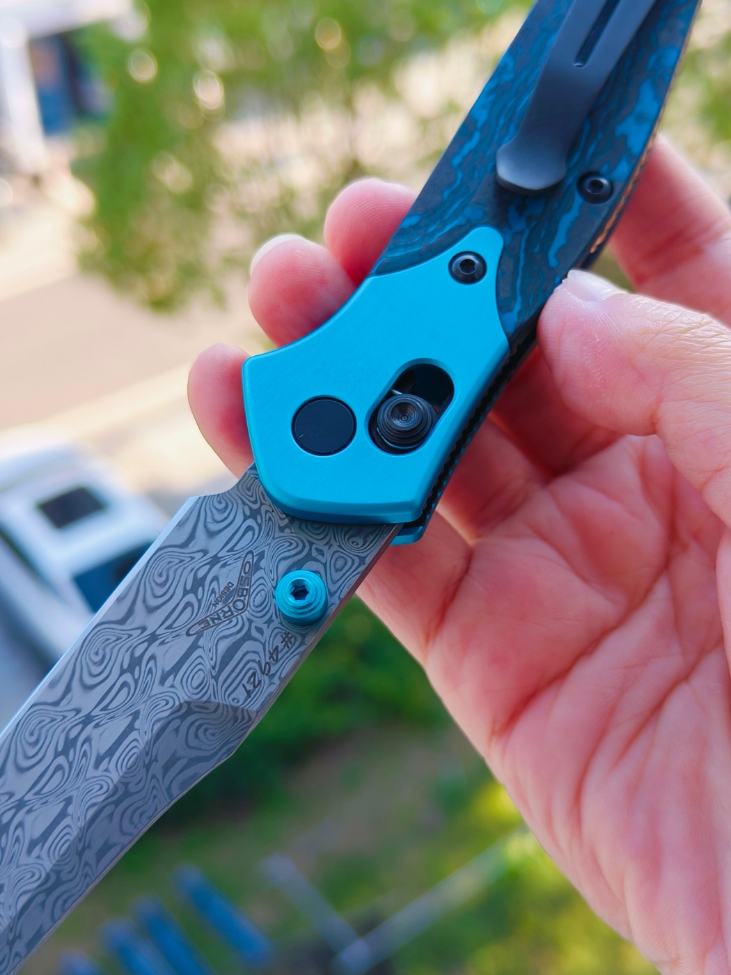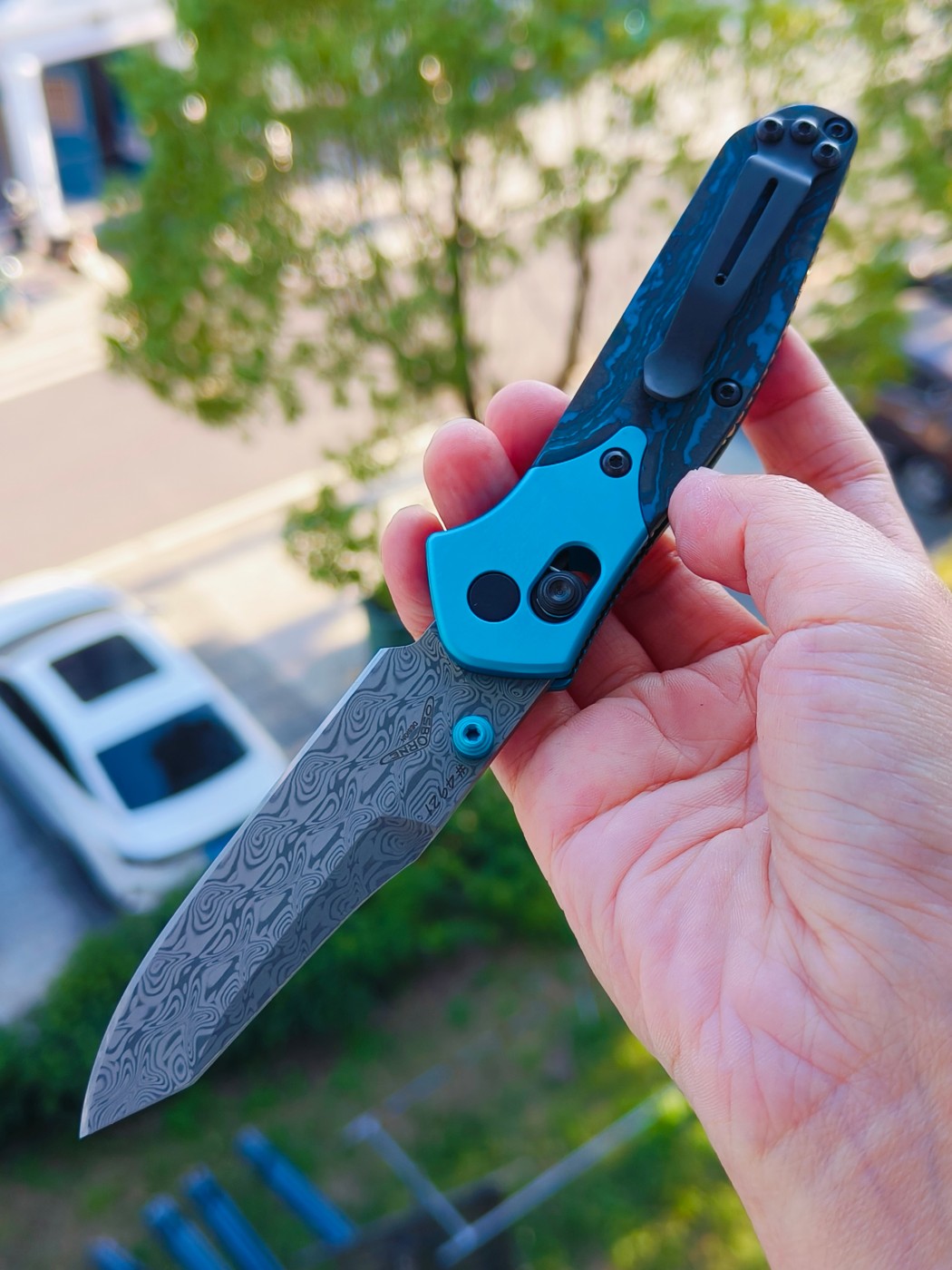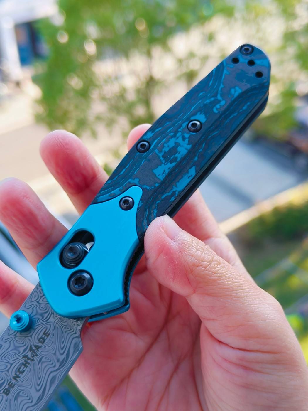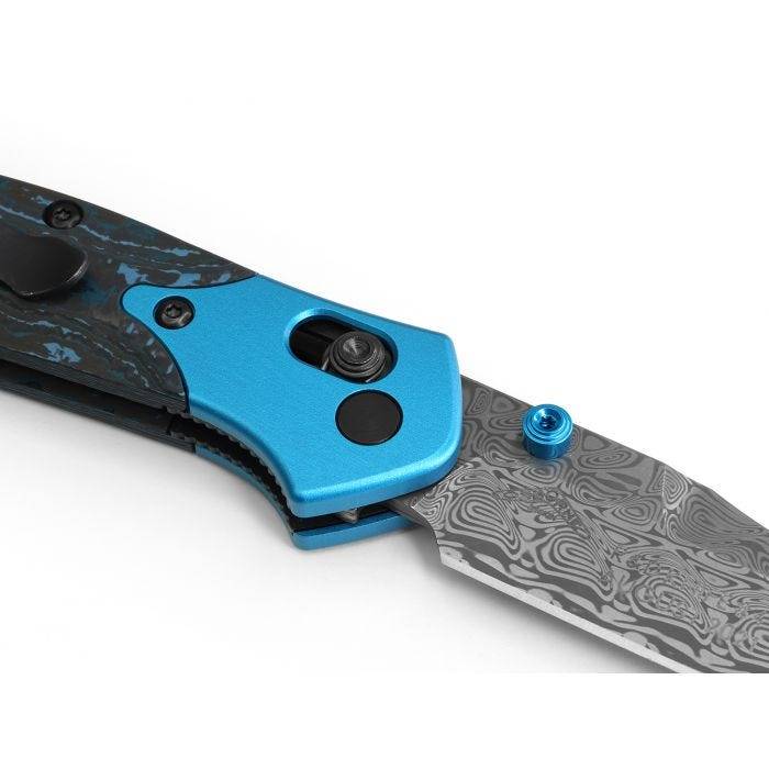 Osborne 系列是 Benchmade 最具代表性的设计之一,它的粉丝和收藏家会注意到经典的反向 tanto 刀刃形状,以及 Damasteel 刀刃上的全新图案。这种图案被称为 Aegir,灵感来自北欧神话,并从波罗的海中汲取设计灵感。新设计采用加厚碳纤维 Arctic Storm 手柄,带有流动的蓝色装饰和镀金浮动背衬,使这款限量版 Osborne 看起来冷酷无情,就像瑞典海岸的寒冷海水一样。