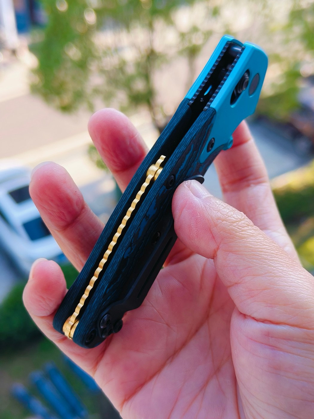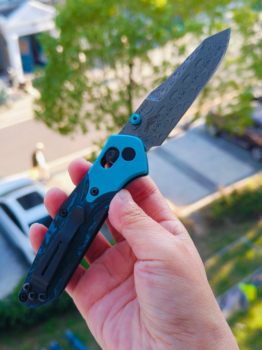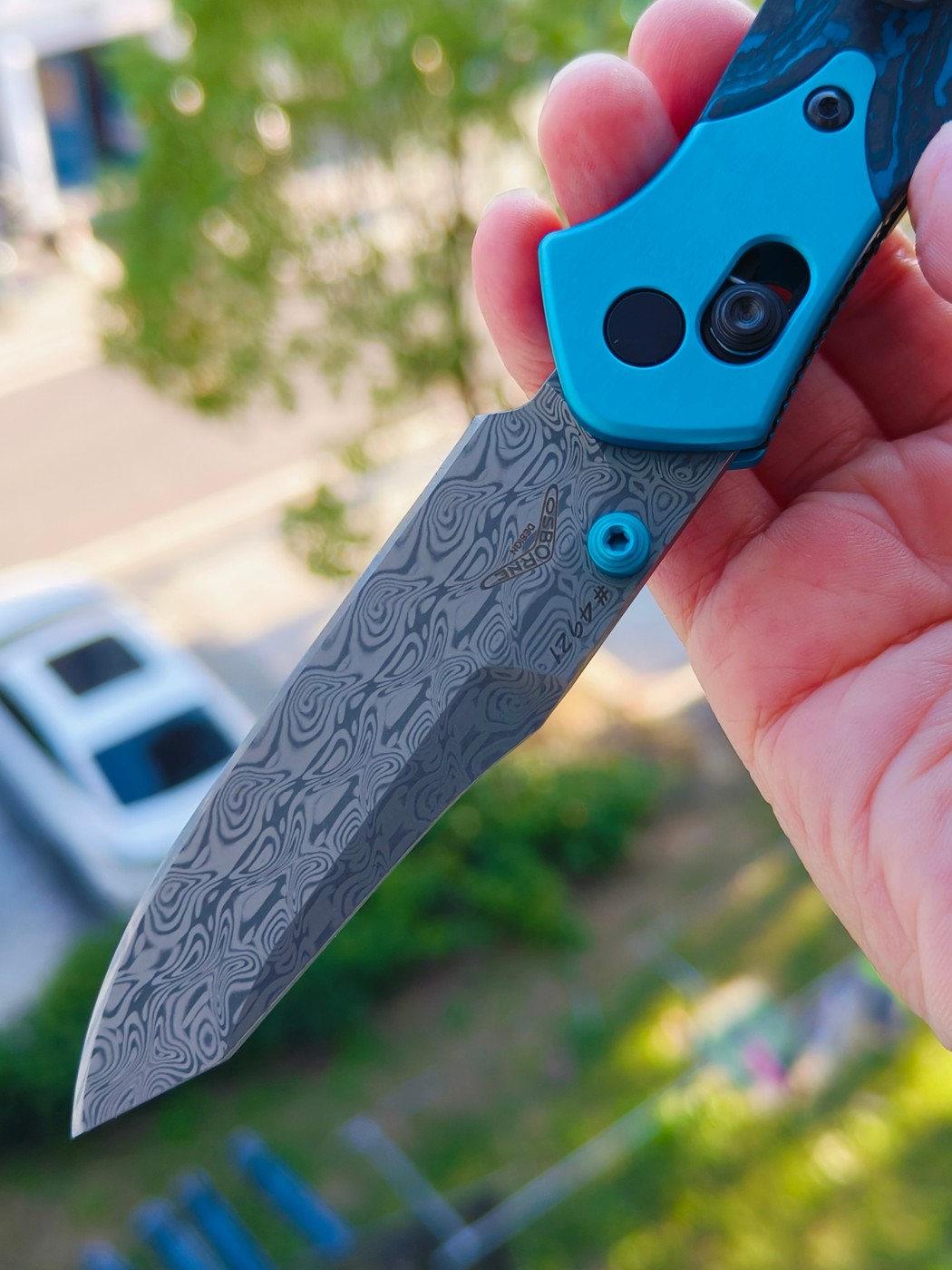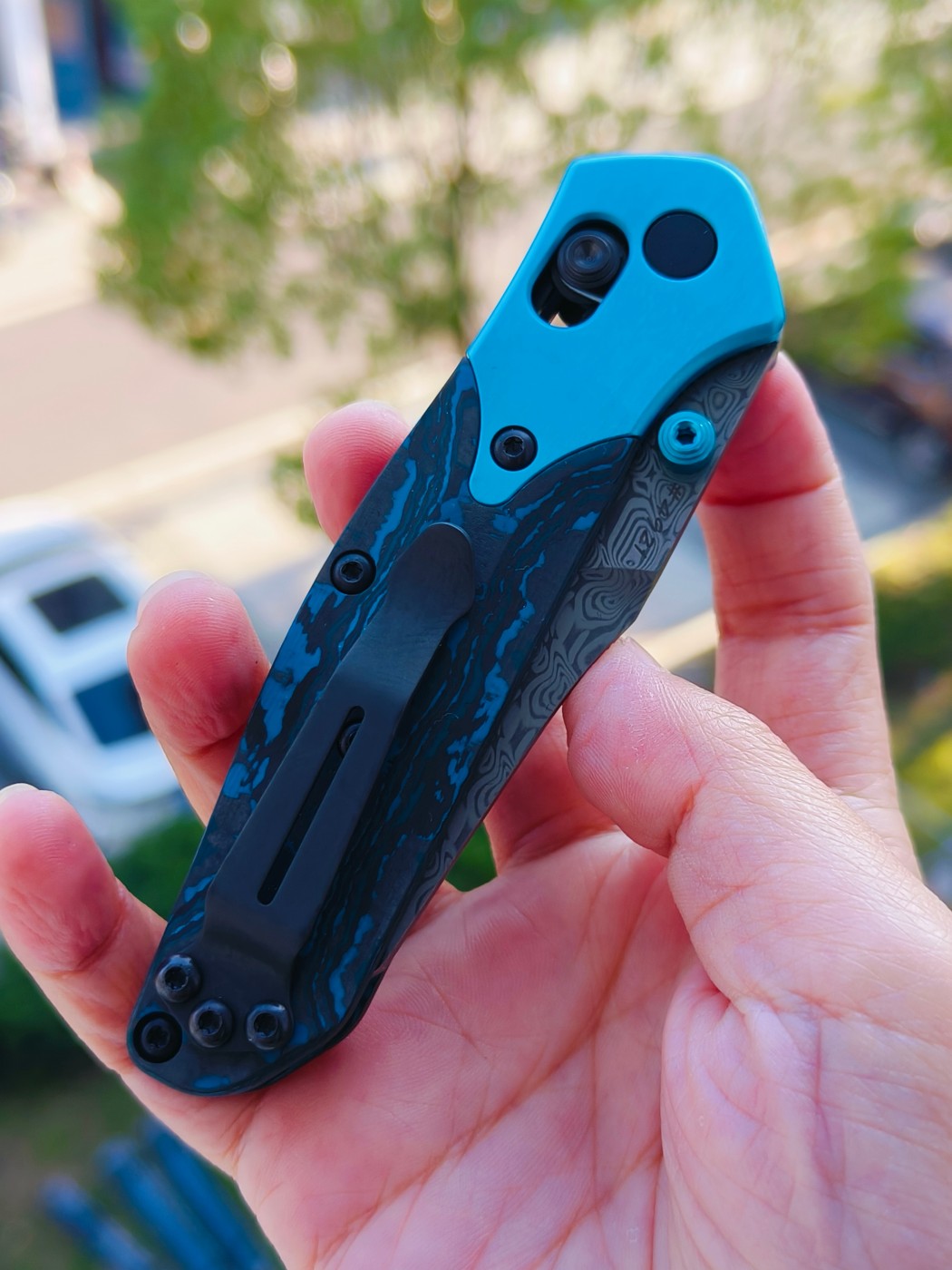 Osborne 系列是 Benchmade 最具代表性的设计之一,它的粉丝和收藏家会注意到经典的反向 tanto 刀刃形状,以及 Damasteel 刀刃上的全新图案。这种图案被称为 Aegir,灵感来自北欧神话,并从波罗的海中汲取设计灵感。新设计采用加厚碳纤维 Arctic Storm 手柄,带有流动的蓝色装饰和镀金浮动背衬,使这款限量版 Osborne 看起来冷酷无情,就像瑞典海岸的寒冷海水一样。