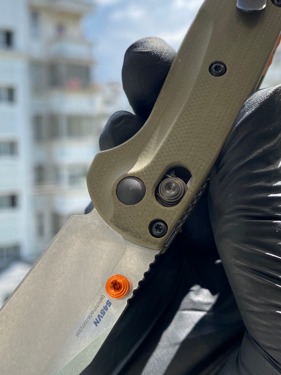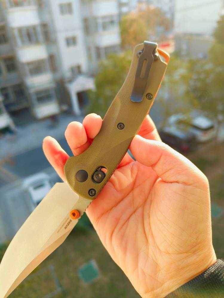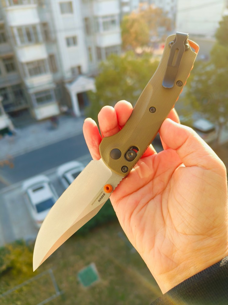 双手:是的 手柄材质:Grivory® 手柄颜色:OD绿色 挂绳孔:是的 刀片钢:S45VN耐磨不锈钢 (60-62HRC) 重量:1.68盎司 | 47.63克