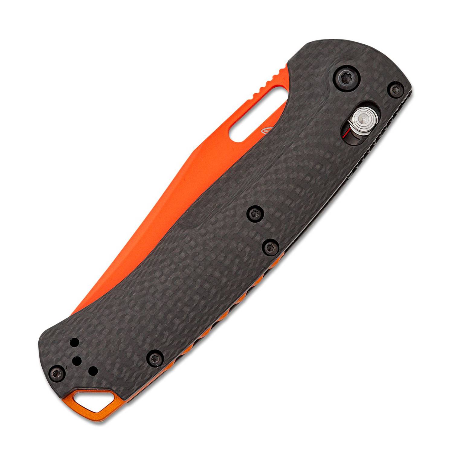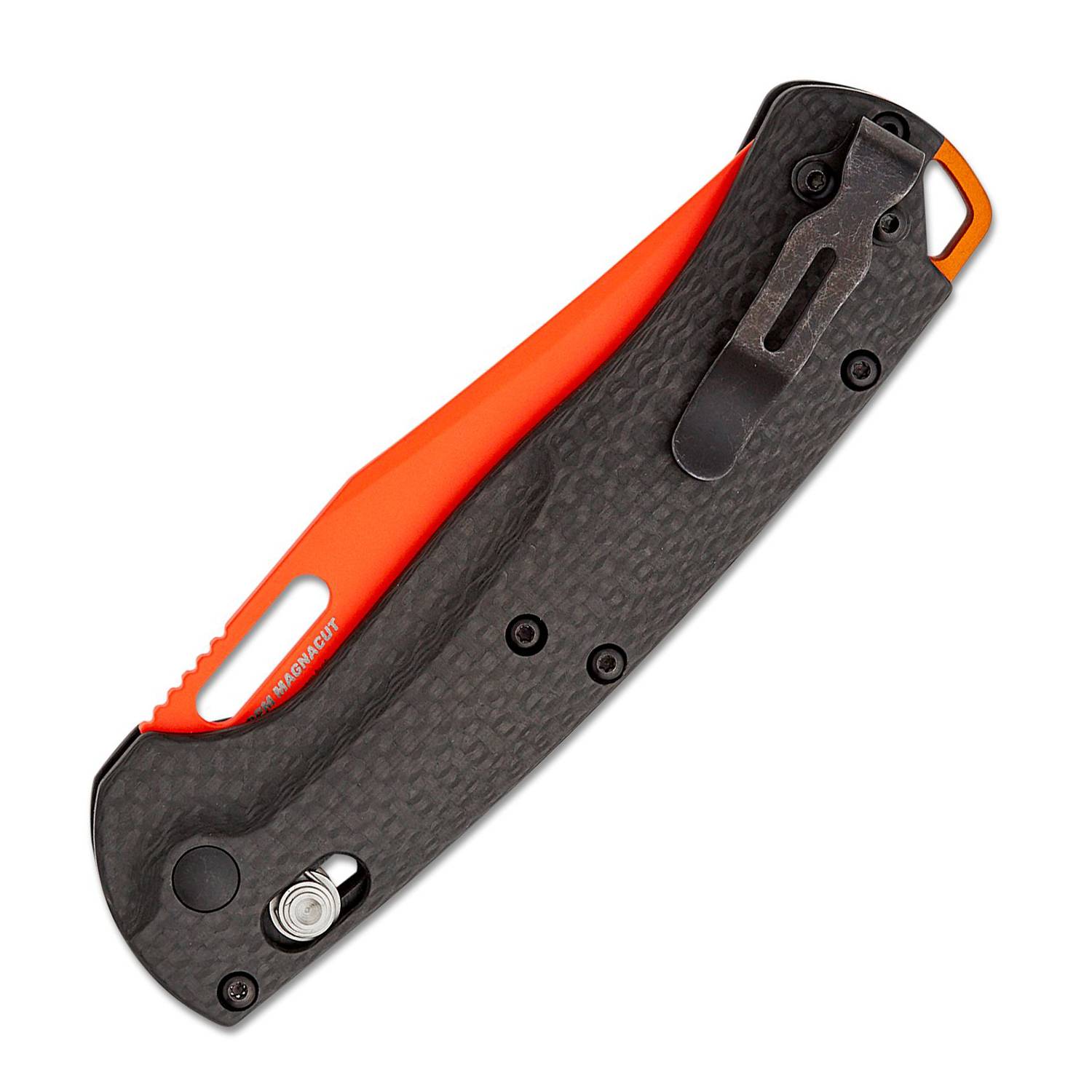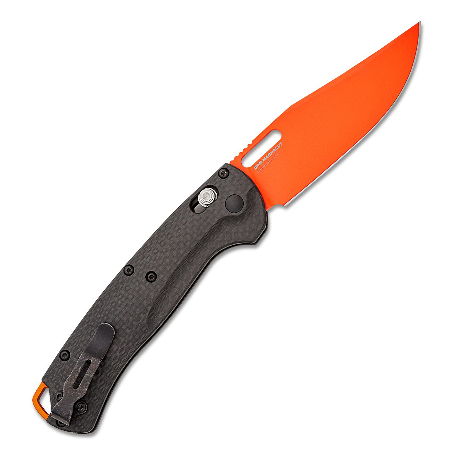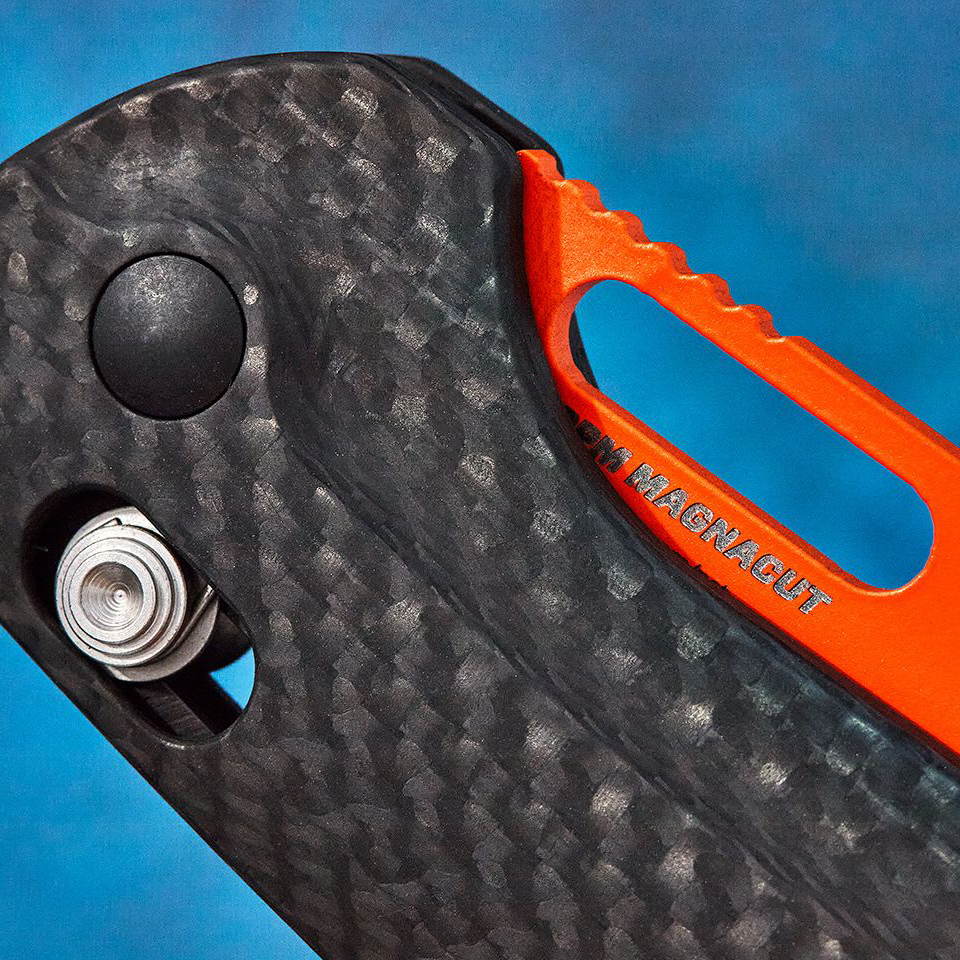 受极受欢迎的Bugout的启发,15535OR-01 Taggedout 是Benchmade的第一款采用 CPM- MagnaCut钢的刀具,融合了工具钢的高硬度、强度和韧性以及超不锈钢船用刀片的耐腐蚀性。这款 Taggedout 配备优质碳纤维手柄秤,以增加刚性和强度,并配有橙色阳极氧化挂绳背衬,可以处理最狂野的野外任务。