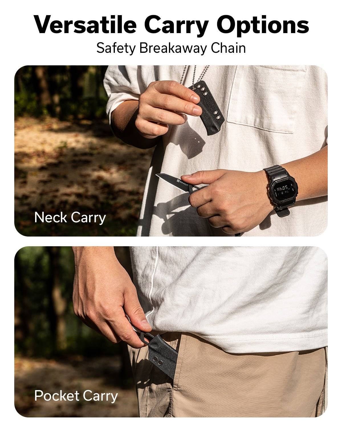 护套:黑色 Kydex 护套 挂绳:黑色绑带 Paracord 挂绳 链条:普通钢