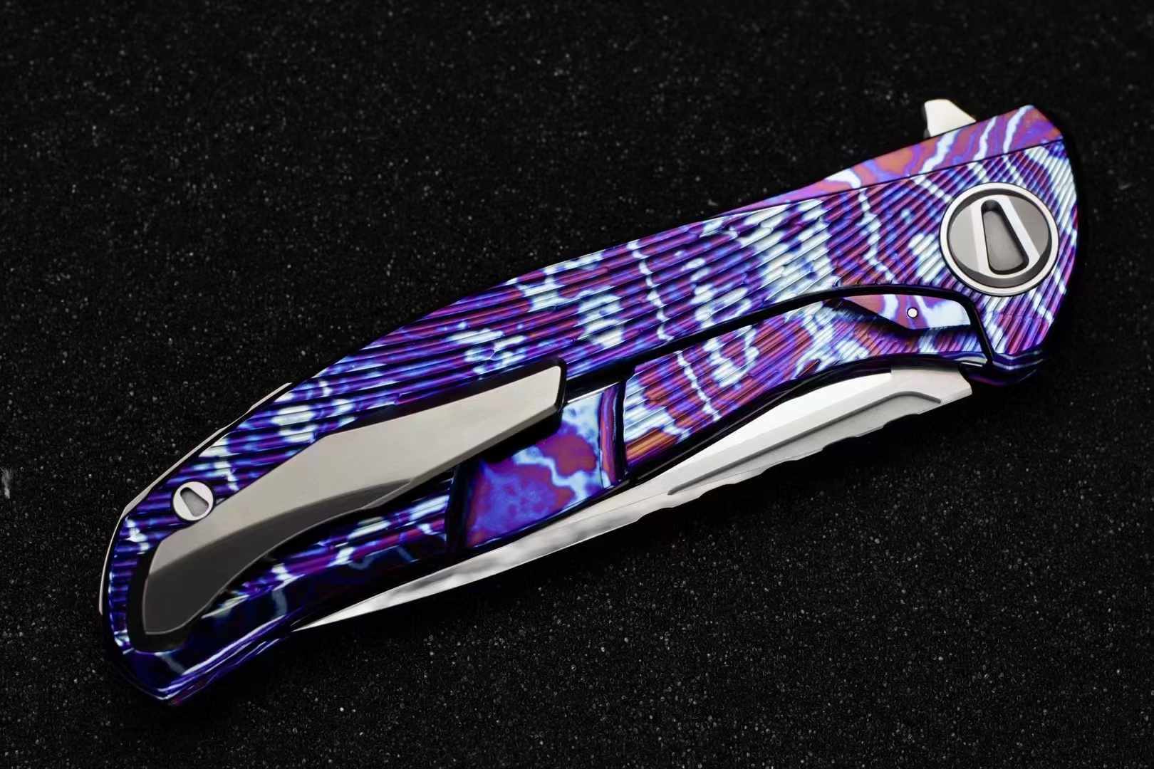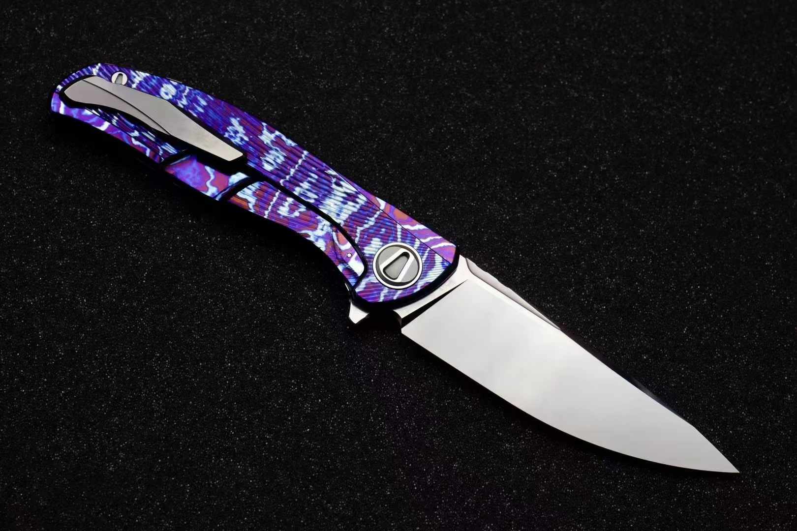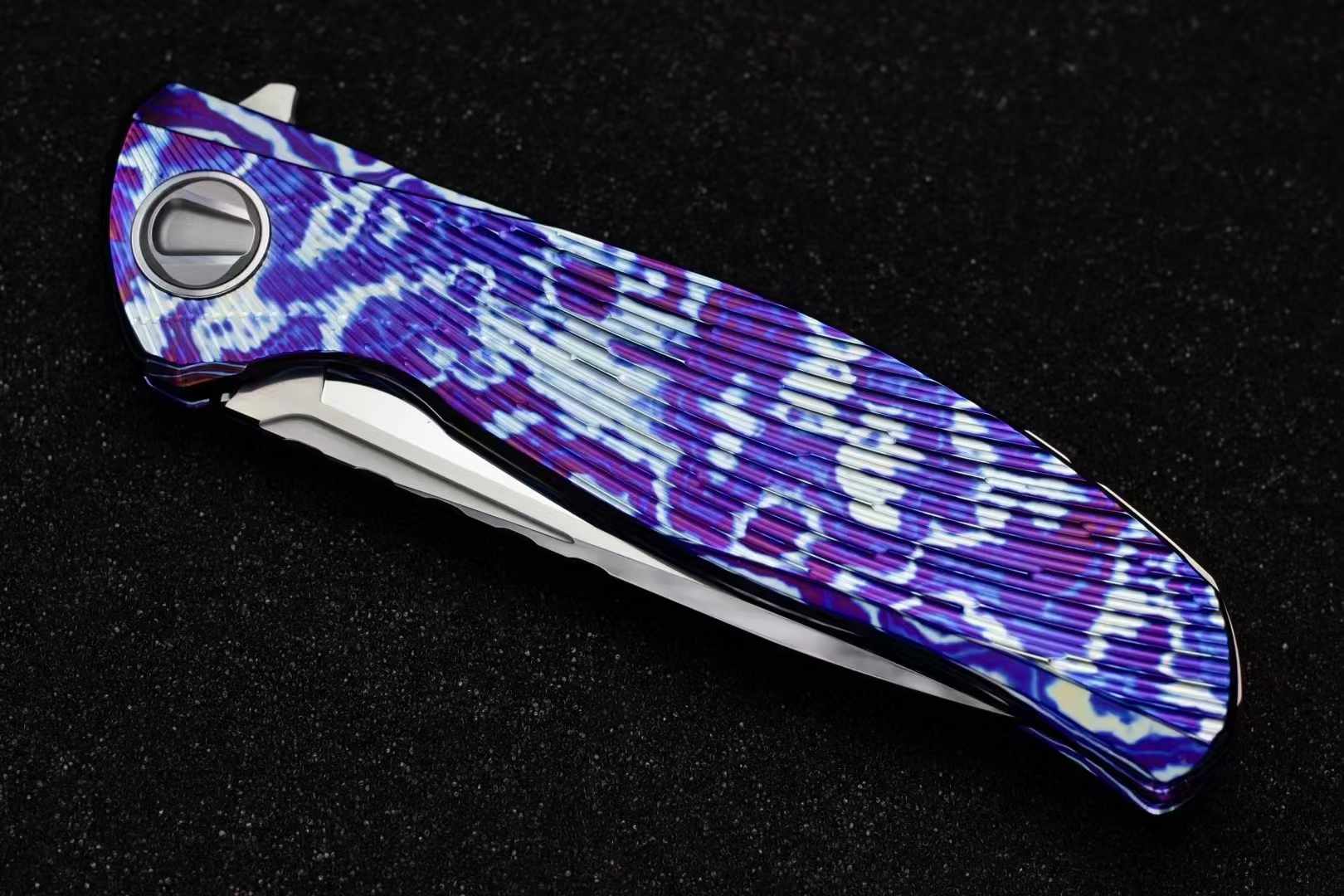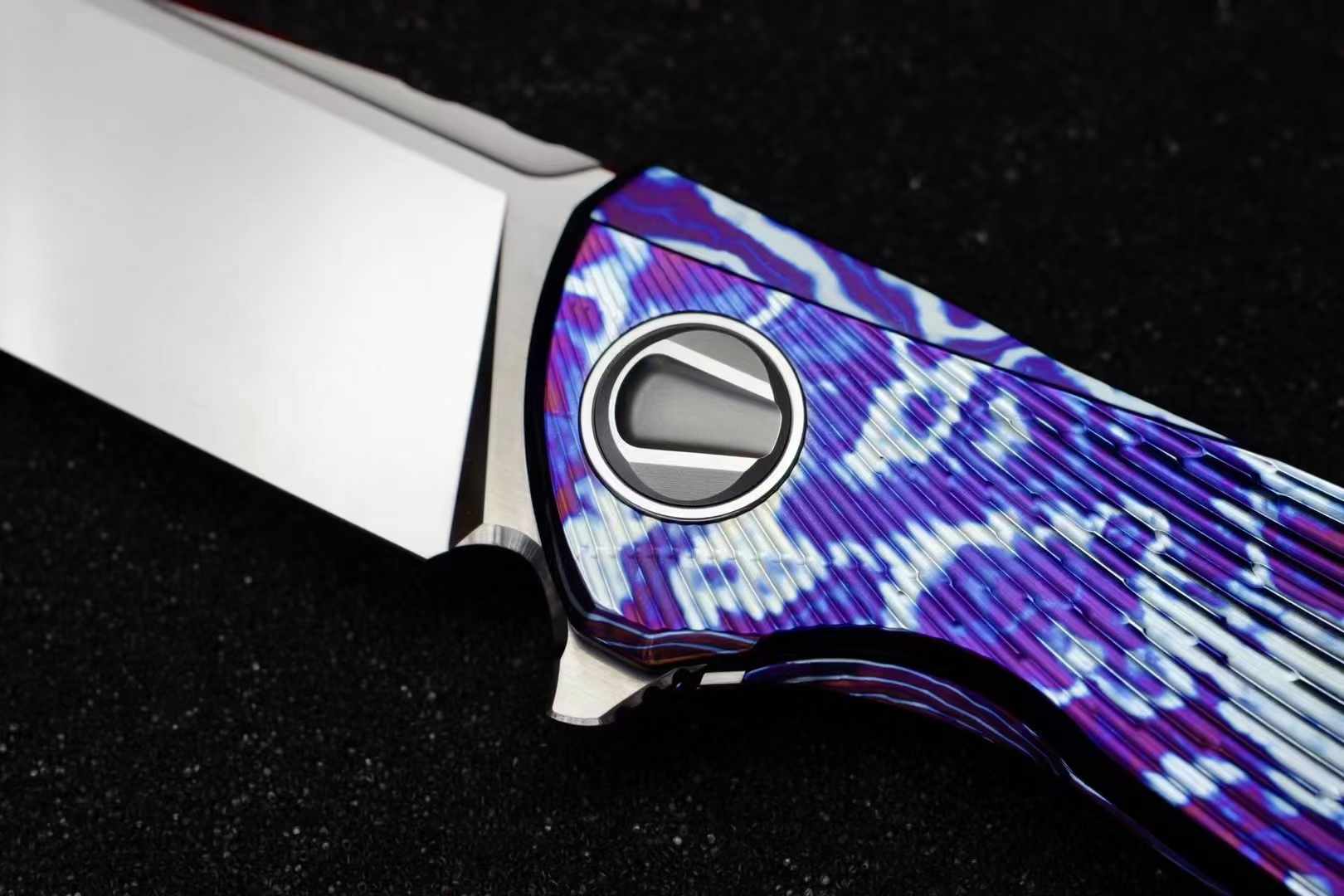 罗格罗夫熊头,谢尔盖定制顶级TiHatium,S110V钢材烟雾镜面刃,Tikron钛马手柄,锆合金背脊,DRRBS多列滚柱轴承,2022美国刀展拍卖品。