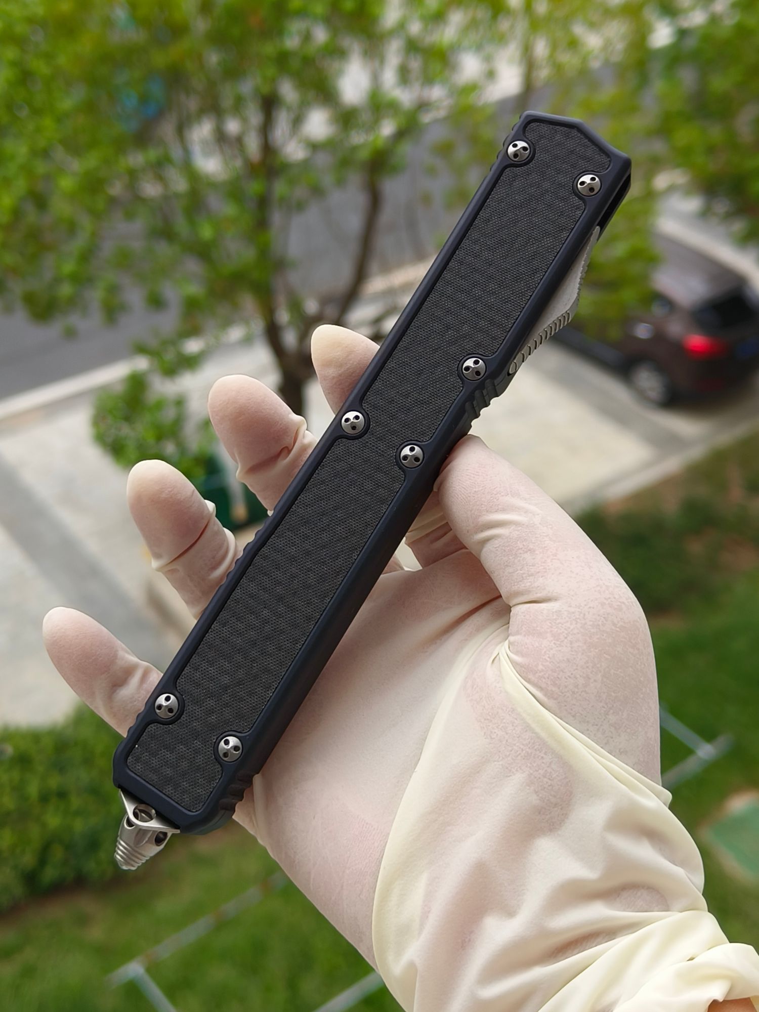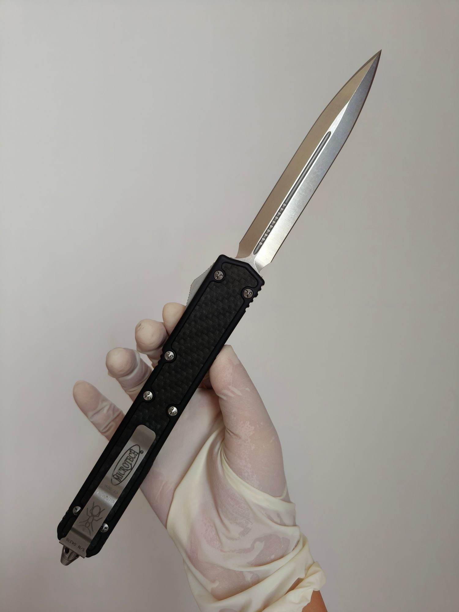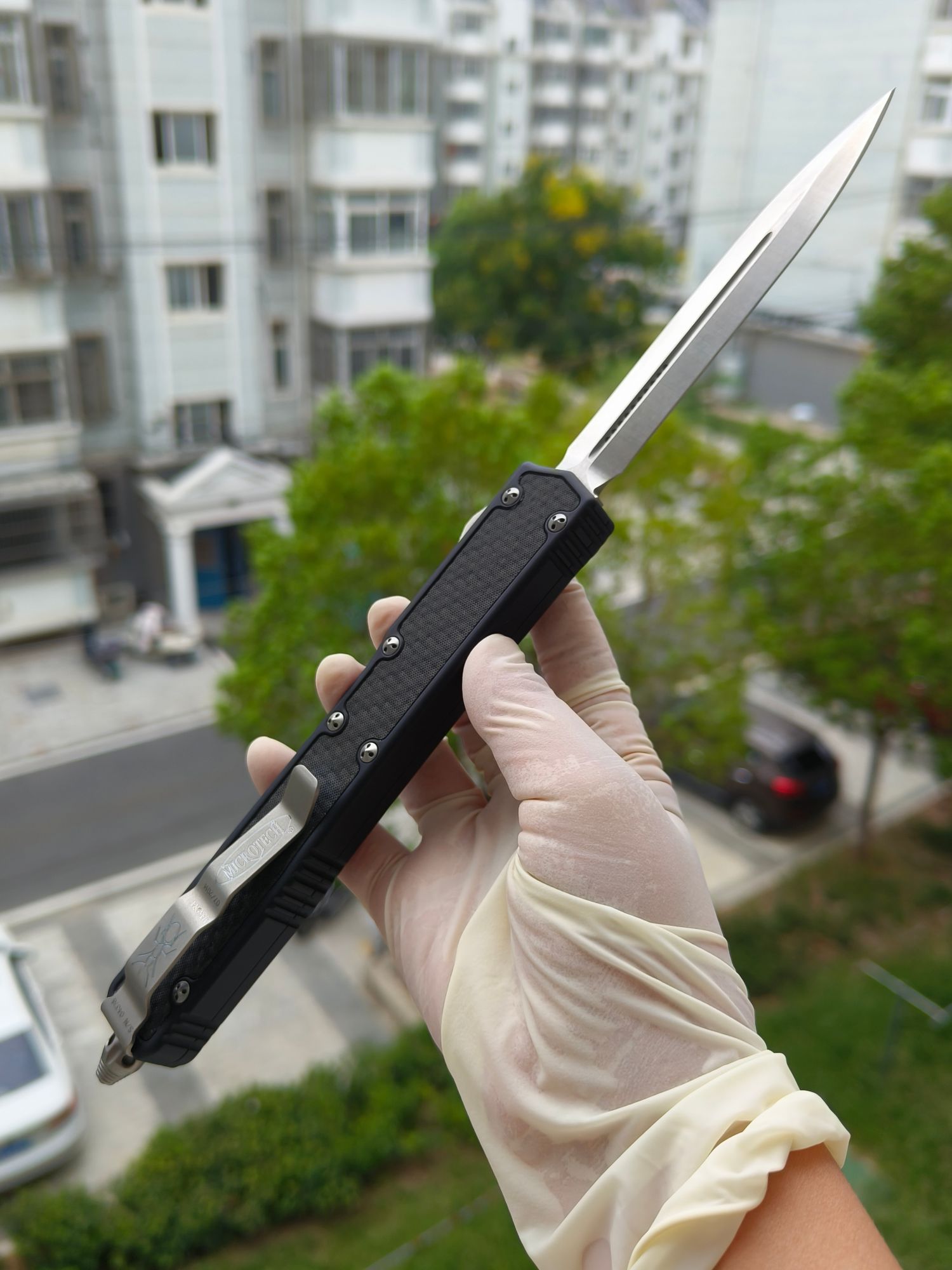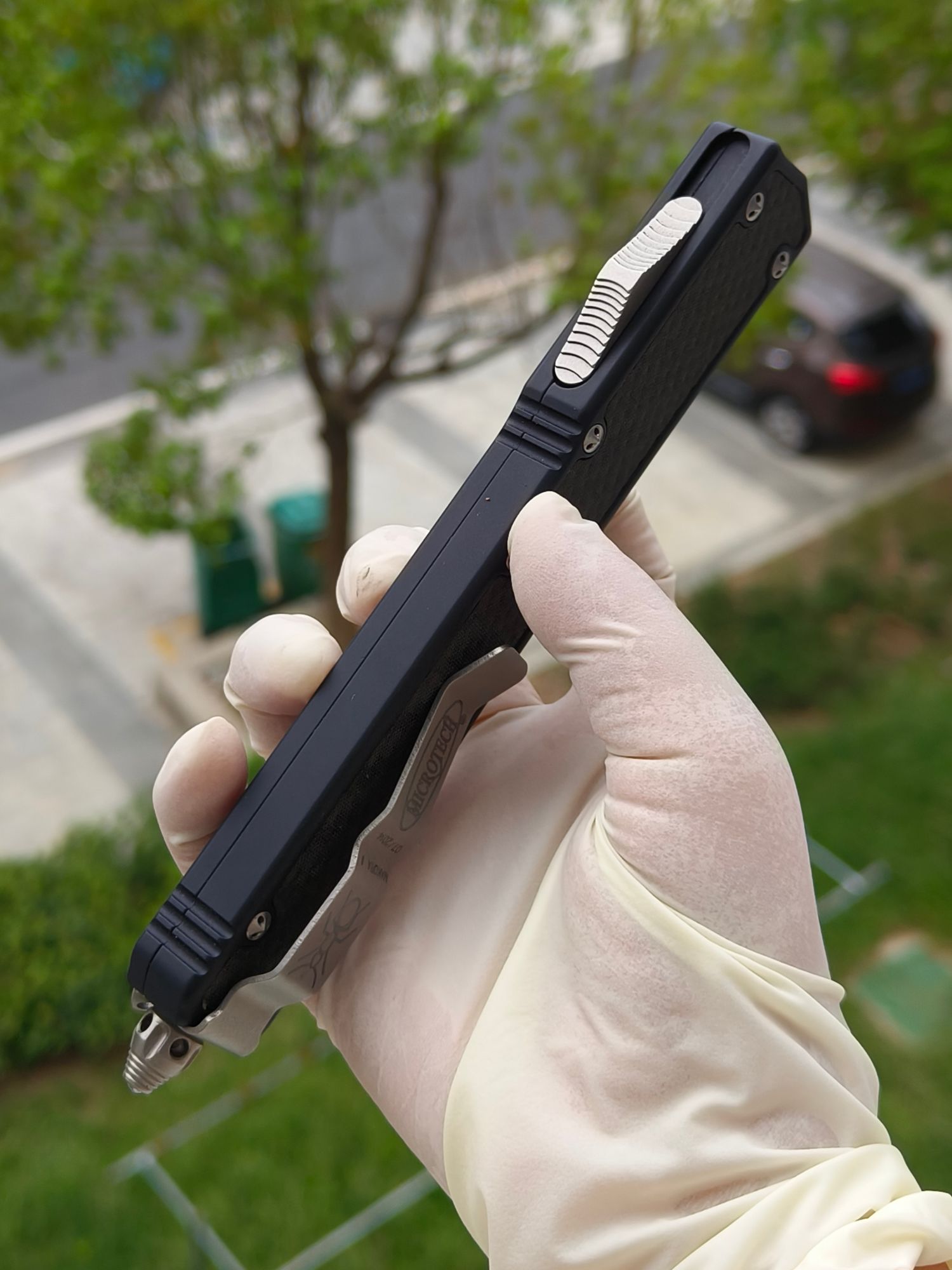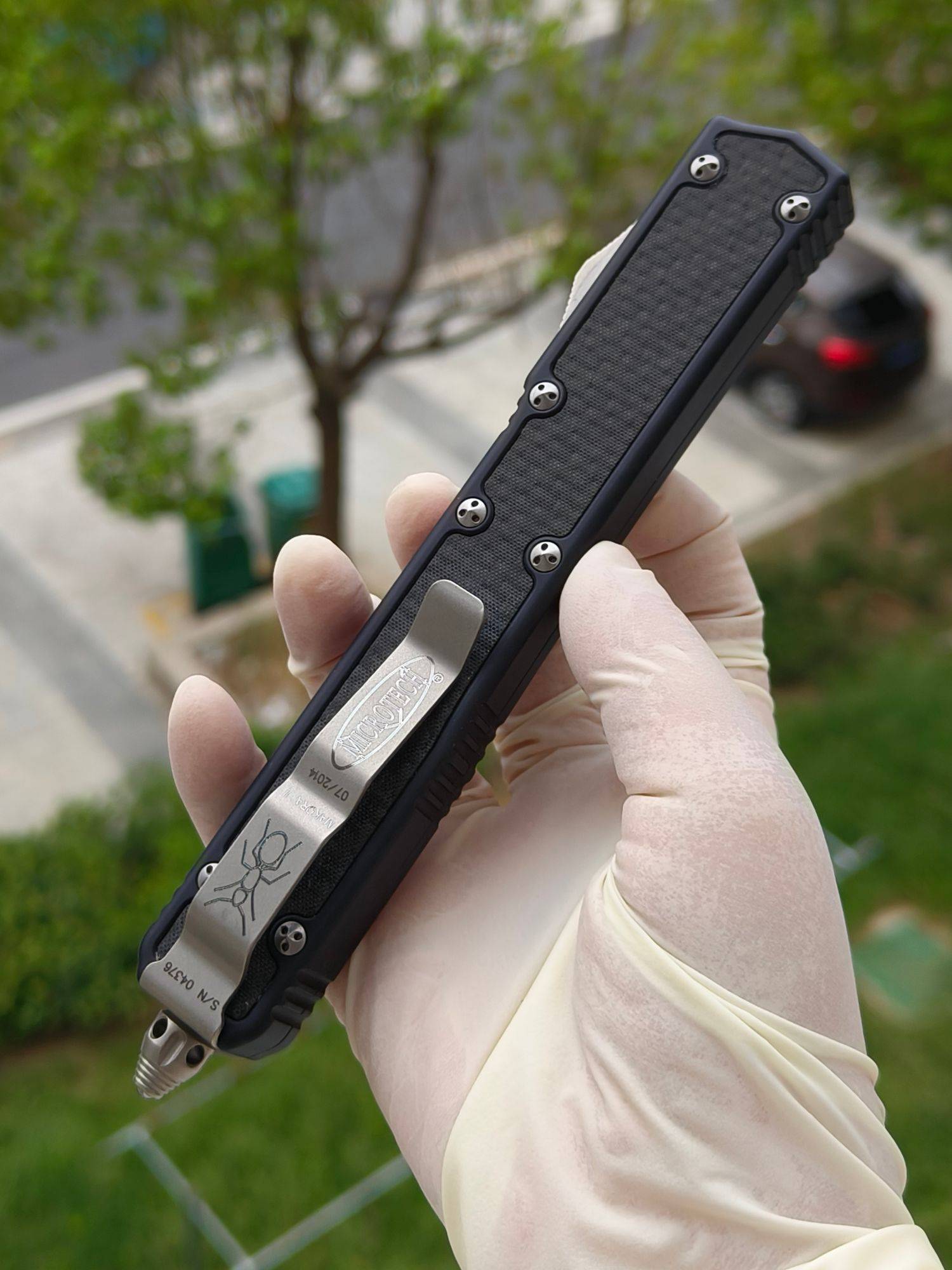沿袭Ultratech的技术与概念,全新的Makora "圣蚂蚁" 汇集众多功能于一身;虽然拉长的握柄在外型较长,但不仅铝合金握柄轻量化整体重量,更进一步运用碳纤维材质减低重量。 Makora Ⅱ 石洗平刃弹簧刀采用ELMAX 粉末钢钢材,握柄尾端附有玻璃击破器与可左右对调的背夹适用于任何用刀习惯;阶梯式的开关钮设计同时针对手戴手套时仍可灵活且扎实地使用。