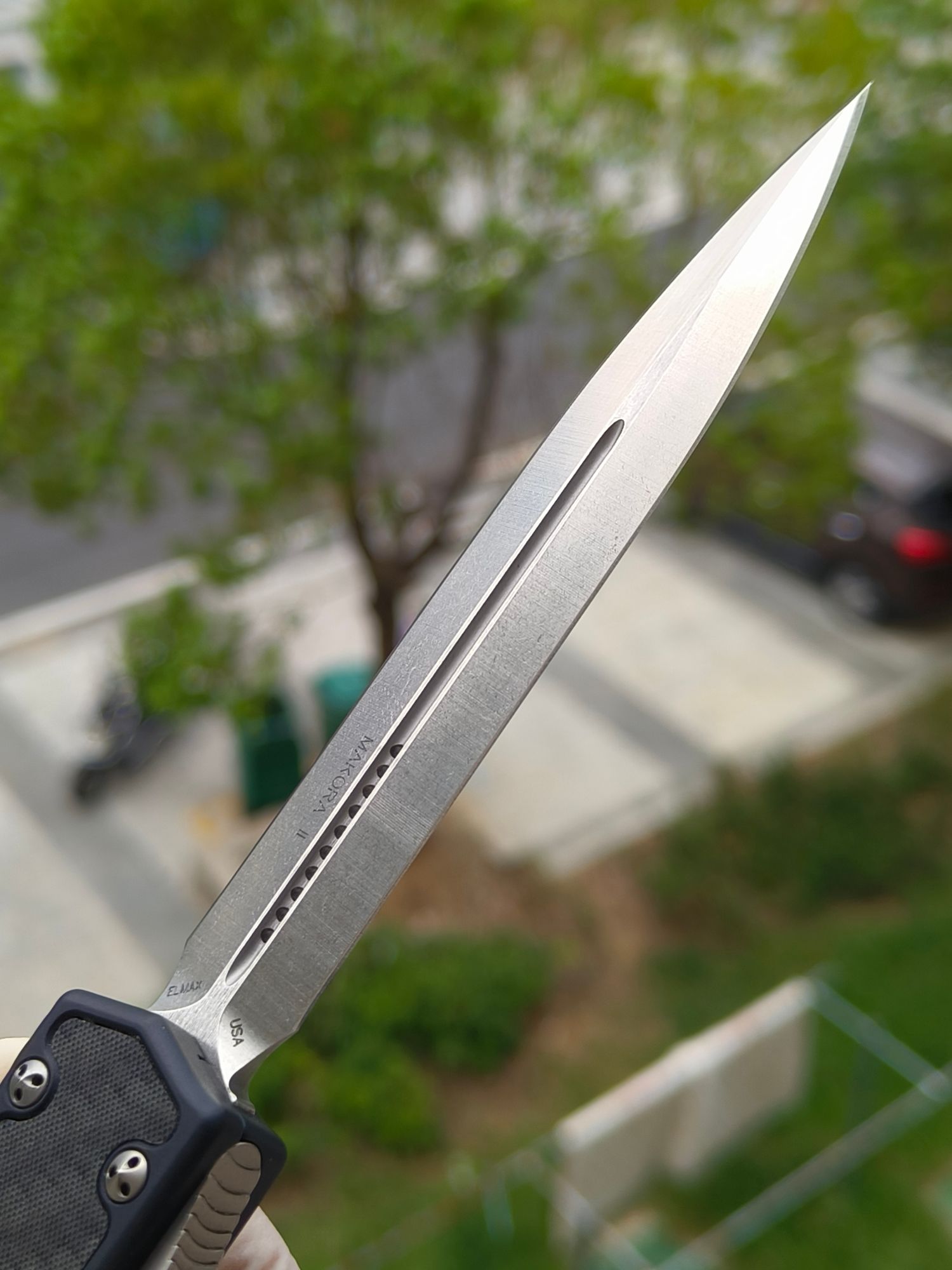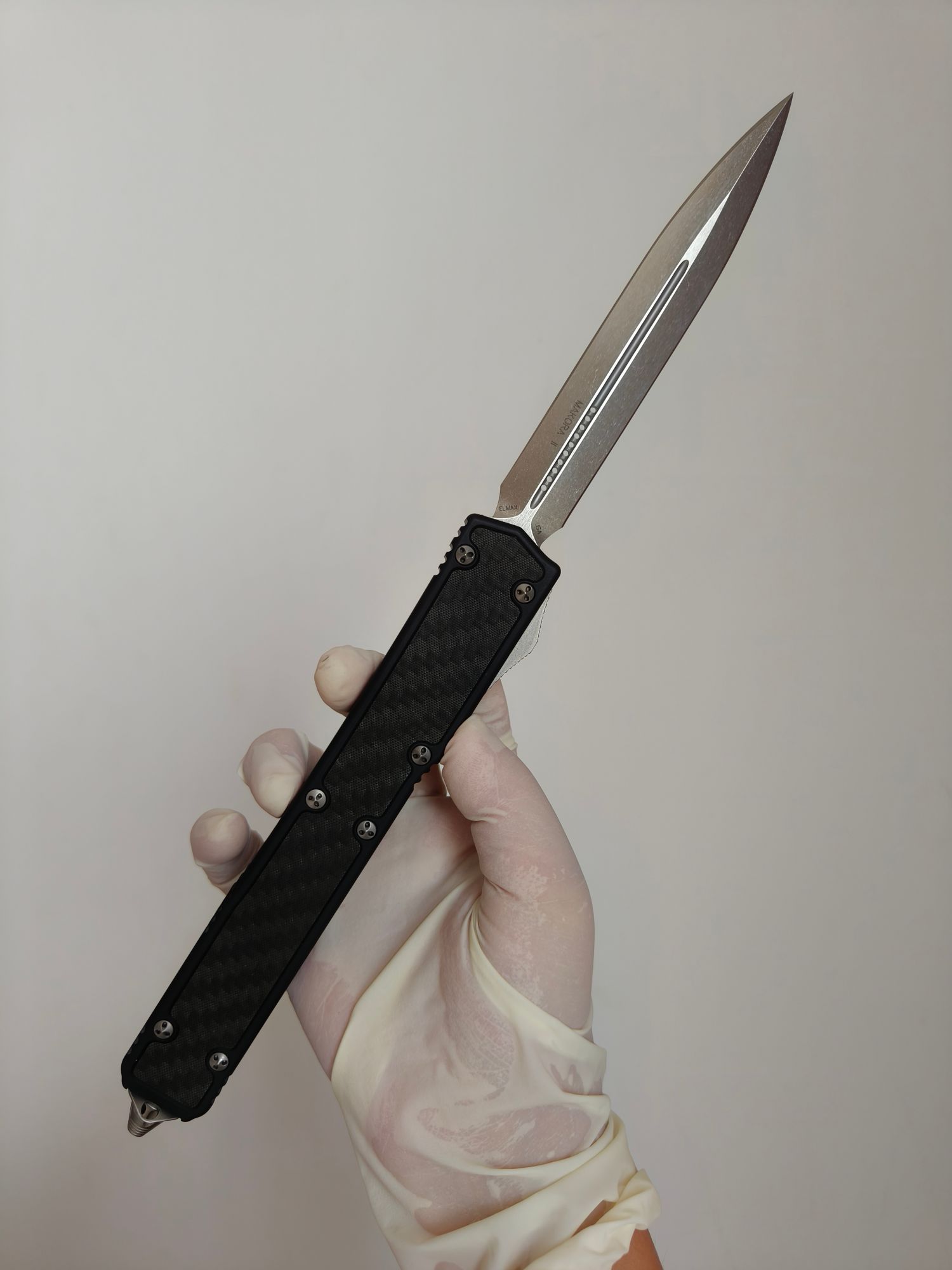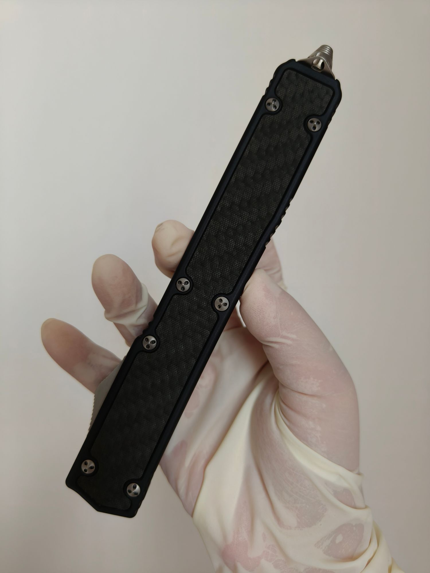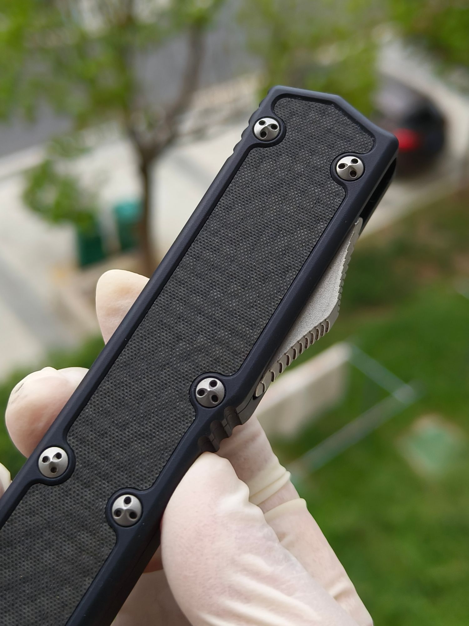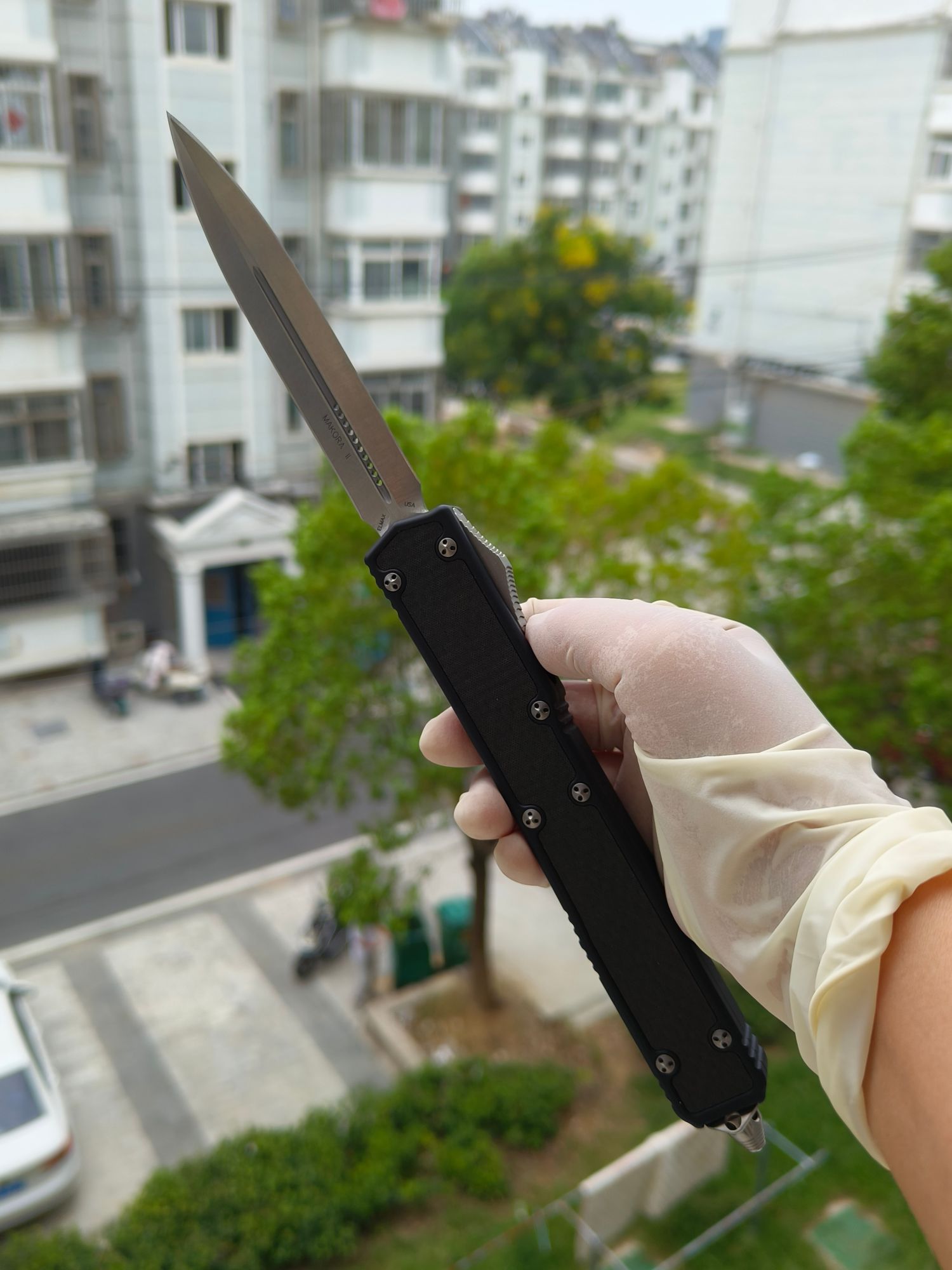 沿袭Ultratech的技术与概念,全新的Makora "圣蚂蚁" 汇集众多功能于一身;虽然拉长的握柄在外型较长,但不仅铝合金握柄轻量化整体重量,更进一步运用碳纤维材质减低重量。 Makora Ⅱ 石洗平刃弹簧刀采用ELMAX 粉末钢钢材,握柄尾端附有玻璃击破器与可左右对调的背夹适用于任何用刀习惯;阶梯式的开关钮设计同时针对手戴手套时仍可灵活且扎实地使用。