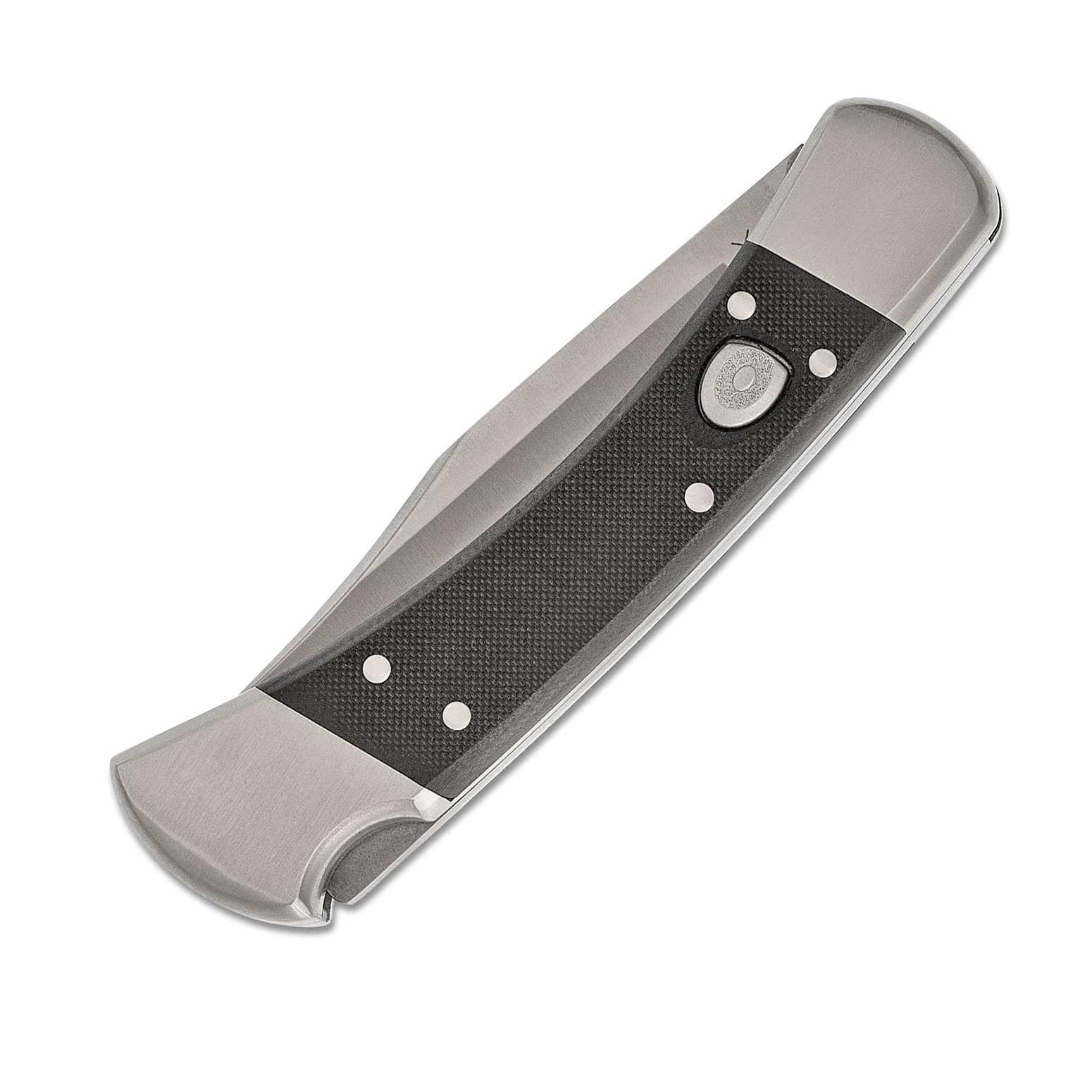 全长:218mm 刃长:94mm 刃厚:3mm 刃宽:20.5mm 刃材:S30V 硬度:61HRC 闭合:125mm 产地:美国 重量:215g 0110BKSA-B折叠猎人精英侧跳,经典110基础上增加了侧跳功能,轻按手柄按钮即可快速弹出刀片,手按背锁收刀。 G-10手柄,镍银刀枕,白色金属更显高雅!