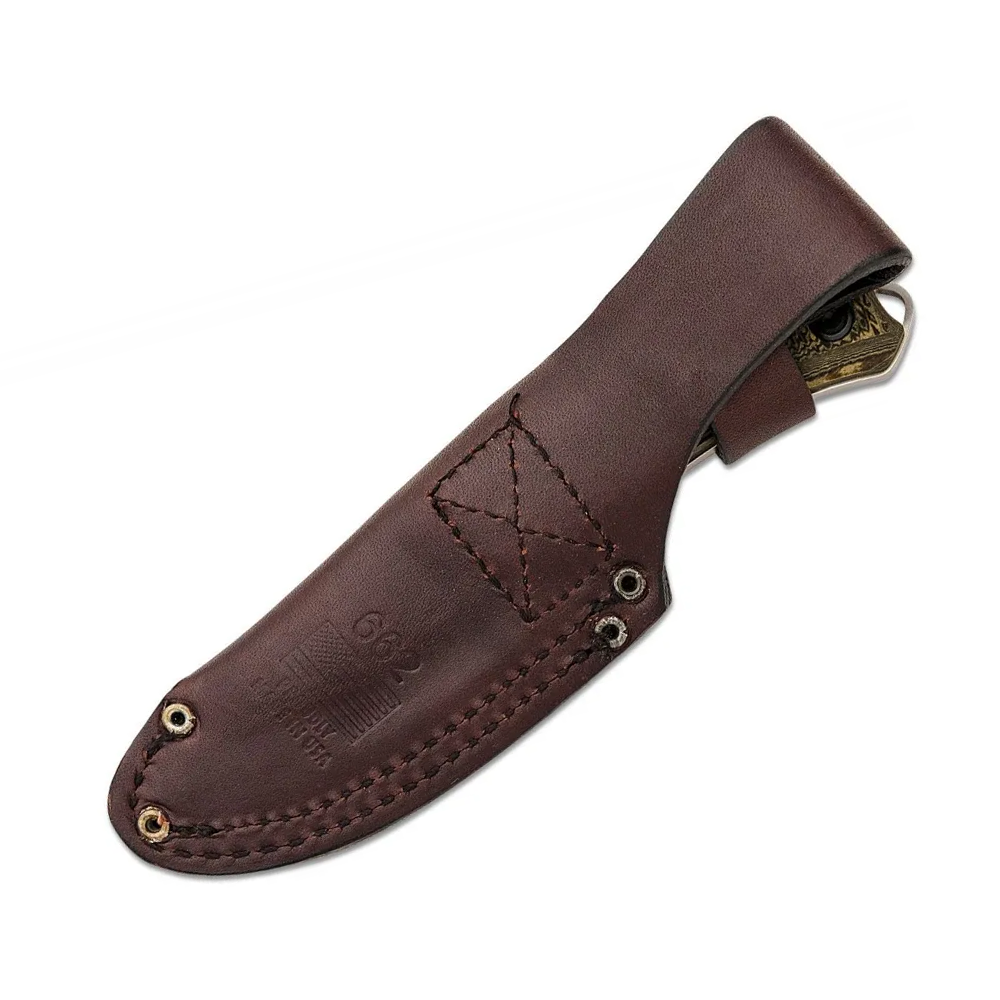 Buck Alpha Scout 刀采用高性能 S35VN 钢,刀刃坚固,刀刃形状坚固,可轻松穿过材料而不会聚拢。刀脊处有锯齿状花纹,便于在进行棘手的盲切时将刀刃收紧。带纹理的手柄即使在潮湿的情况下也能提供强大的抓握力。附带一个加固的皮革刀鞘,可将刀固定在腰带上或安全地放在背包中。对于需要最大限度发挥装备性能的猎人来说,Buck Alpha Scout 是完美的选择。