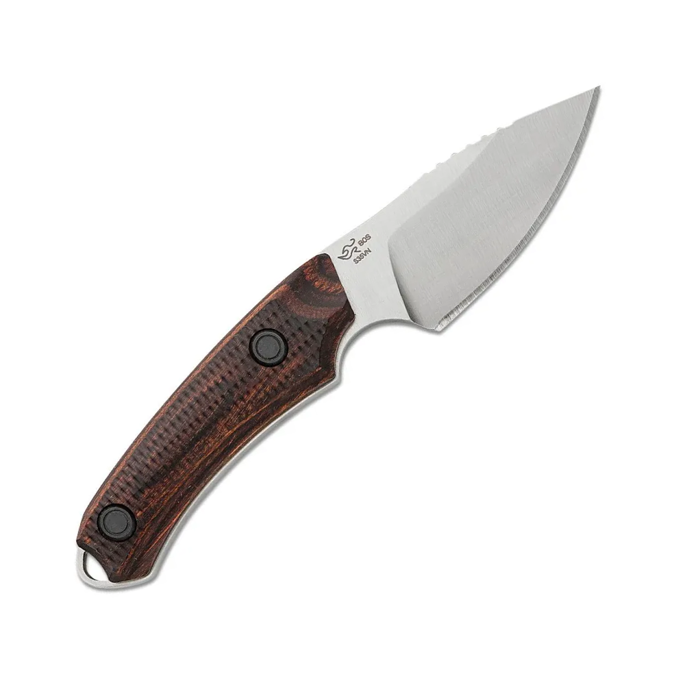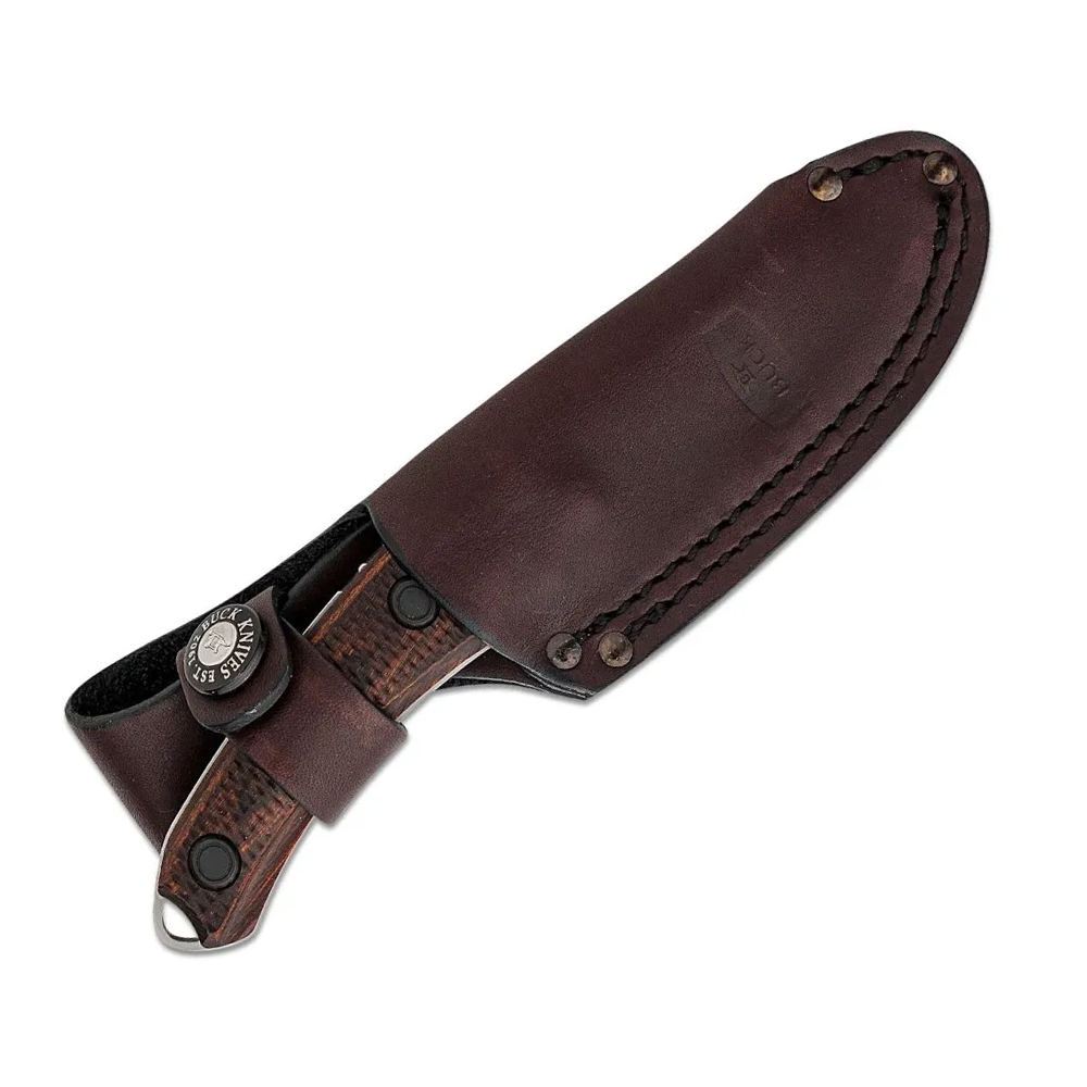 Buck Alpha Scout 刀采用高性能 S35VN 钢,刀刃坚固,刀刃形状坚固,可轻松穿过材料而不会聚拢。刀脊处有锯齿状花纹,便于在进行棘手的盲切时将刀刃收紧。带纹理的手柄即使在潮湿的情况下也能提供强大的抓握力。附带一个加固的皮革刀鞘,可将刀固定在腰带上或安全地放在背包中。对于需要最大限度发挥装备性能的猎人来说,Buck Alpha Scout 是完美的选择。