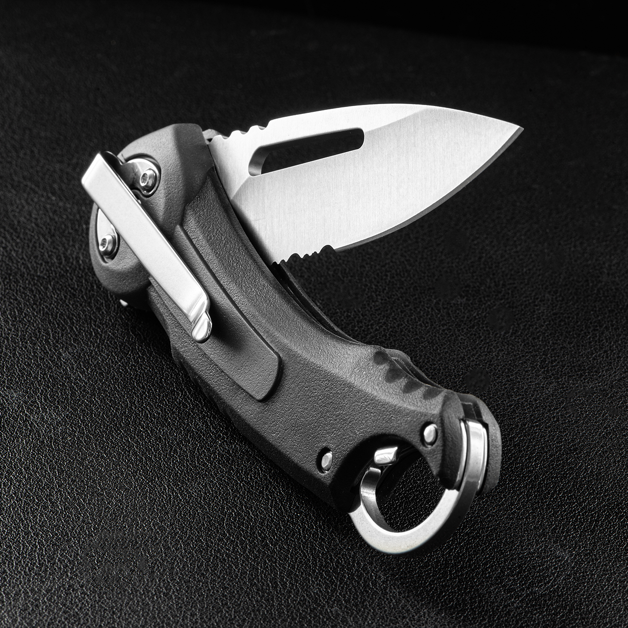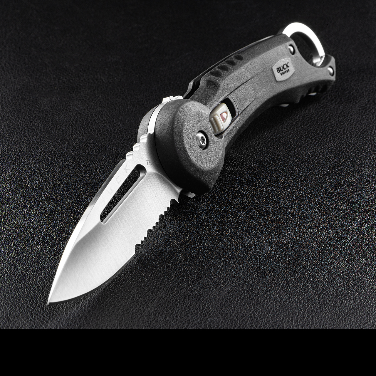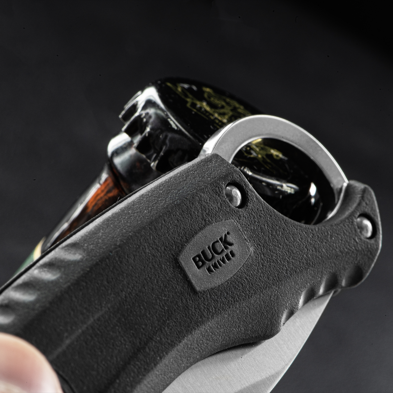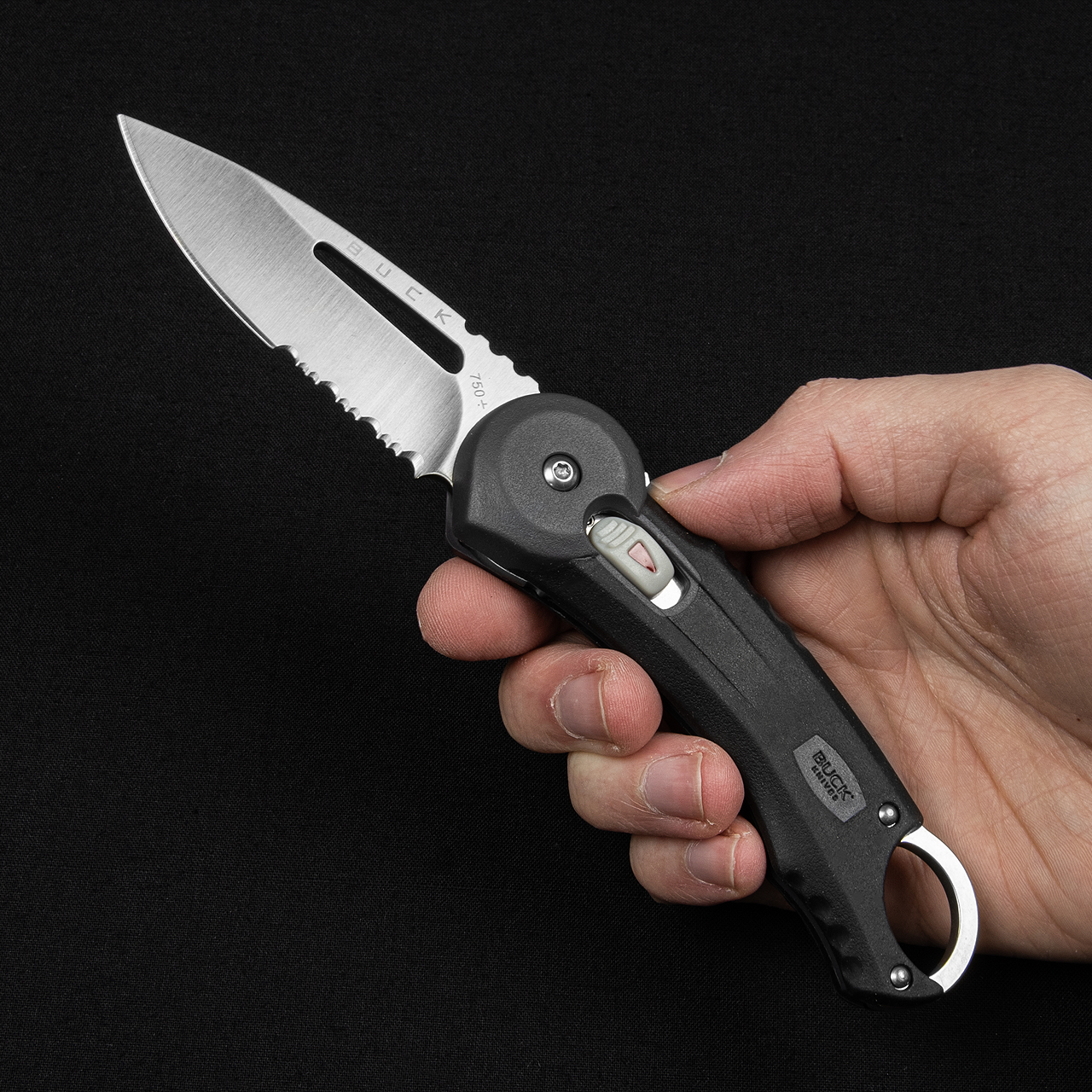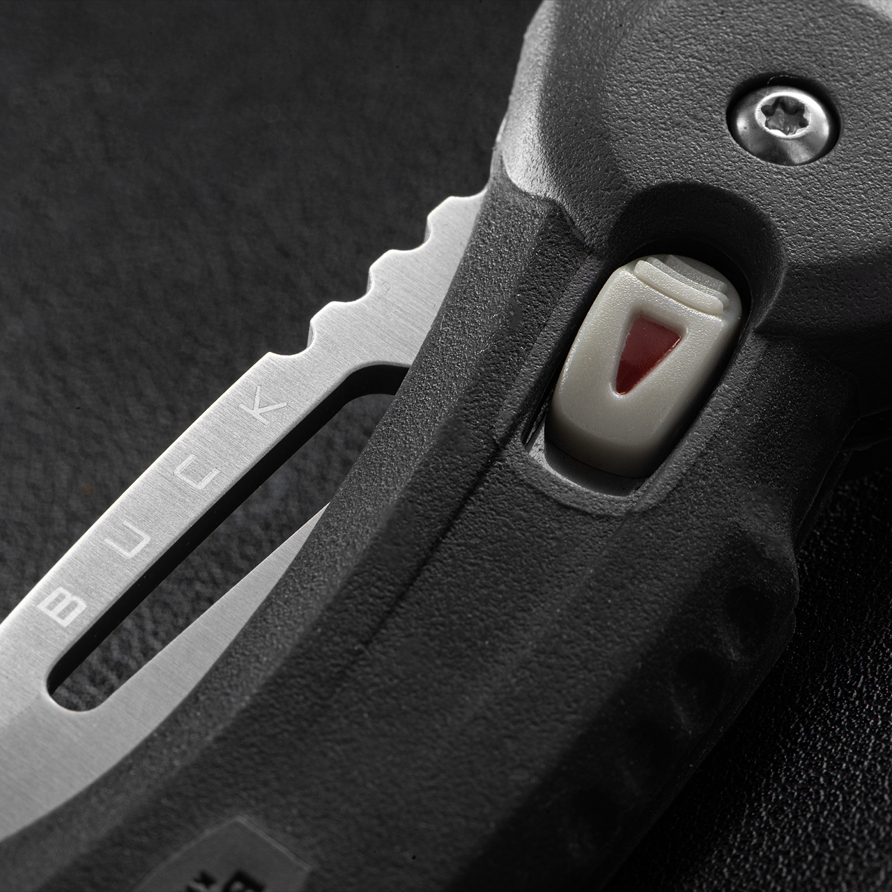 Buck 753 RedPoint Rescue 是折叠刀领域最有趣的发明之一,它具有开合和锁定功能。Safespin 系统通过侧面的按钮操作,按下该按钮即可解锁并打开刀具。然后,您只需简单地移动手部即可打开刀具,或者使用铰链点周围的脊线用手指展开刀片。当刀具完全打开时,侧面的按钮会发出咔嗒声,将刀片锁定在打开位置。
