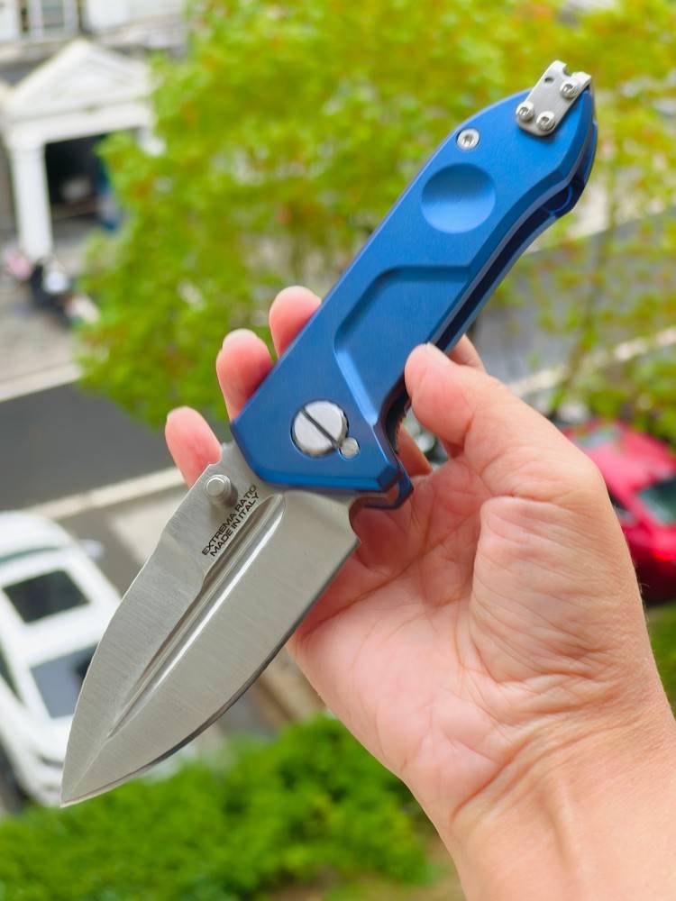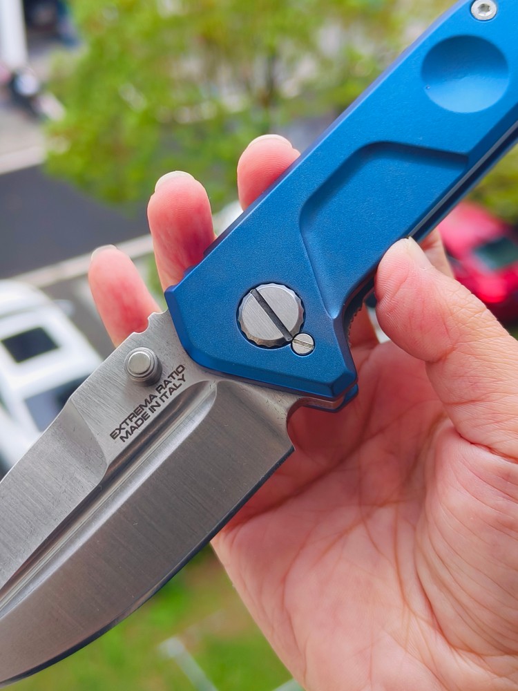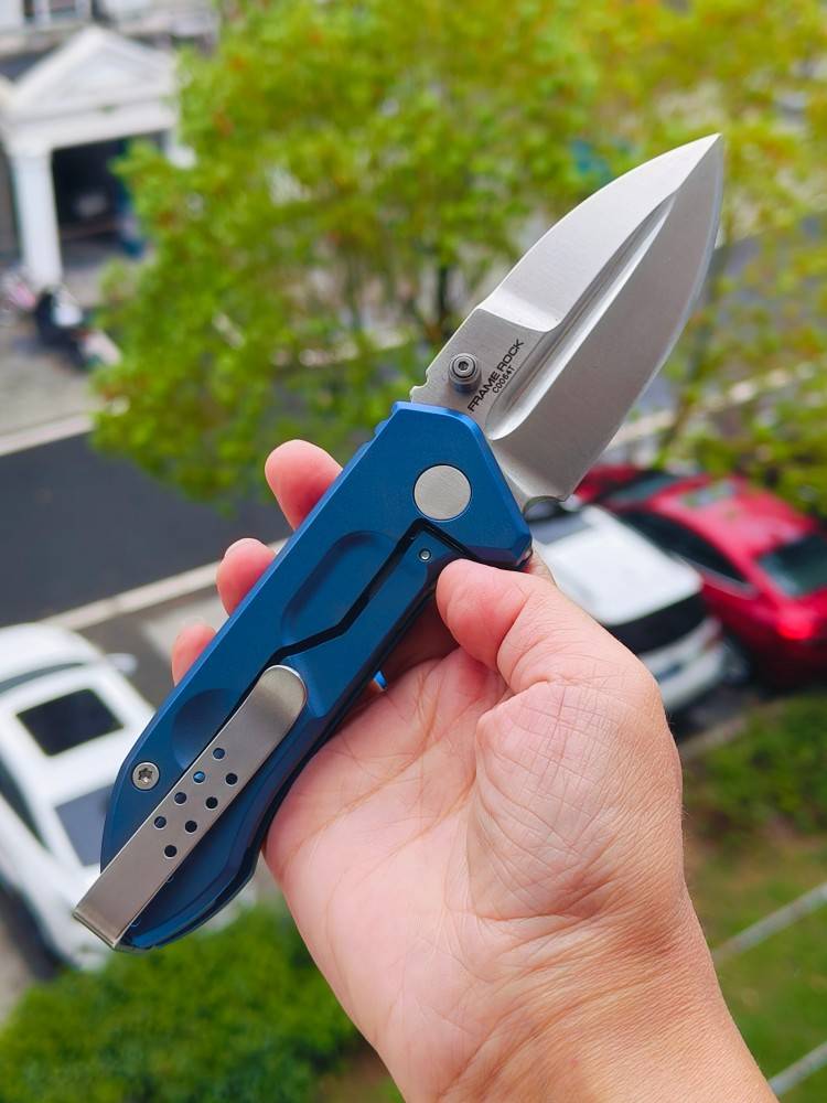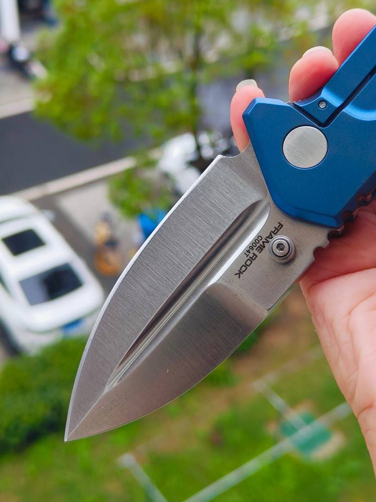 Extrema Ratio Frame Rock 是一款新刀,基于 Ti-Rock 的设计,Ti-Rock 是一款成功的框架锁定制刀。 Extrema Ratio Frame Rock 的特点是钛合金握把,具有出色的韧性,但非常轻。易于更换的热处理钢嵌件保证了框架锁的完整性和耐用性,防止磨损。与之前的水滴式刀头不同,Frame Rock 具有矛尖刀刃,长 75 毫米(3 英寸),厚 6.0 毫米(0.23 英寸),经过充分处理,更加轻盈。刀片采用 Bohler N690 钢制成,经过 58 HRC 热处理。它有黑色、DLC 处理或石洗饰面。为了使打开更加顺畅和轻松,刀片在滚珠轴承上旋转。该机构允许用户通过螺钉调节将刀片从关闭位置释放所需的力。双面夹子的形状允许在口袋中隐藏一个端口,使刀从外面看不见。握柄大且比例匀称,刀片厚实,使其能够应对繁重的任务。 Frame Rock 的重量仅为 9.6 盎司(270 克),对于这样一把坚固的刀来说相当轻。它配有一个特殊的 ABS 外壳。