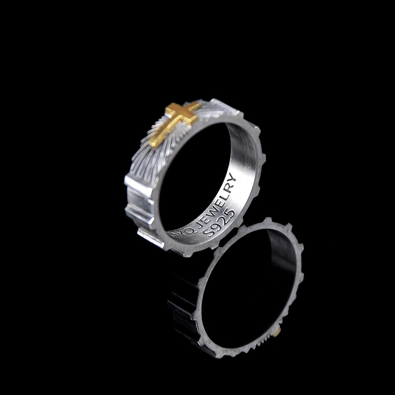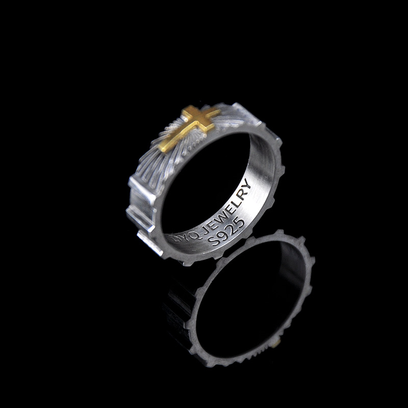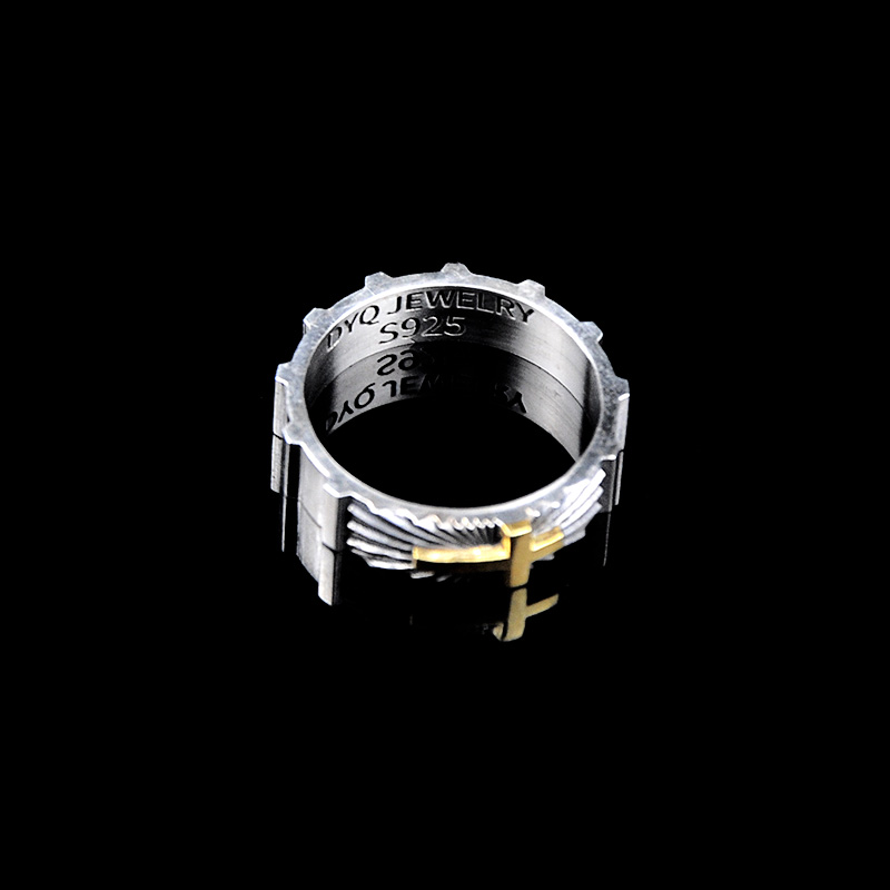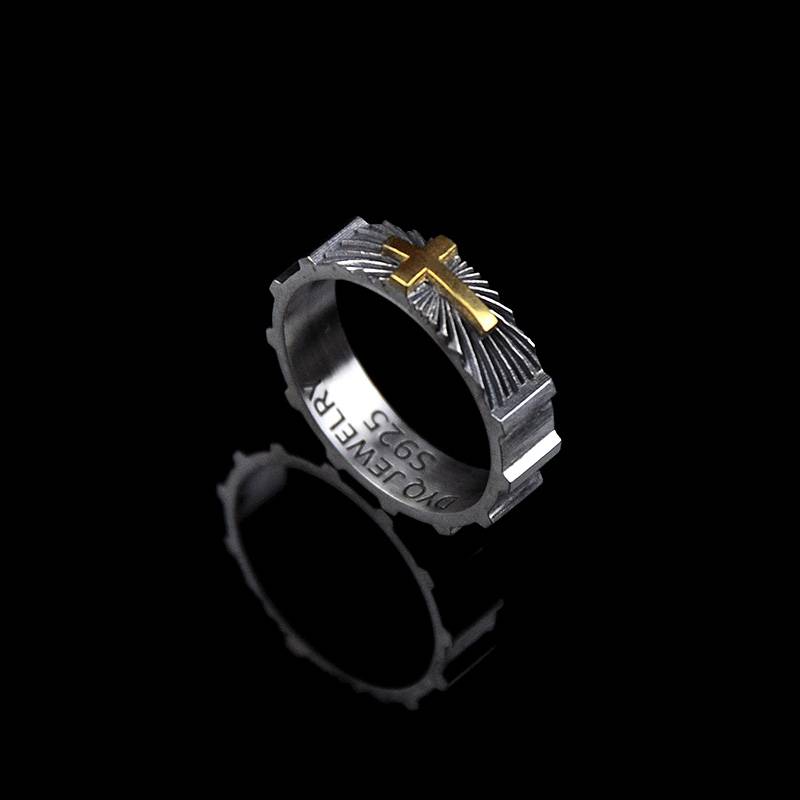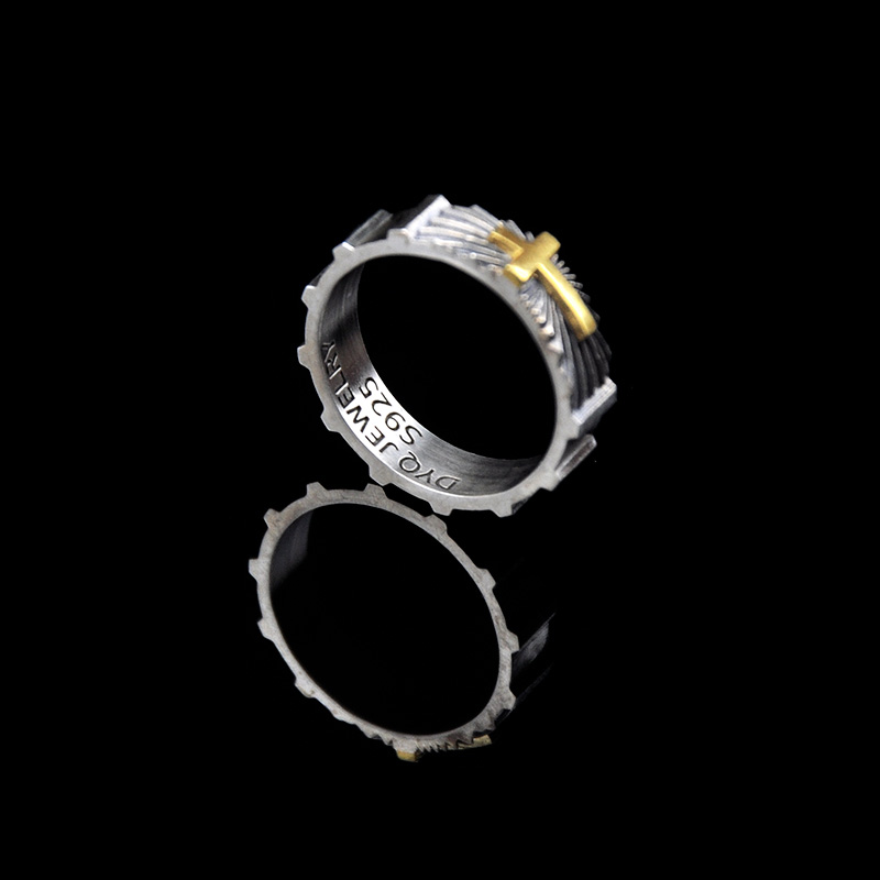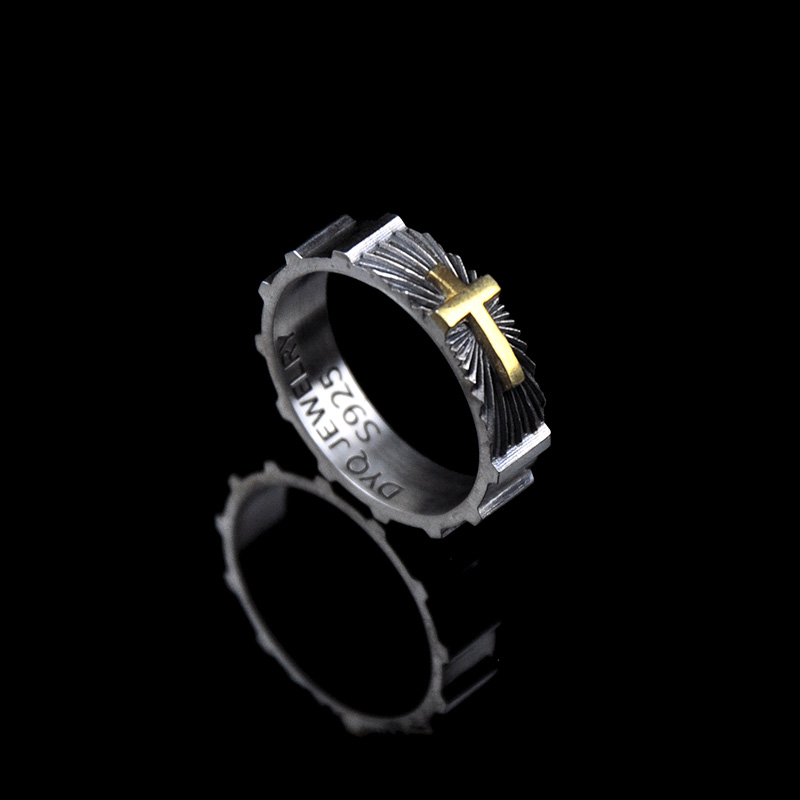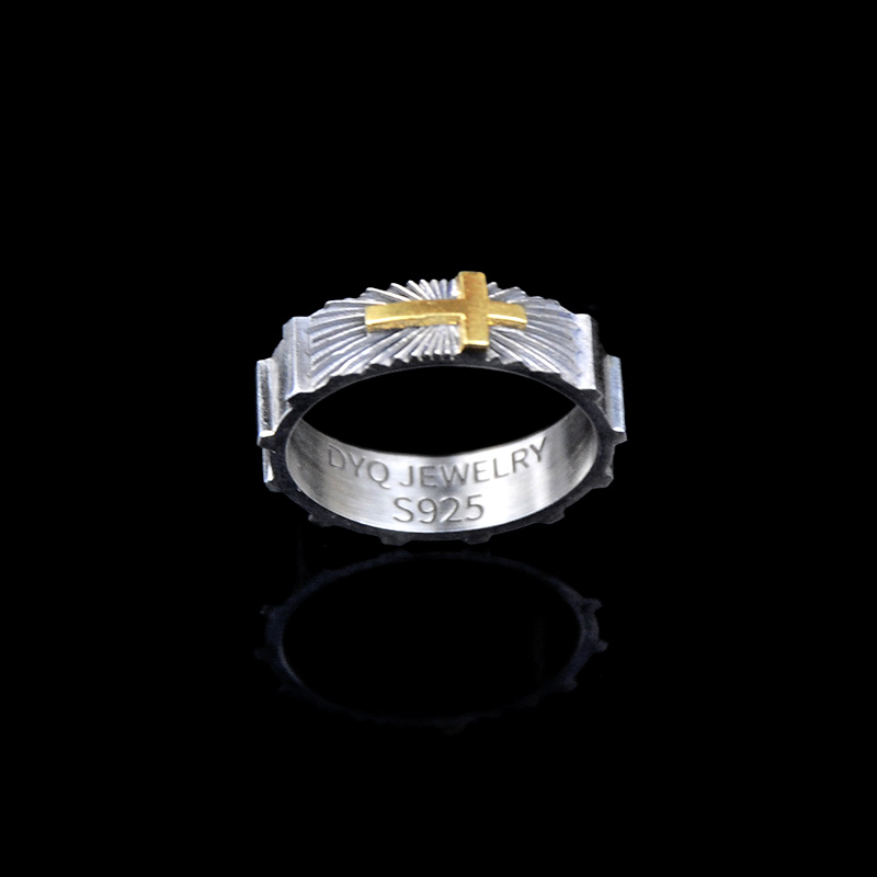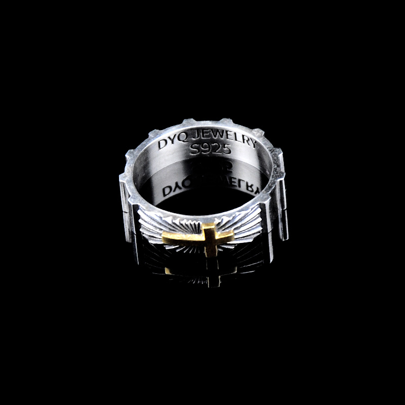 DYQ Jewelry 十字守护 925银 24K金 男士戒指