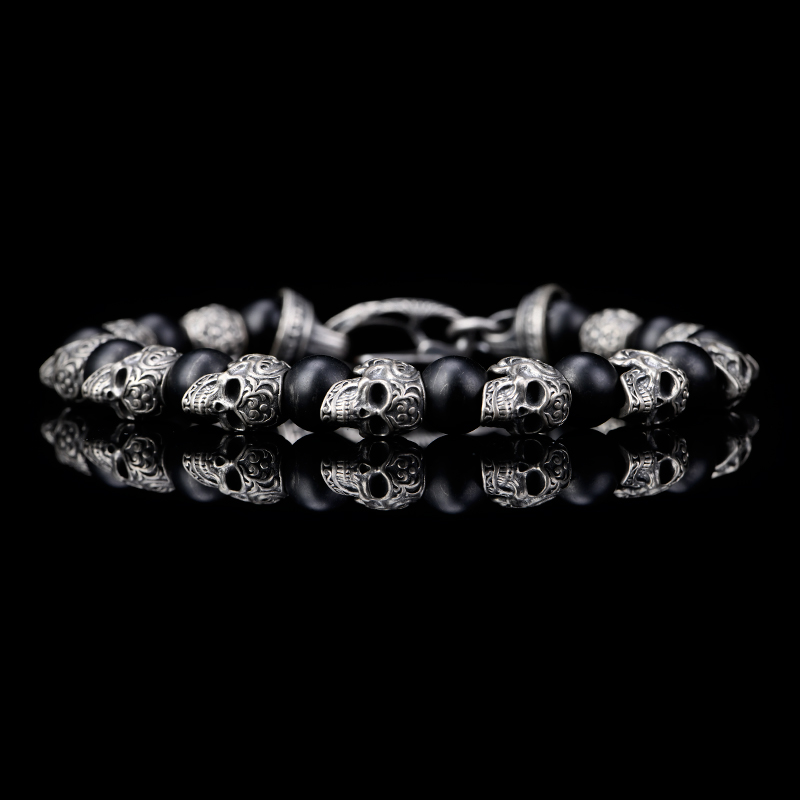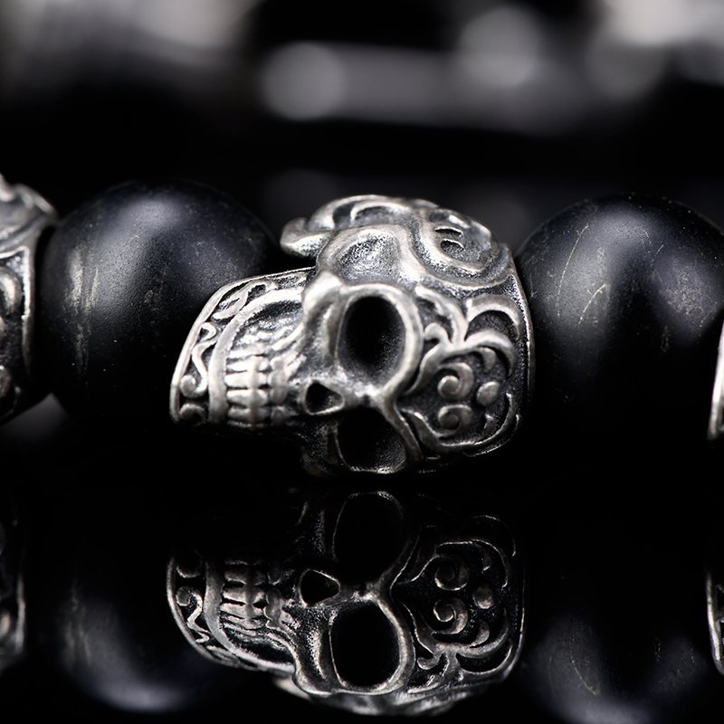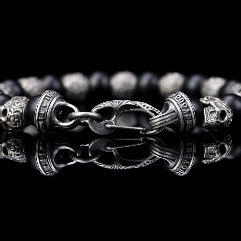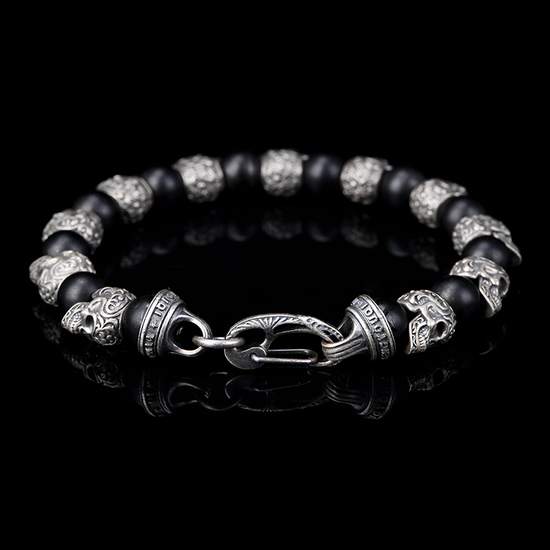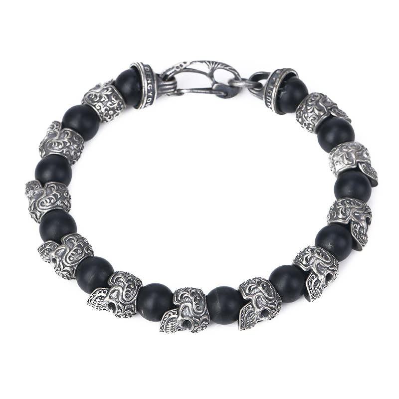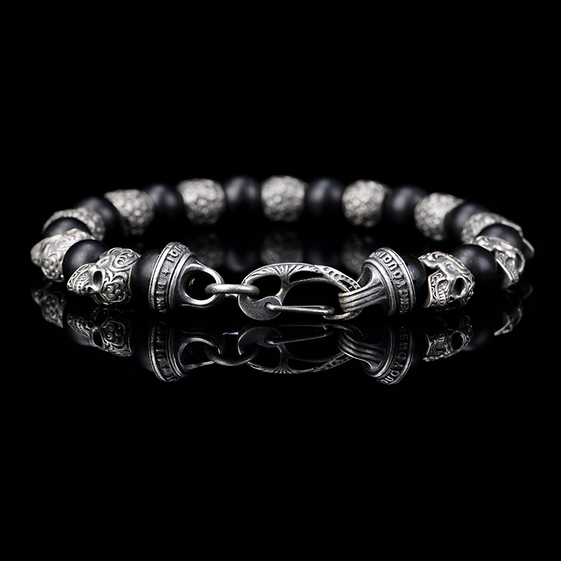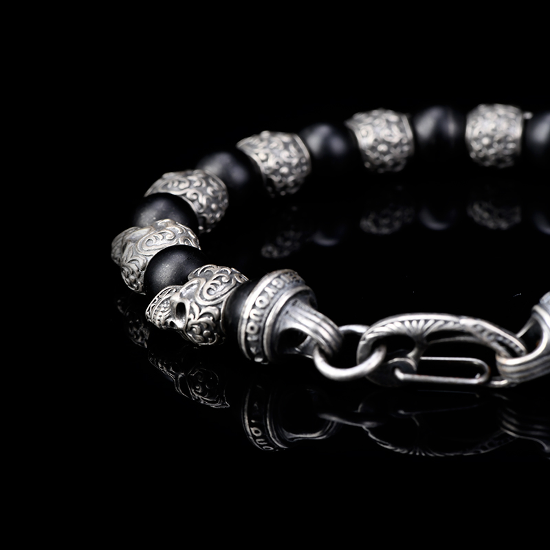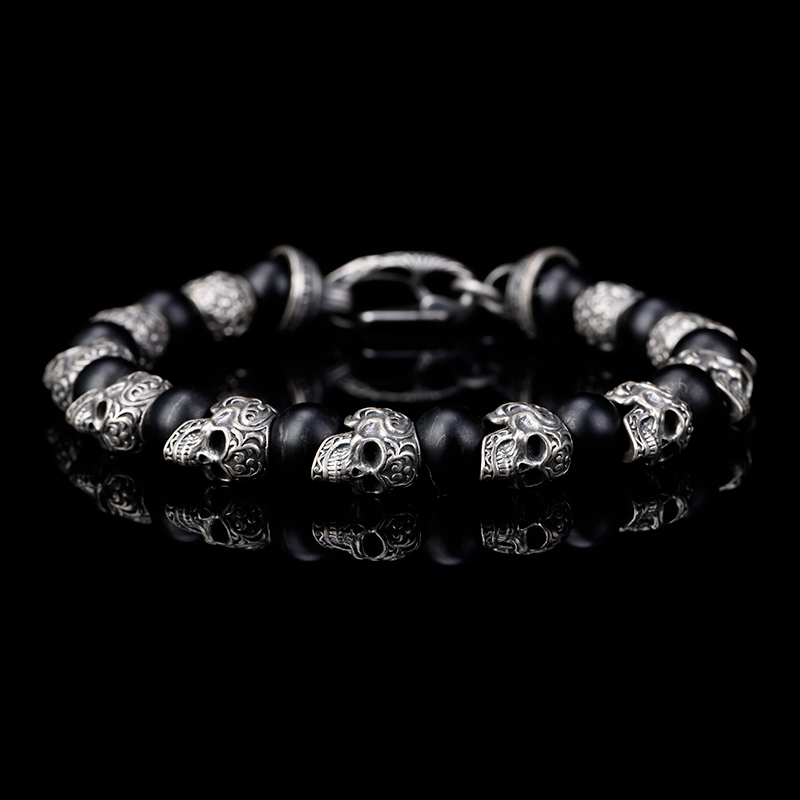 DYQ Jewelry 925银 唐草骷髅 黑玛瑙 男生手链 绅士英伦