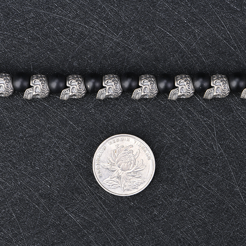 DYQ Jewelry 不屈意志 925银唐草骷髅 黑曜石 男生手链