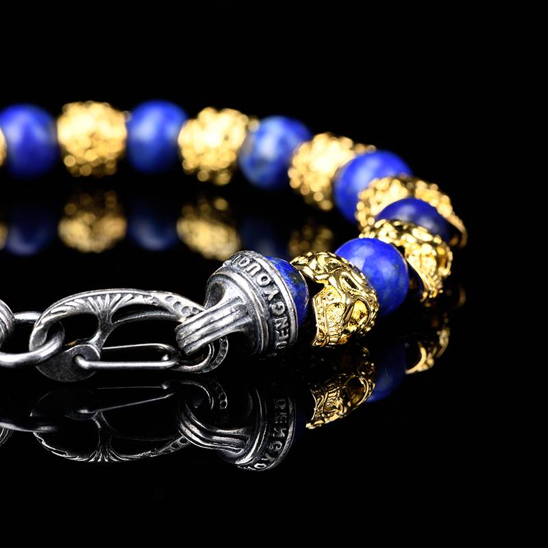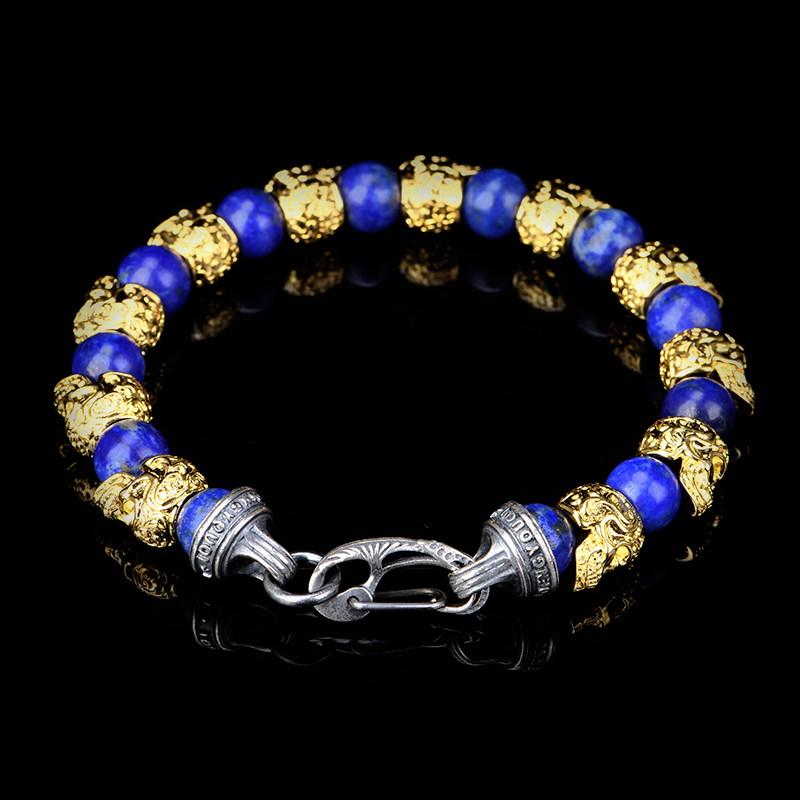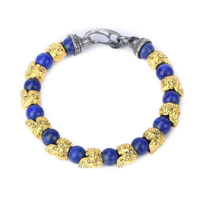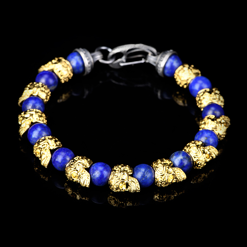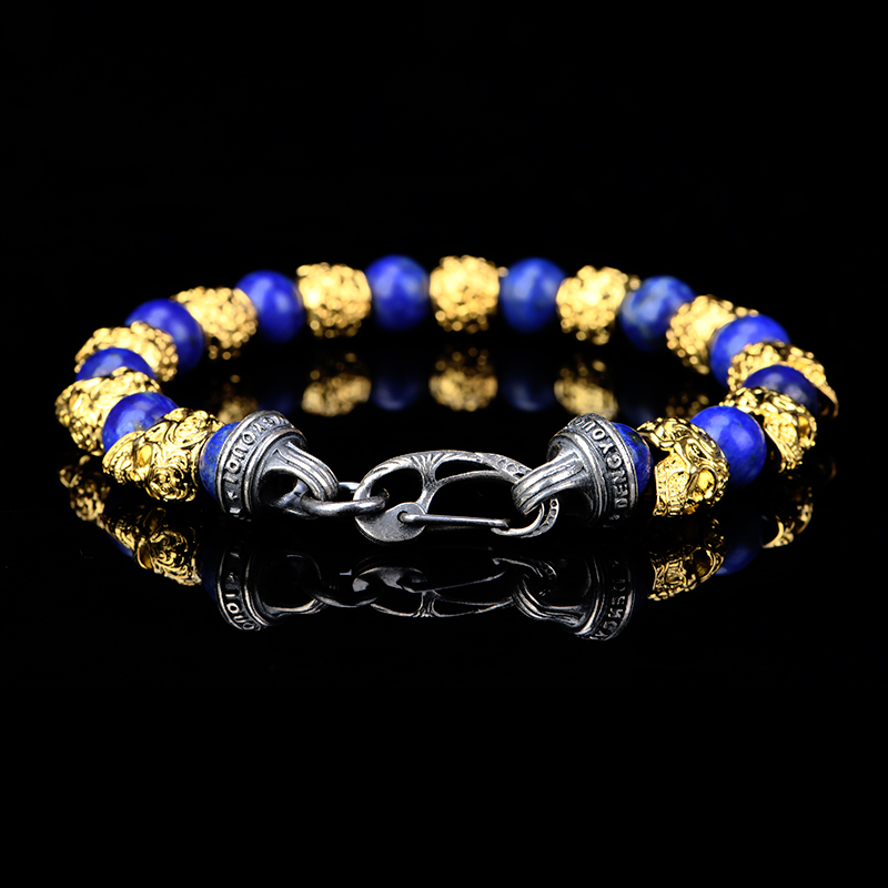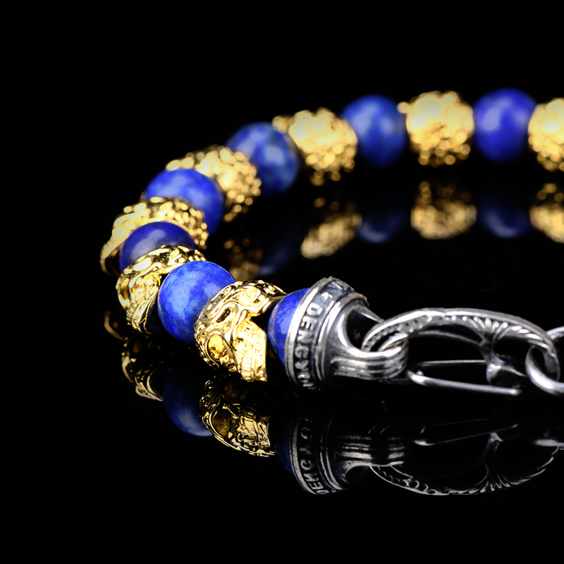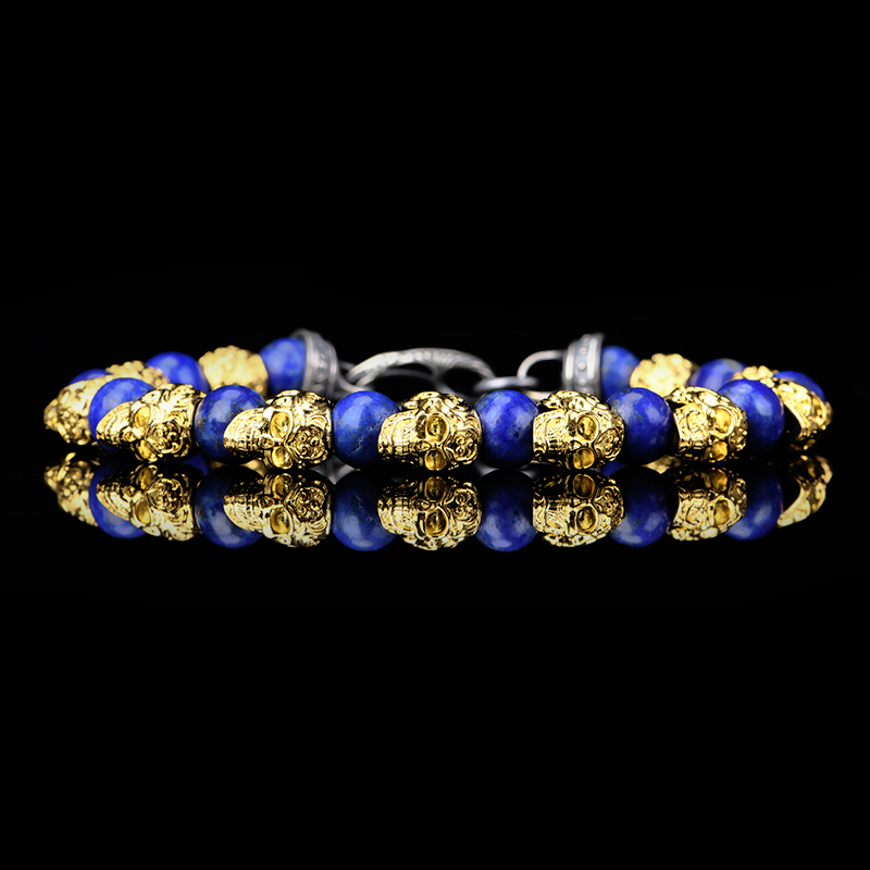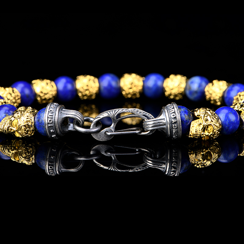 DYQ Jewelry 不屈意志 黄铜镀24K金唐草骷髅 青金石 男生手链