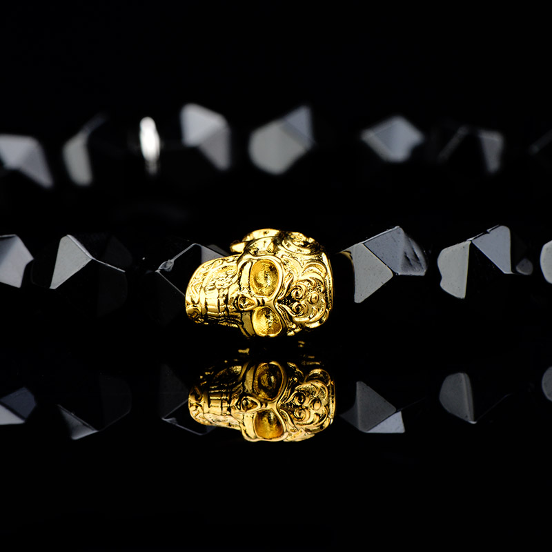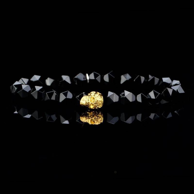 DYQ Jewelry 925银 唐草骷髅 黑玛瑙 男生手链 绅士英伦