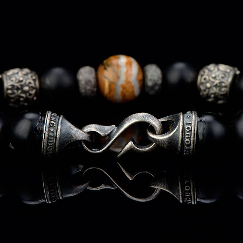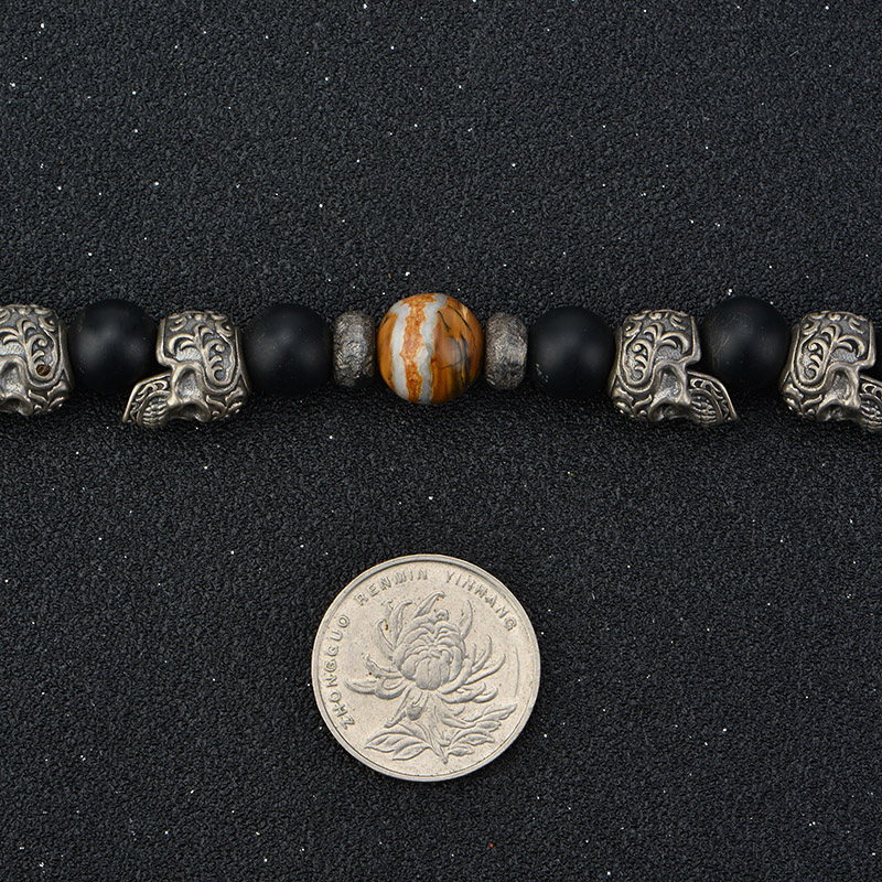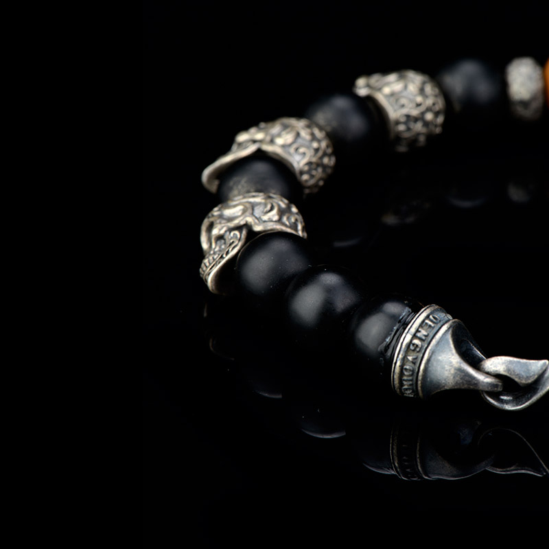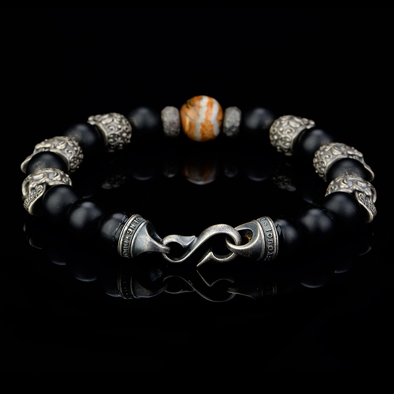 DYQ Jewelry 925银 唐草骷髅 黑玛瑙 男生手链 绅士英伦