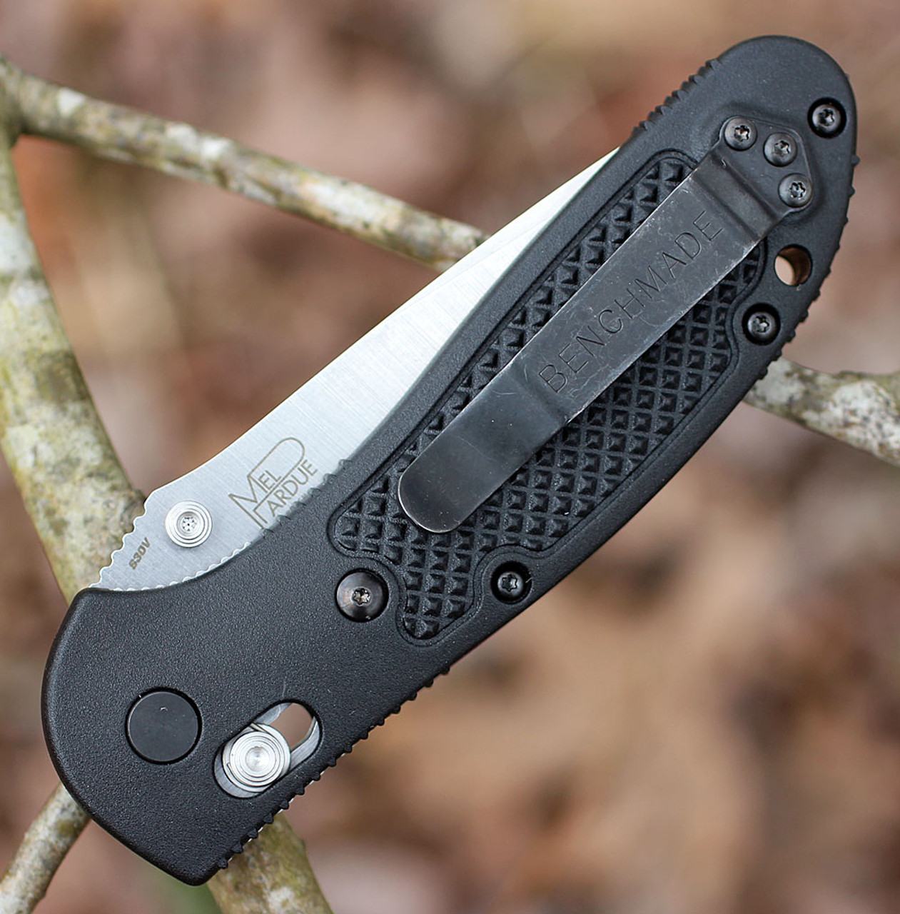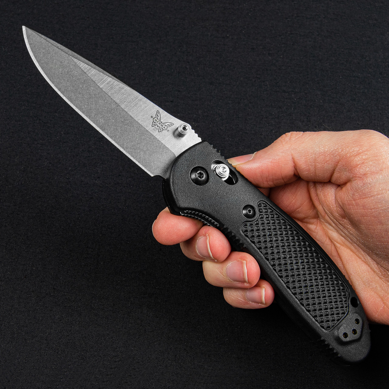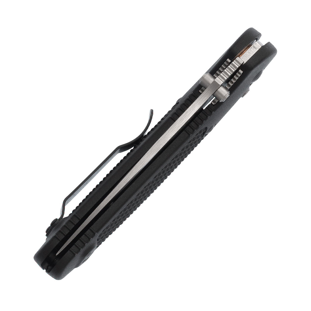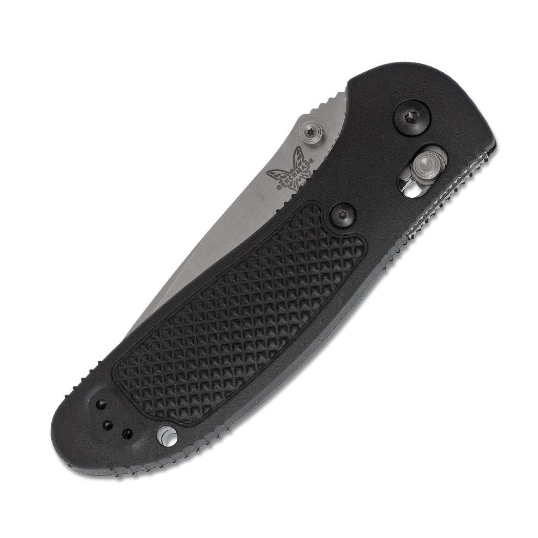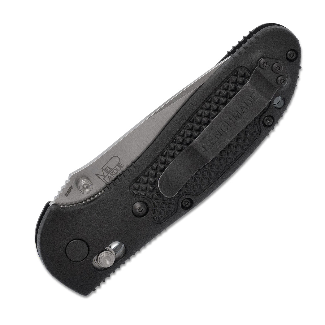 作为Benchmade 的原创产品,AXIS 自推出以来就备受瞩目,并赢得了众多粉丝的青睐。AXIS 的设计完全适合双手使用,其功能来自一根小型硬化钢条,该钢条在两个钢衬里上加工的槽中前后移动。该钢条延伸到刀的两侧,横跨衬里,并位于刀片后部。当刀打开时,它会与刀片的倾斜柄部接合。两个欧米茄式弹簧(每个衬里上一个)使锁定杆具有与刀柄接合的惯性。因此,柄部牢固地楔入一个相当大的止动销和 AXIS 杆本身之间。
