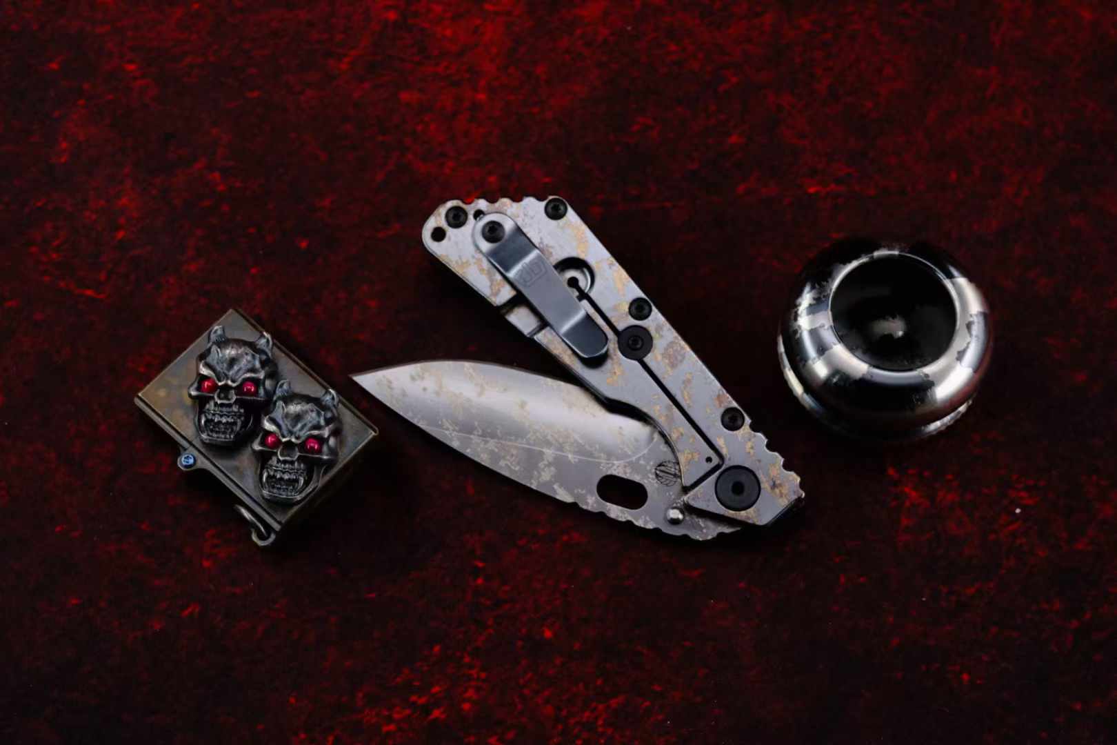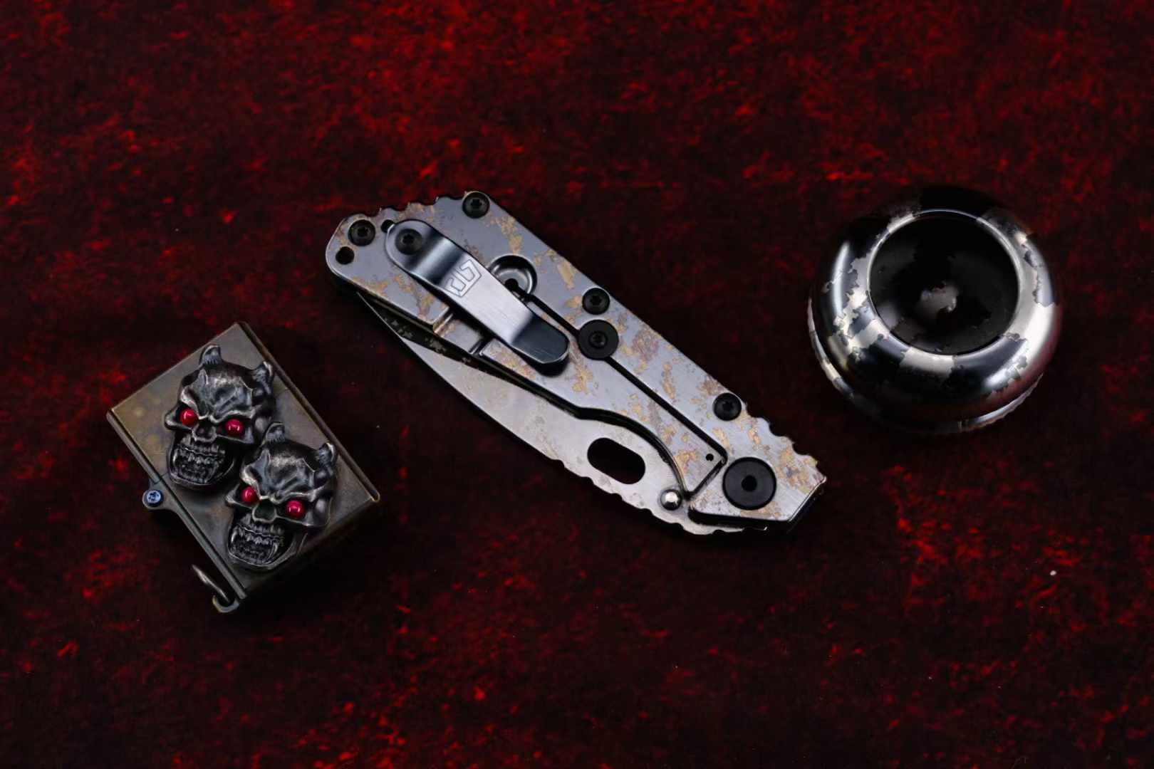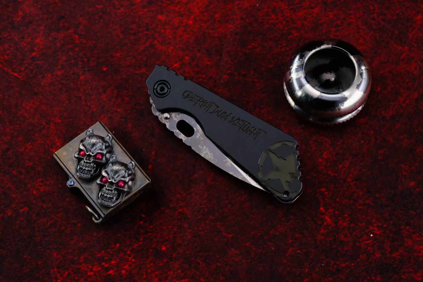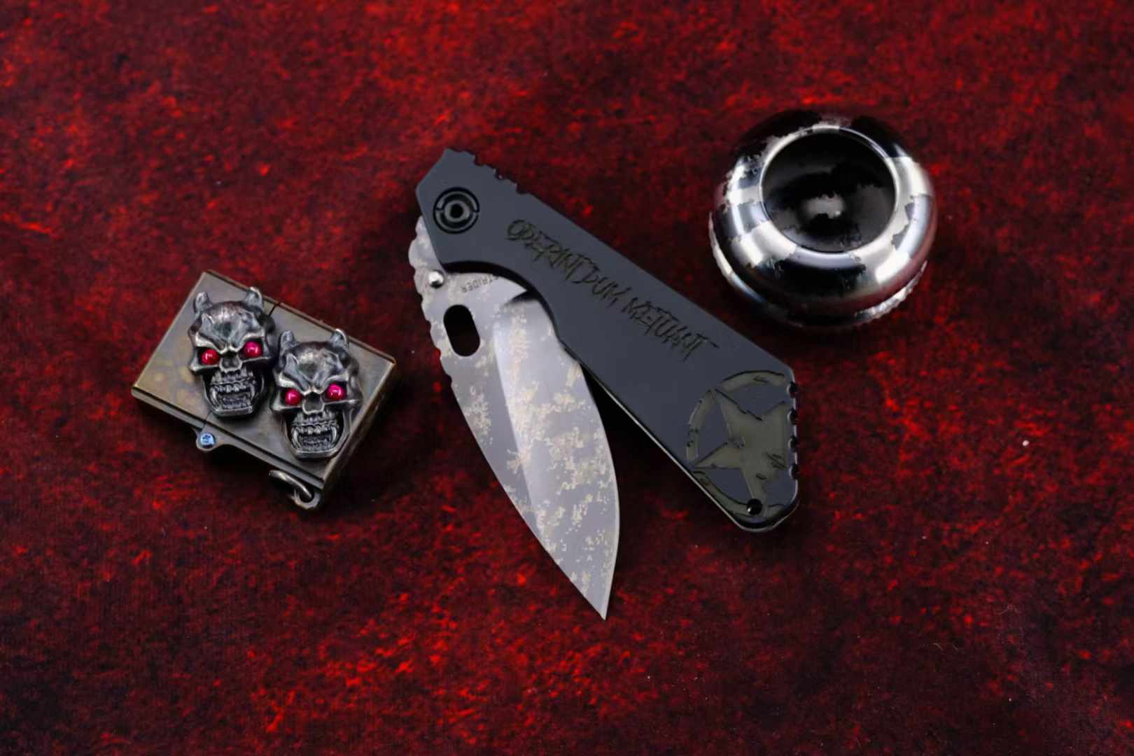 美国Strider挺进者SMF悠悠球套装 黑色铝柄雕刻贴片、数码迷彩涂层钛柄、CTS-XHP刃片自带防水盒