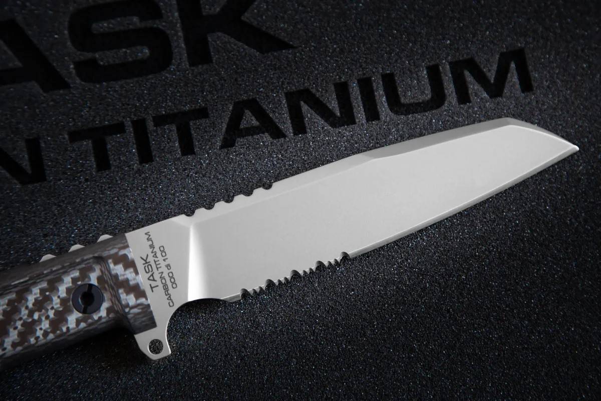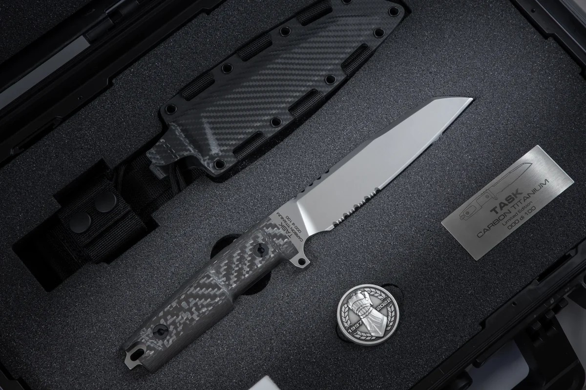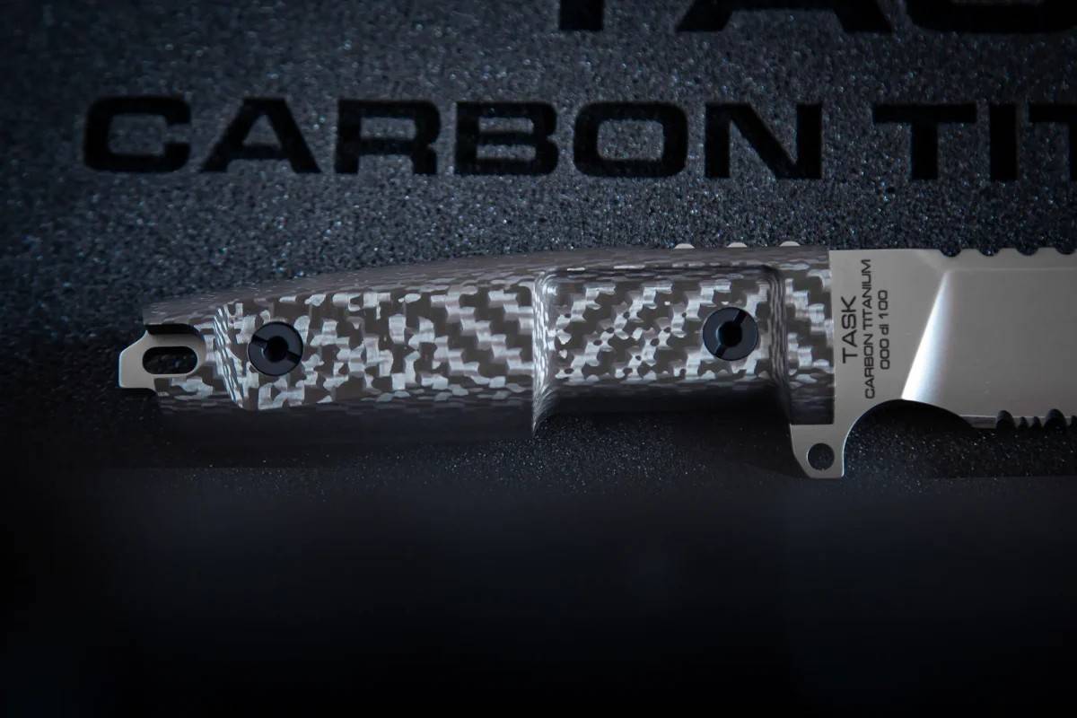Task Carbon Titanium 是一款专为喜爱用罕见材料制成的刀具的收藏家设计的独家型号。Task Carbon Titanium 配有优雅的外壳,在强度、可靠性和功能方面保证了质量——这些特点使 Extrema Ratio 刀具闻名遐迩。