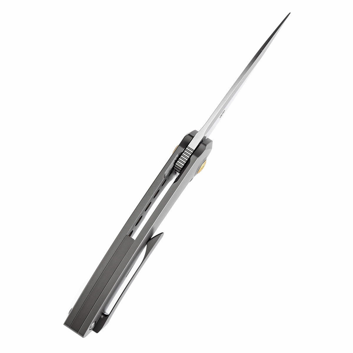 - Odd 21 折叠刀拥有钛制手柄,具有柔和的曲线,完美贴合手掌。两侧都有手柄,抓地力得到增强,更加舒适和安全。孔设计不仅增强了美观性,还提高了牵引力,确保在使用过程中提供可靠的抓地力。这种符合人体工程学的设计将风格和功能相结合,带来令人满意的操控体验。