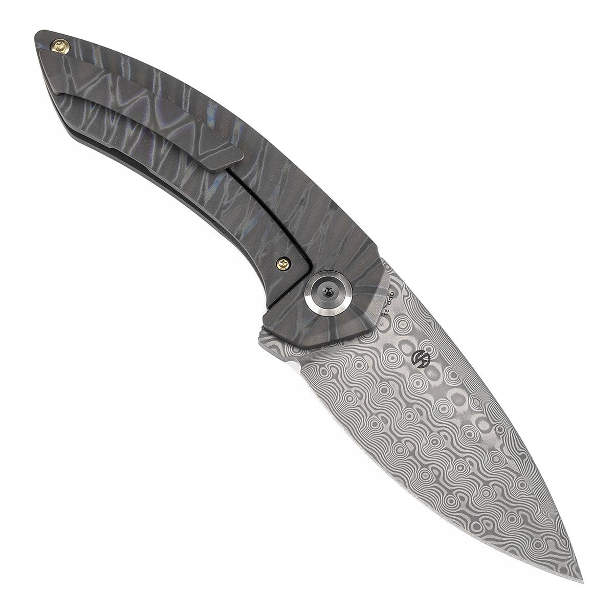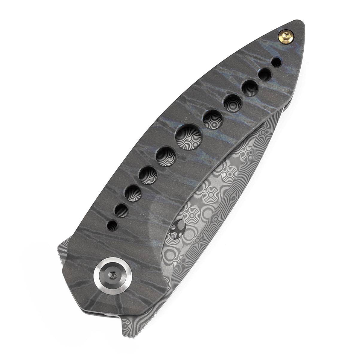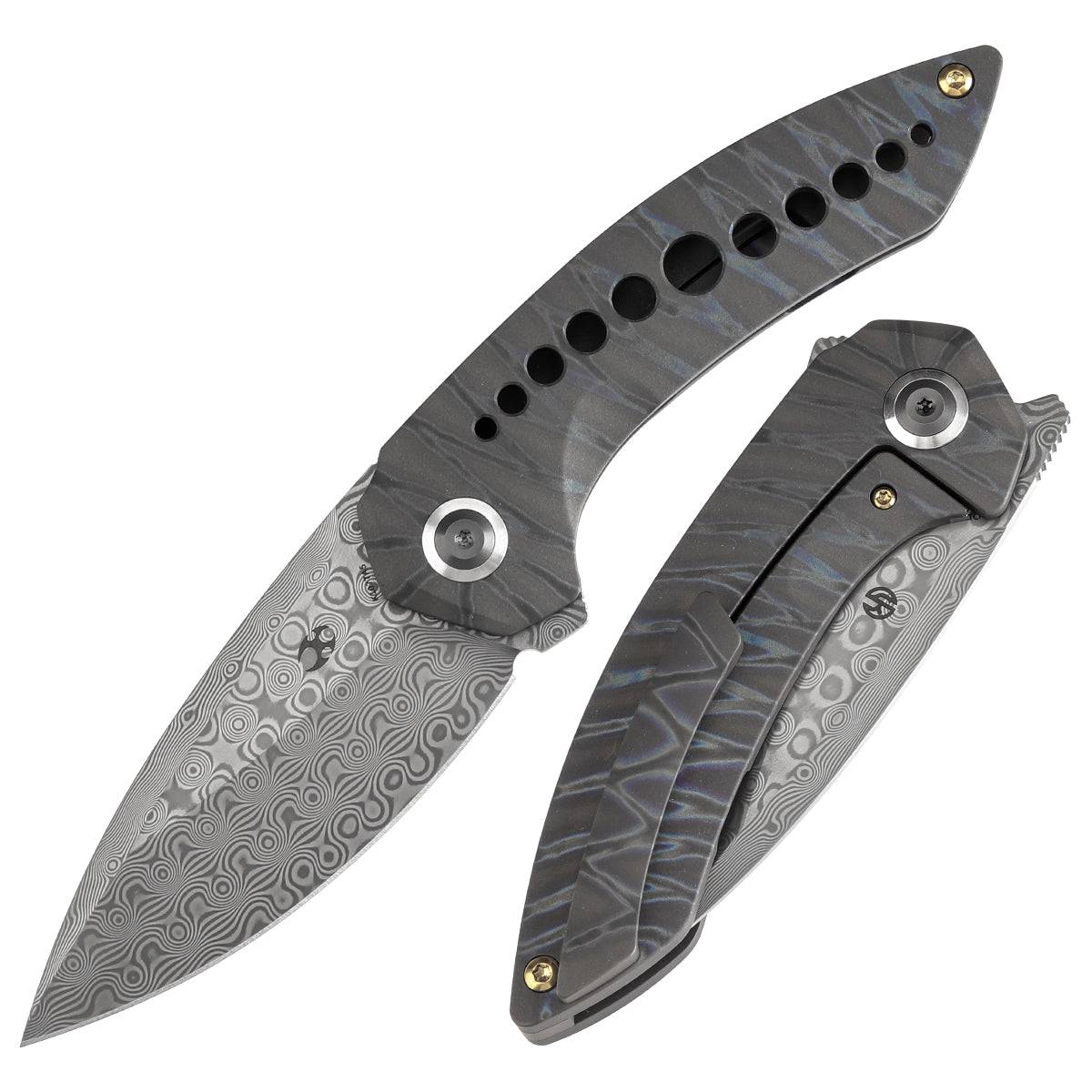 - Odd 21 折叠刀拥有钛制手柄,具有柔和的曲线,完美贴合手掌。两侧都有手柄,抓地力得到增强,更加舒适和安全。孔设计不仅增强了美观性,还提高了牵引力,确保在使用过程中提供可靠的抓地力。这种符合人体工程学的设计将风格和功能相结合,带来令人满意的操控体验。