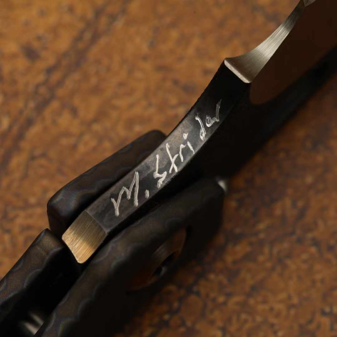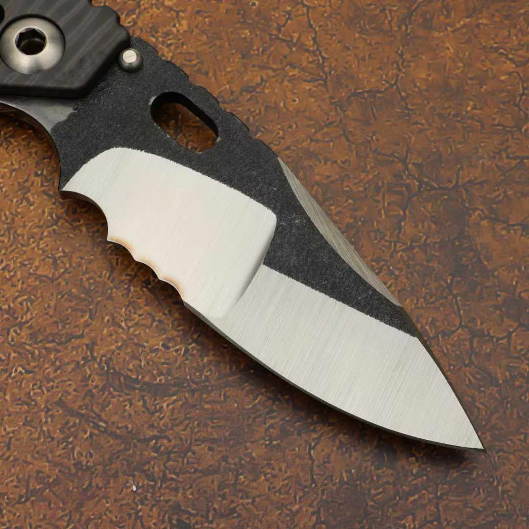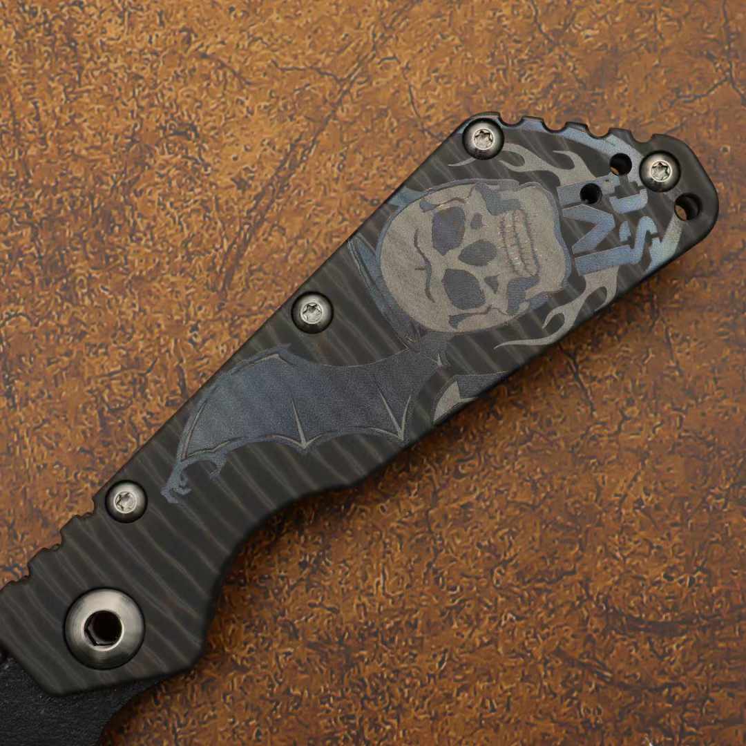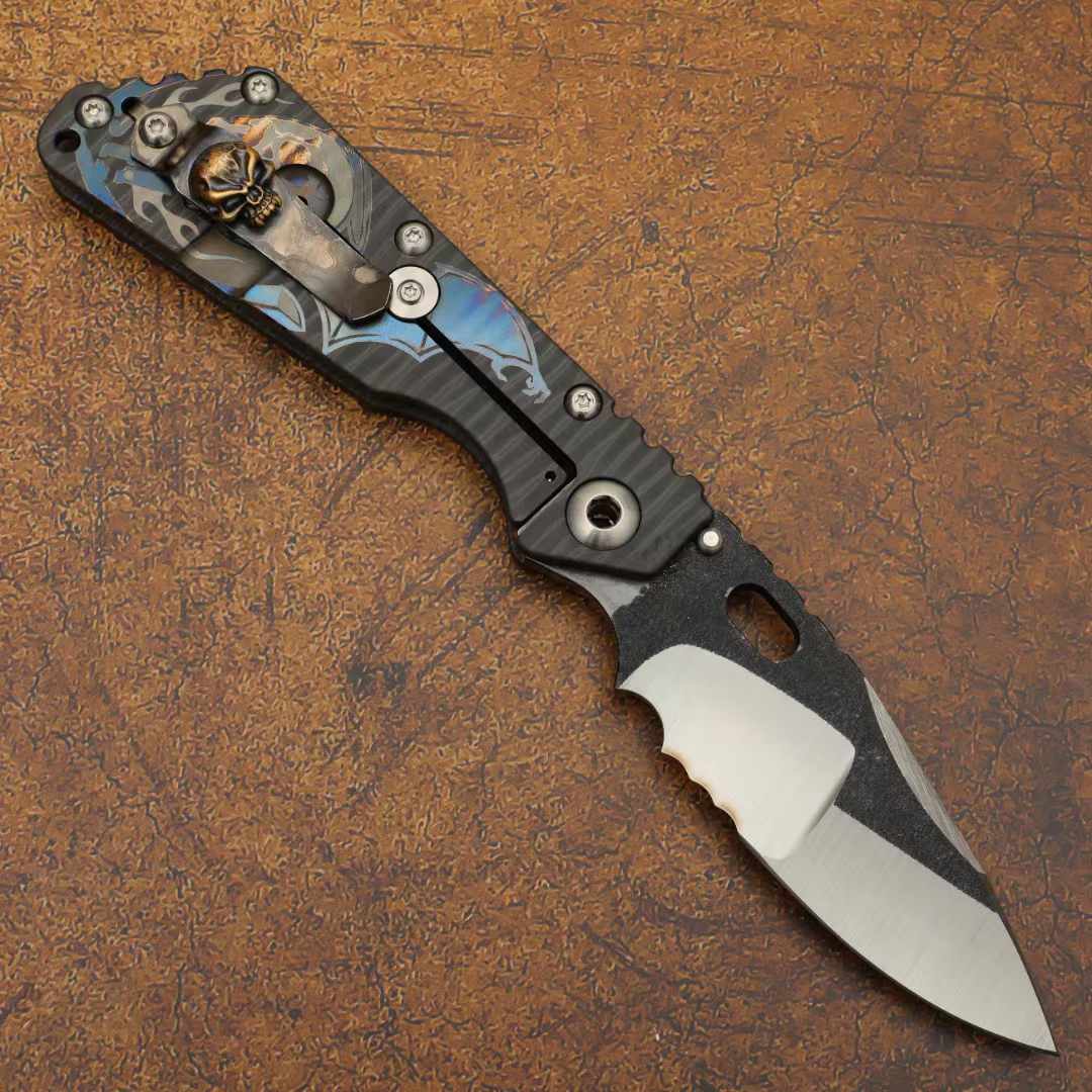 Strider MSC版 SMF配钢火背夹 ,美国挺近者,手柄烧钛雕刻飞天骷髅头,手工分段式夜魔半齿刃